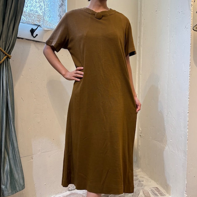 60's70's "SEARS" brown lace dress with belt【dead stock】