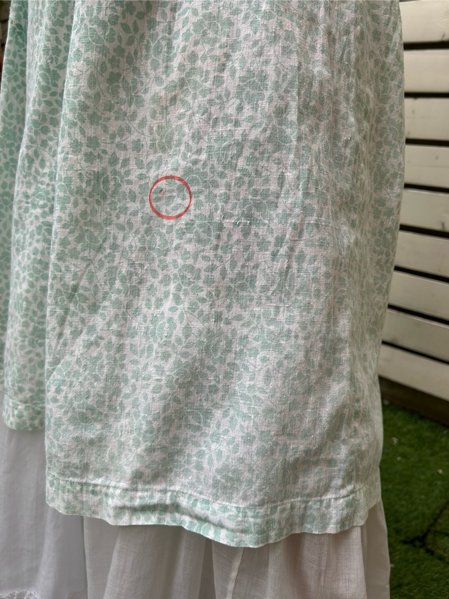 柄物ですのでそれほど目立ちませんが、お直しとうすいシミが数カ所あります(写真参照)
