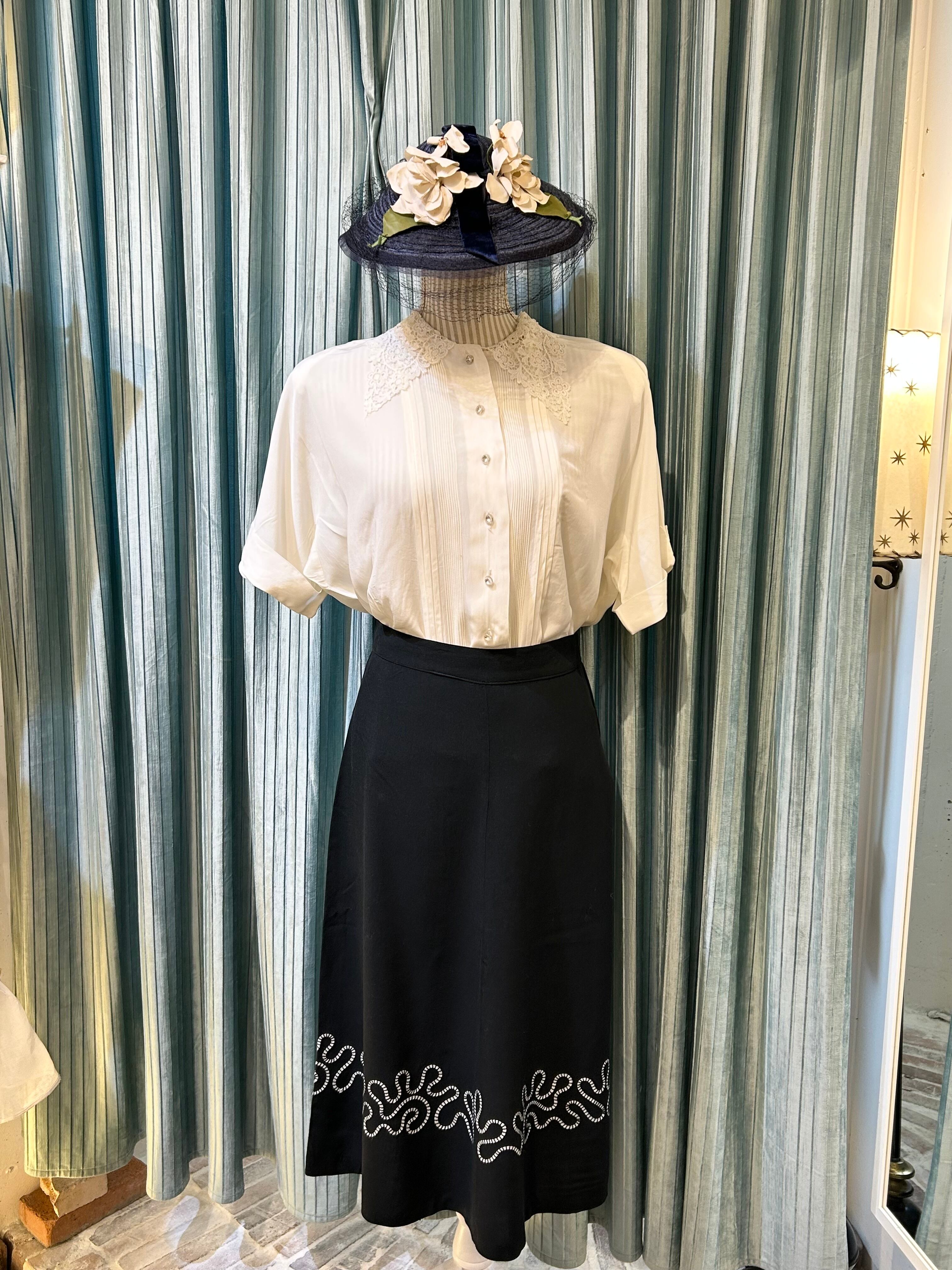 40's 50's vintageに見られるV字のカットされた袖口やドルマンスリーブはレーヨンの落ち感も相まって着ていただくととっても美しいシルエットです。