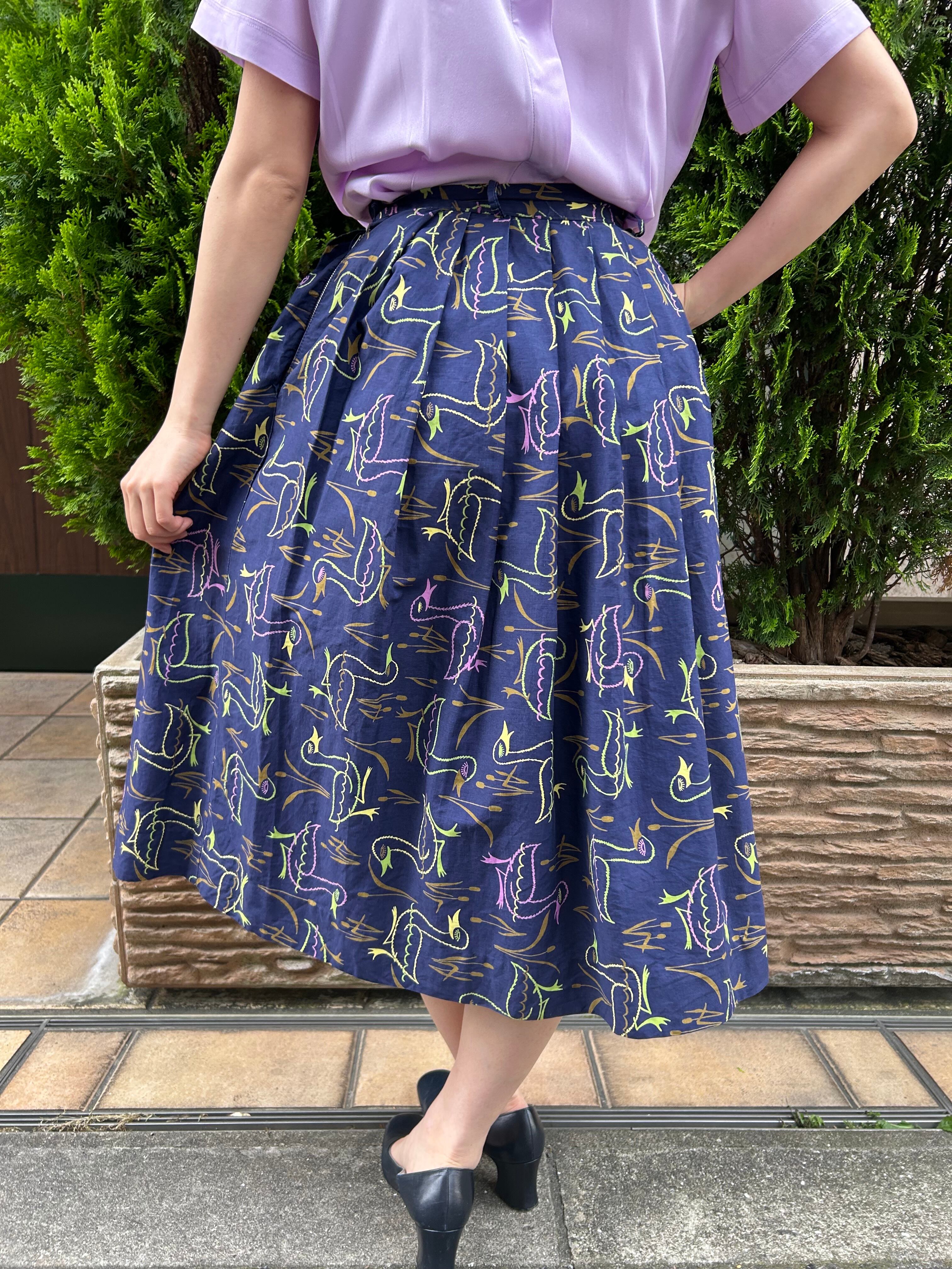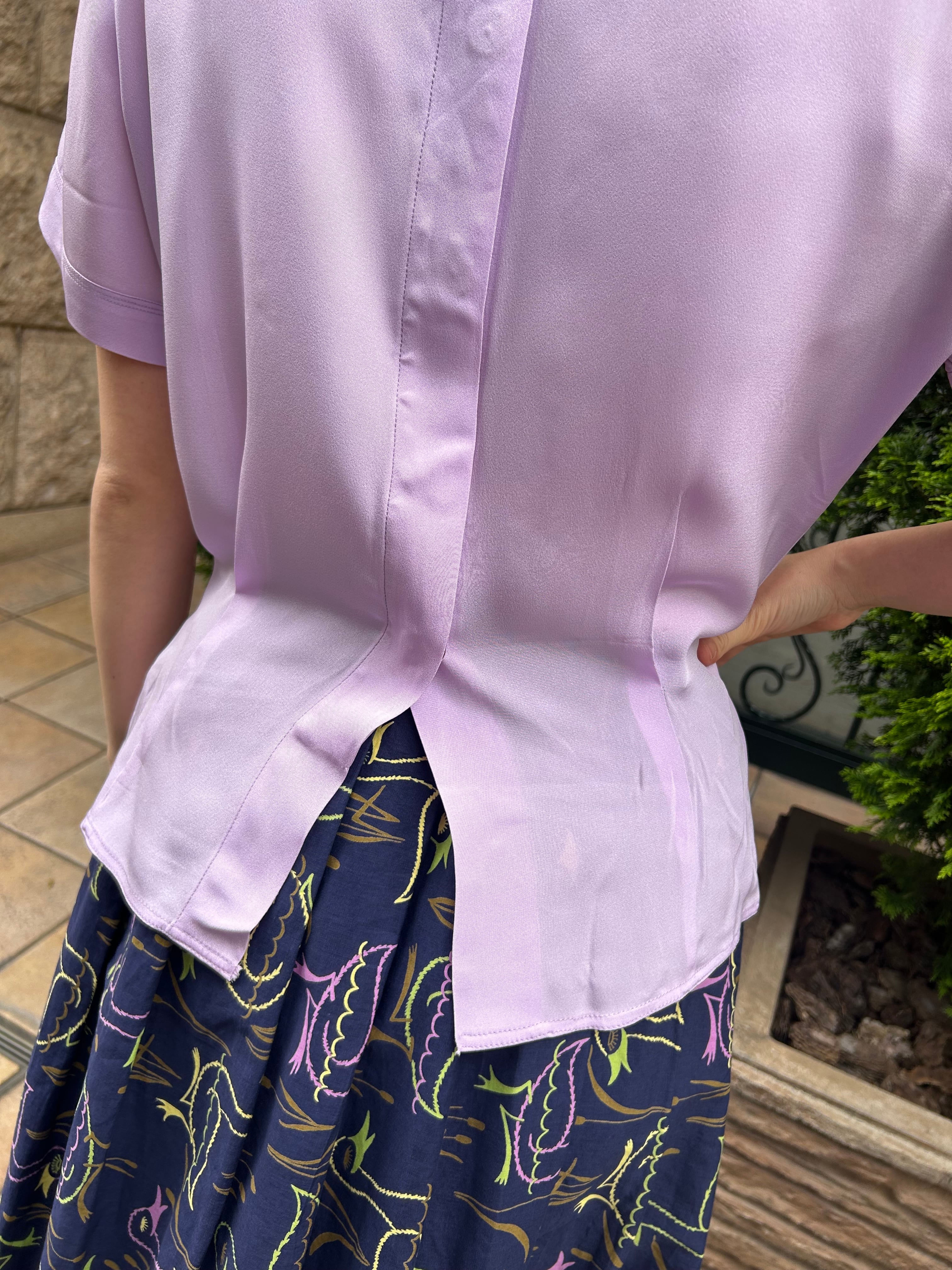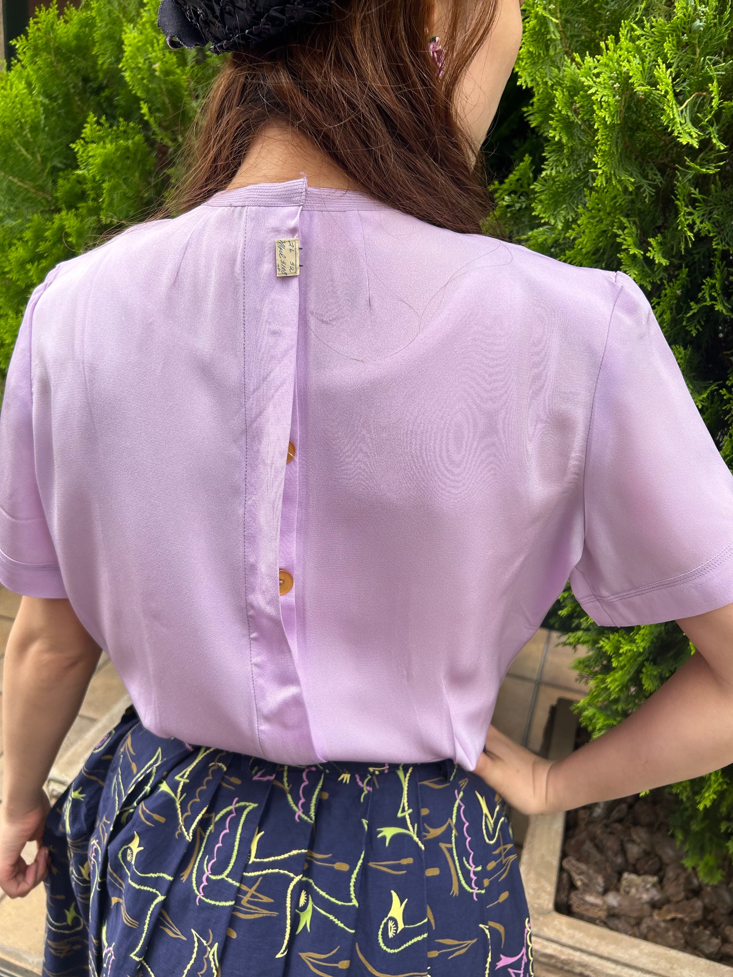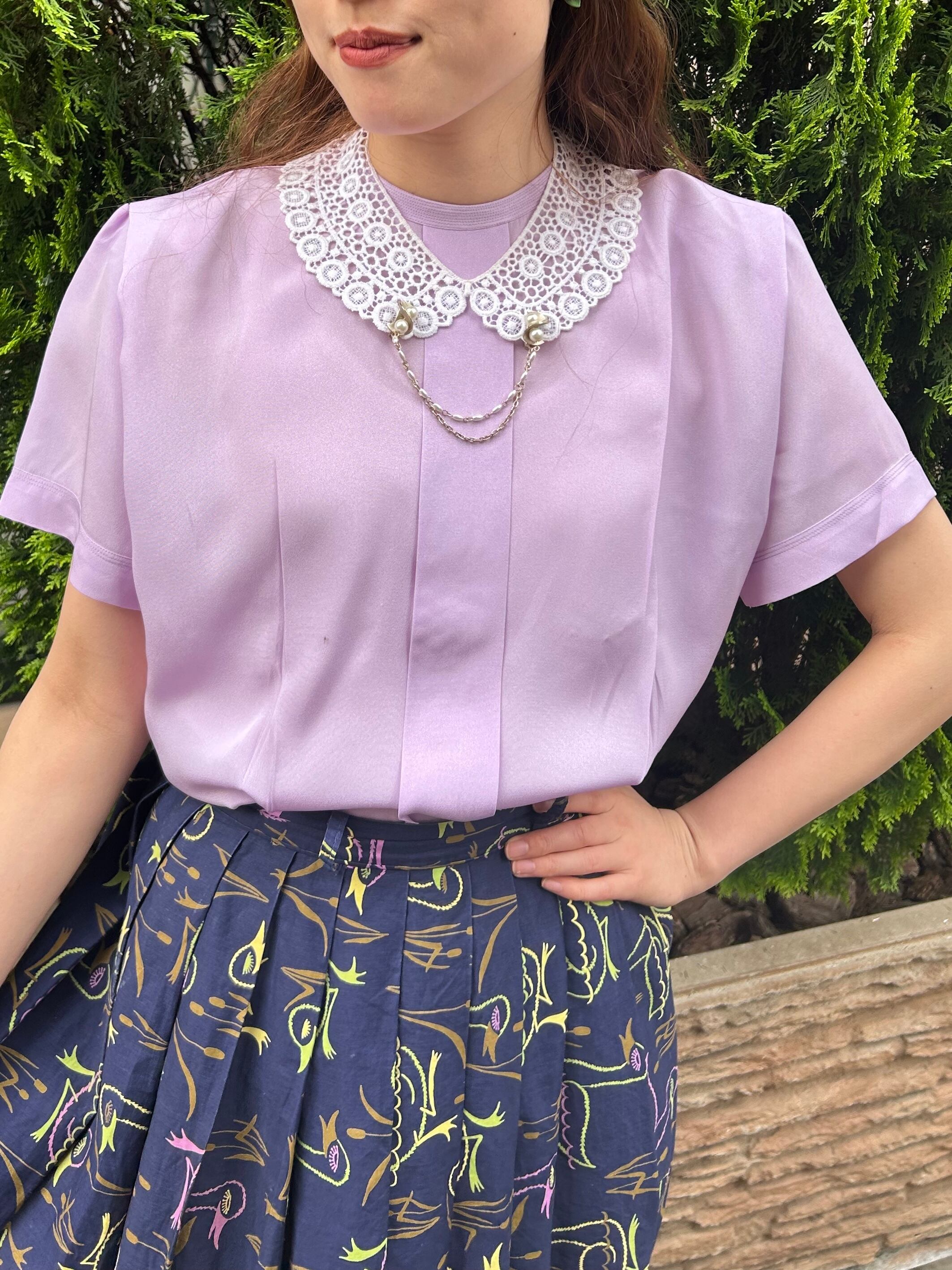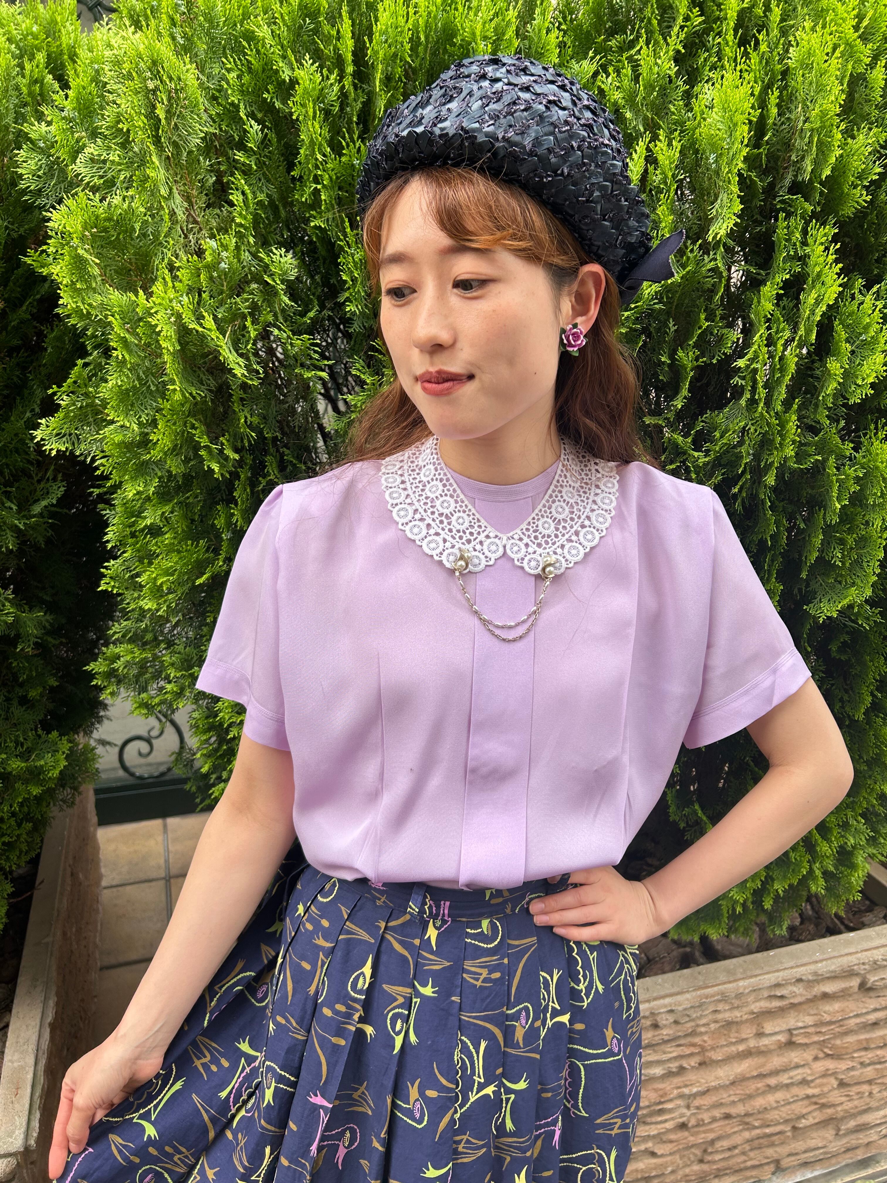 パステルカラーのパープルはホワイトブラウスに頼りがちになるvintage skirtにも合わせやすいです!