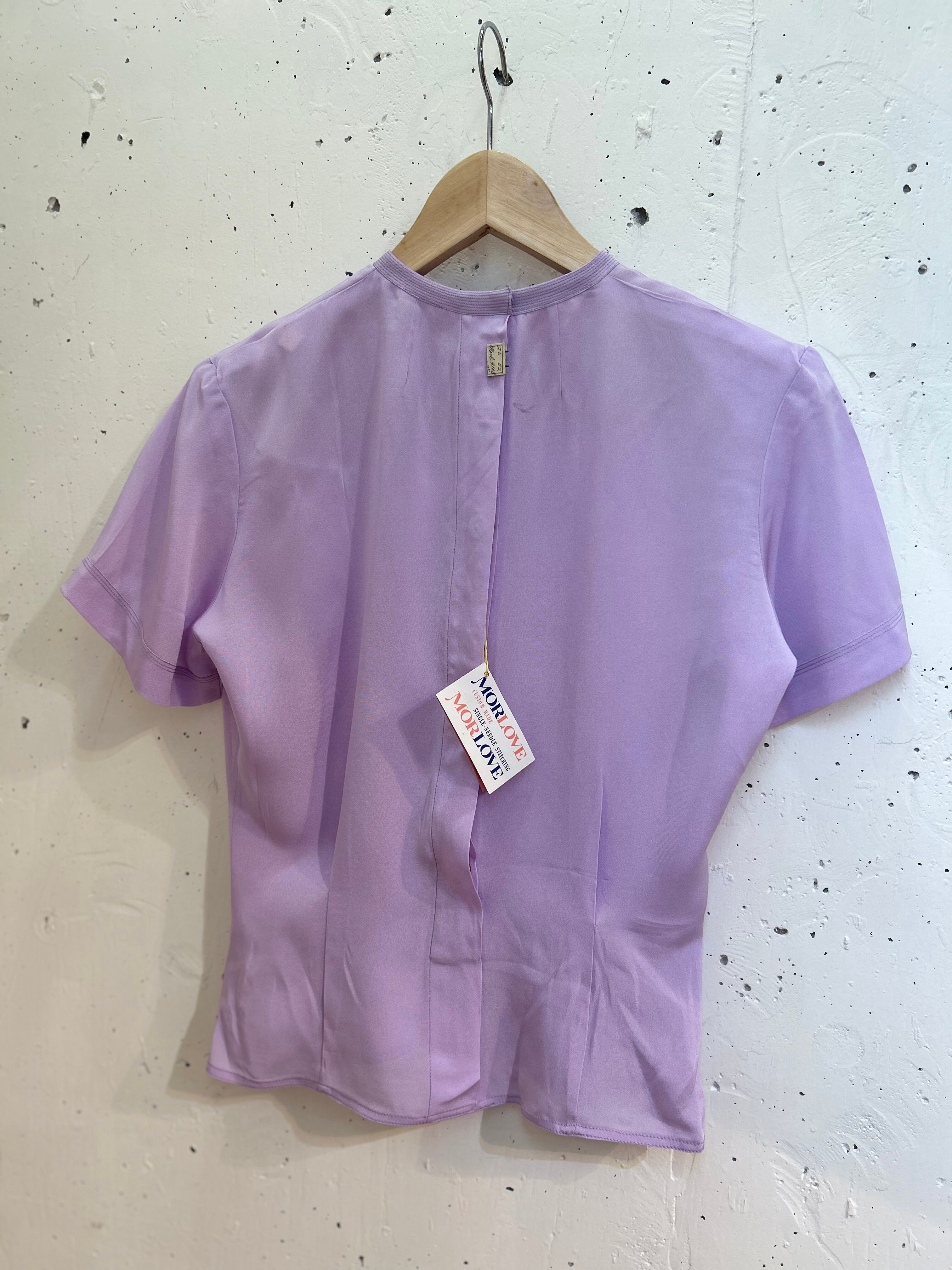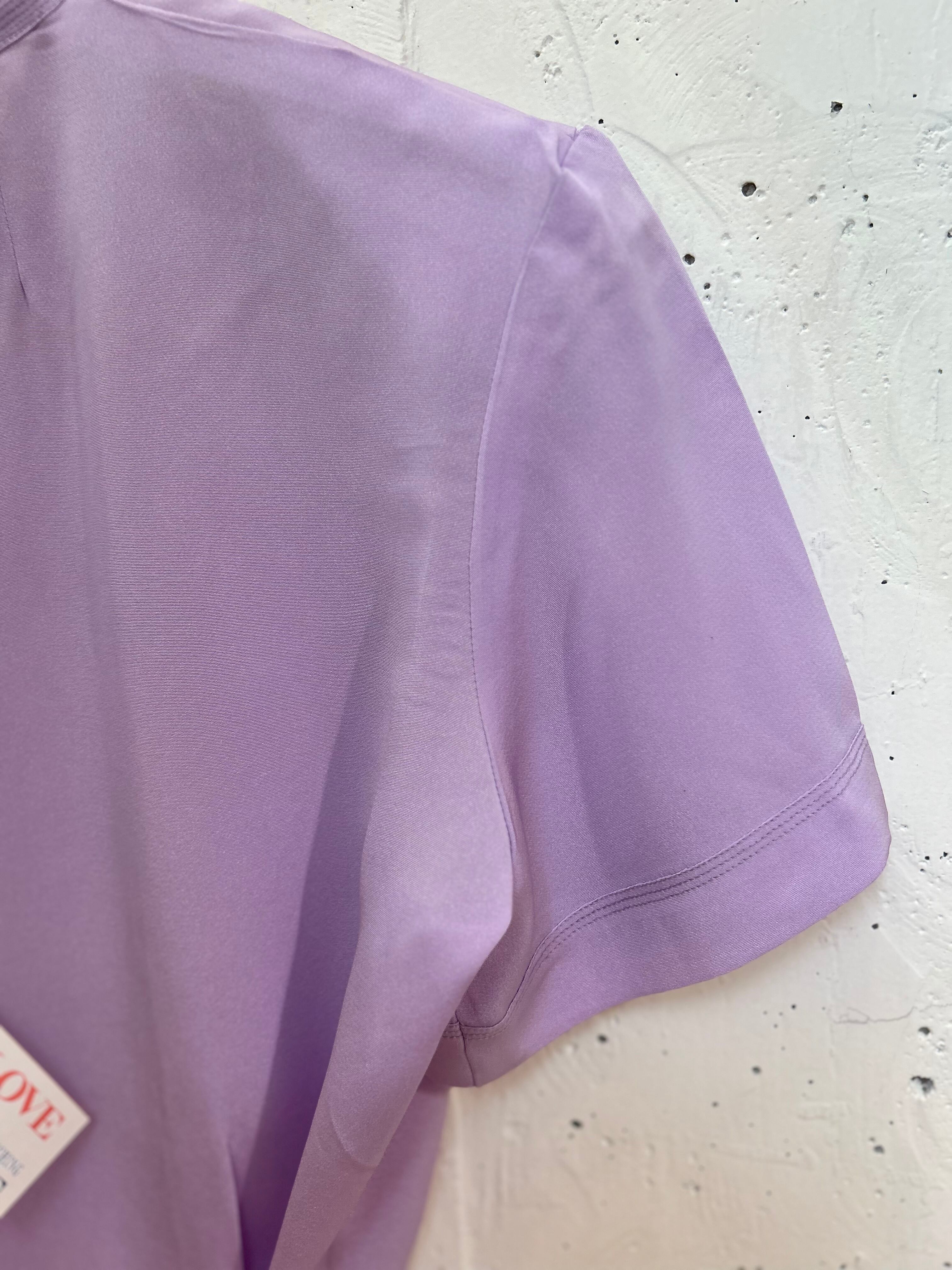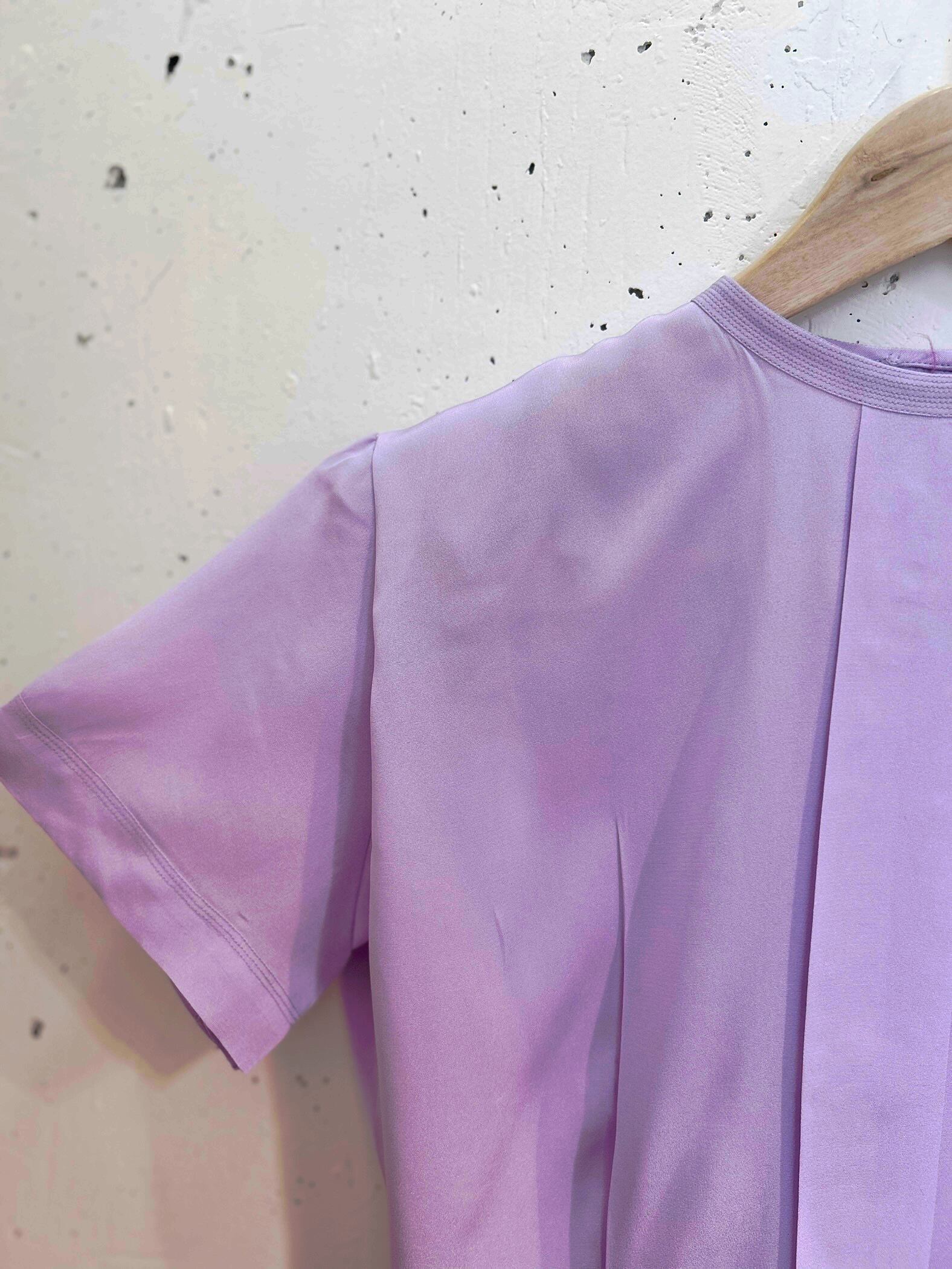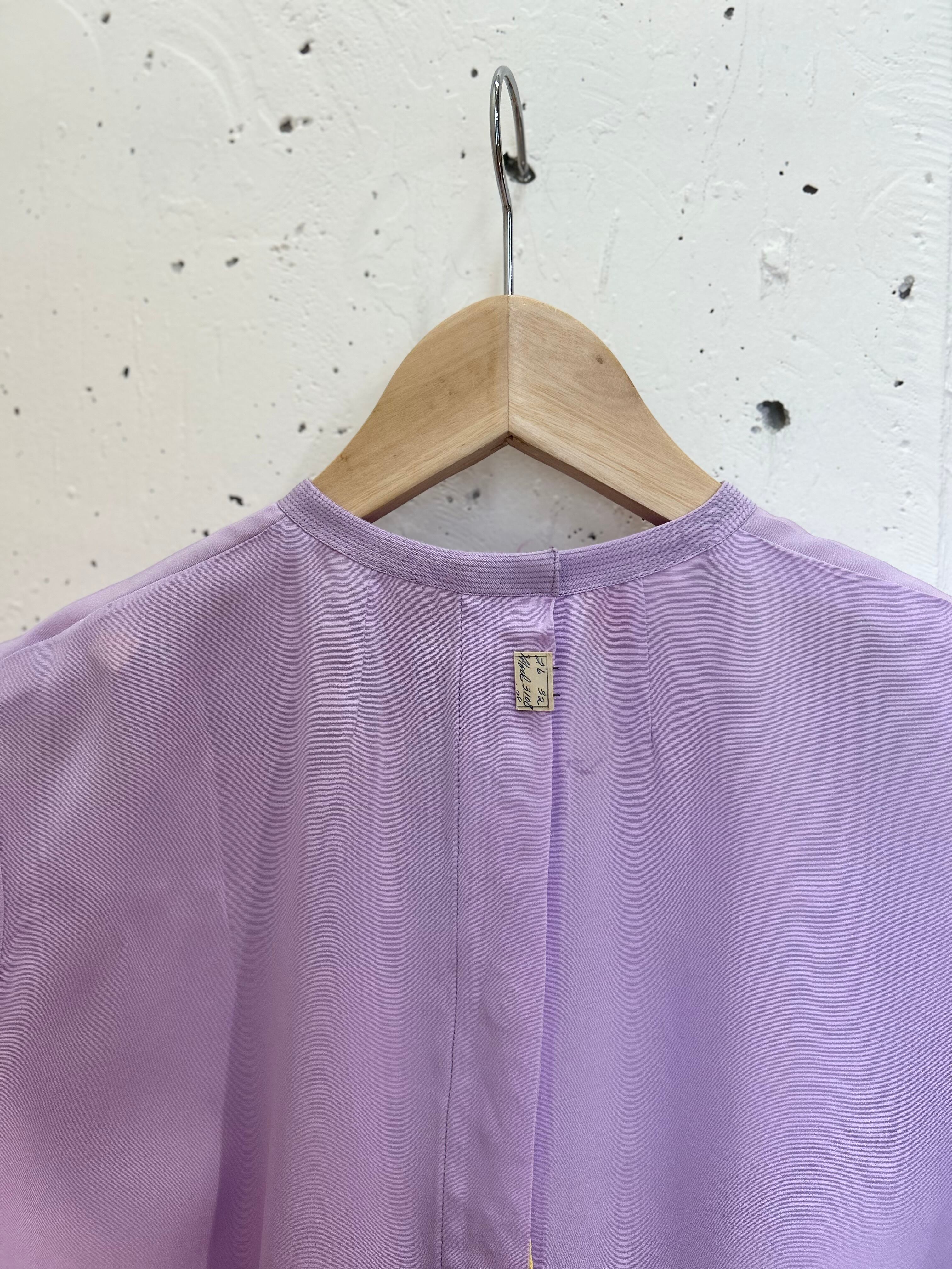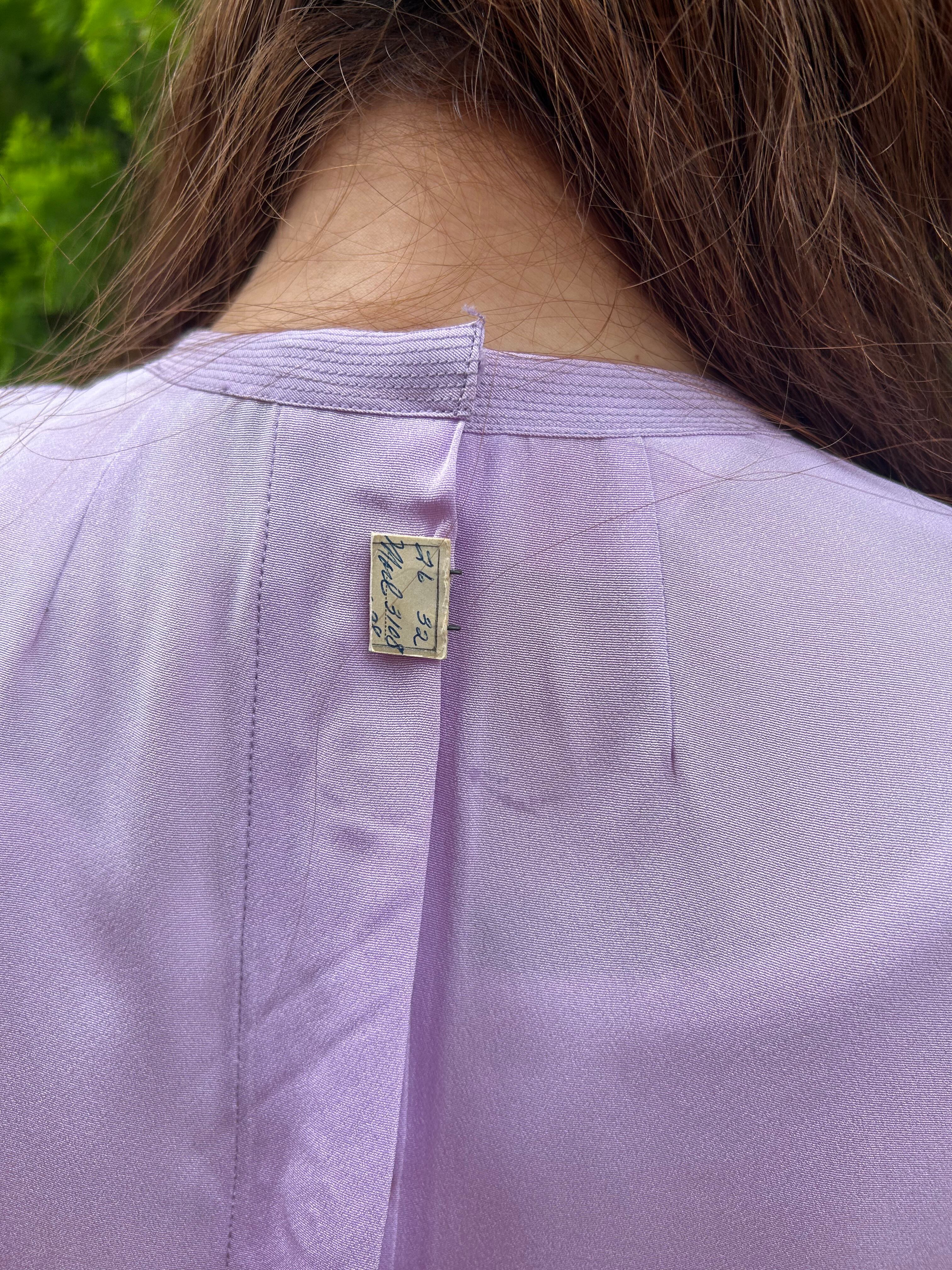 パステルカラーのパープルはホワイトブラウスに頼りがちになるvintage skirtにも合わせやすいです!