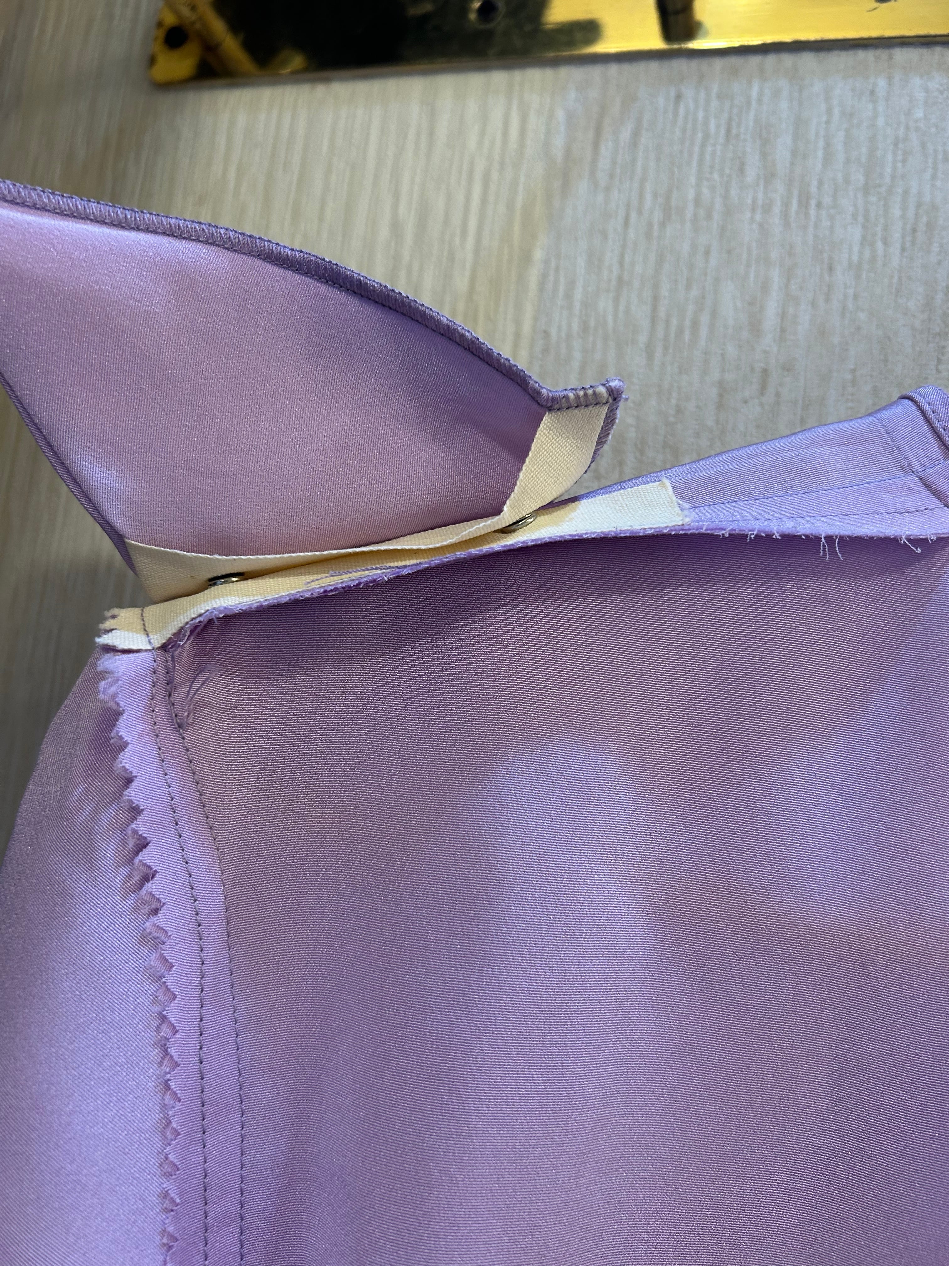 こちらは首元のステッチと袖のステッチが上品な印象を与えており、肩にもシルエットが美しく見えるタックが入っていますので40'sのシルエットは保たれつつゆったり着ていただけます◎