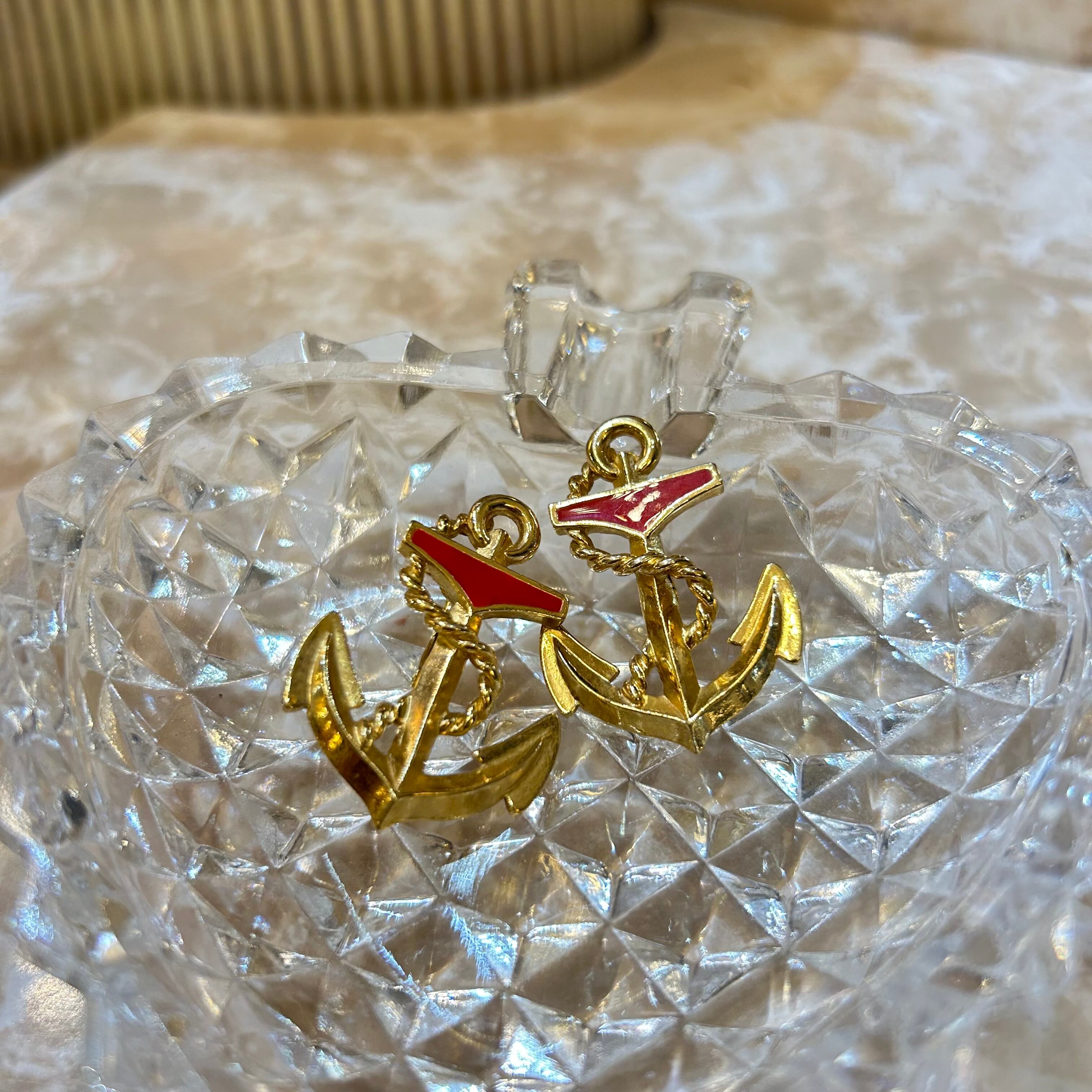 イカリモチーフのゴールドに赤のポイントが夏らしいヴィンテージイヤリングです♩