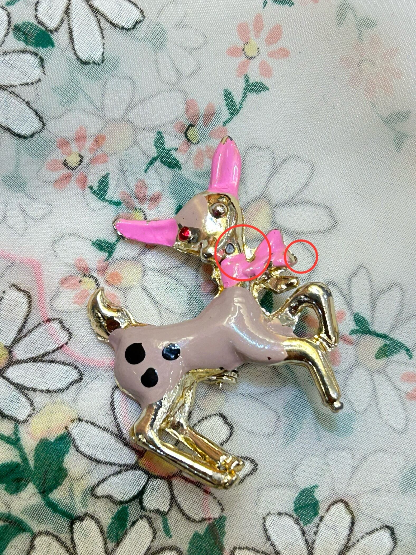 リボンの塗装剥げとホールが首あたりにあります。(写真参照)