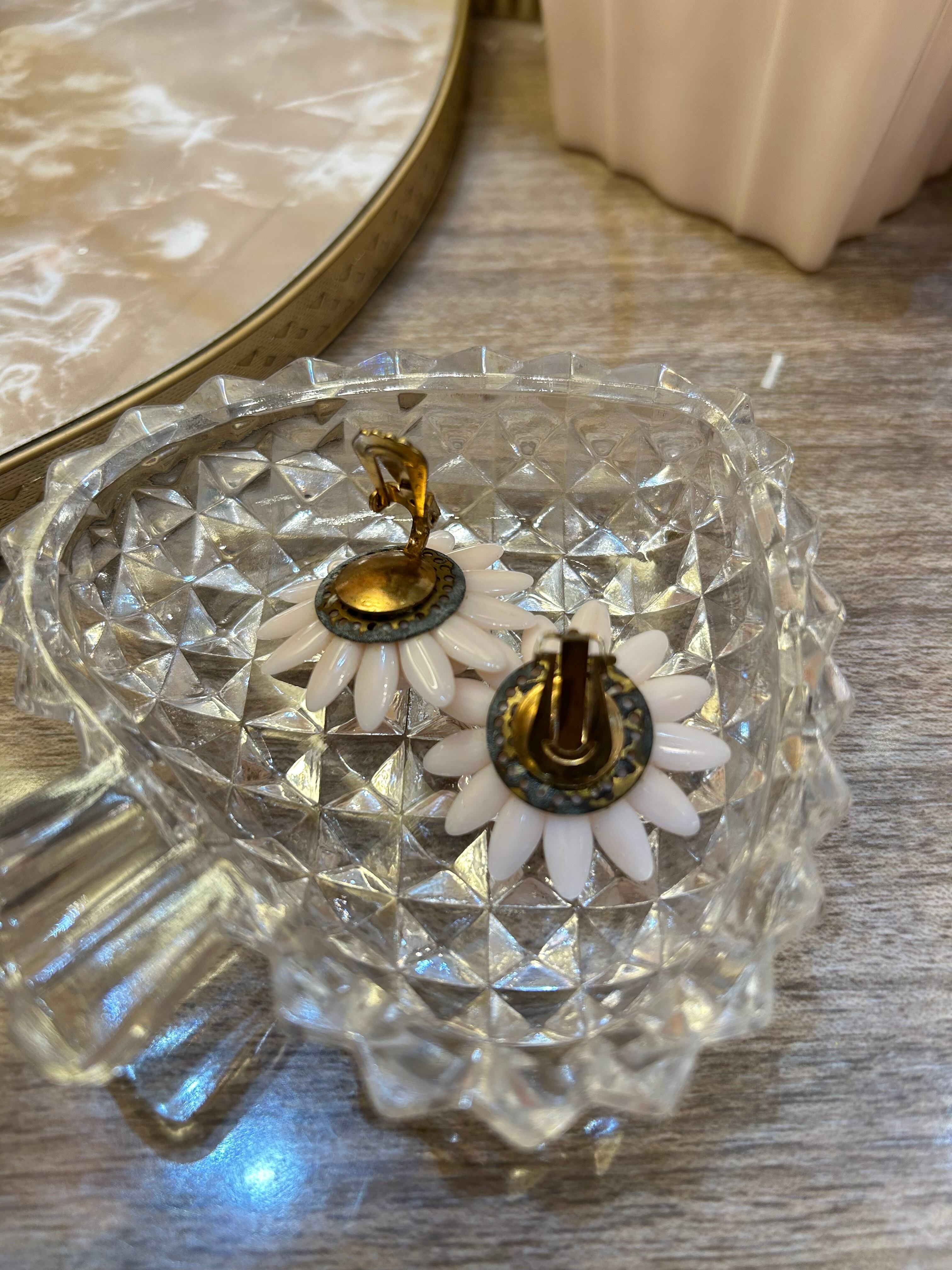 50's vintage ceramic pink flower earring