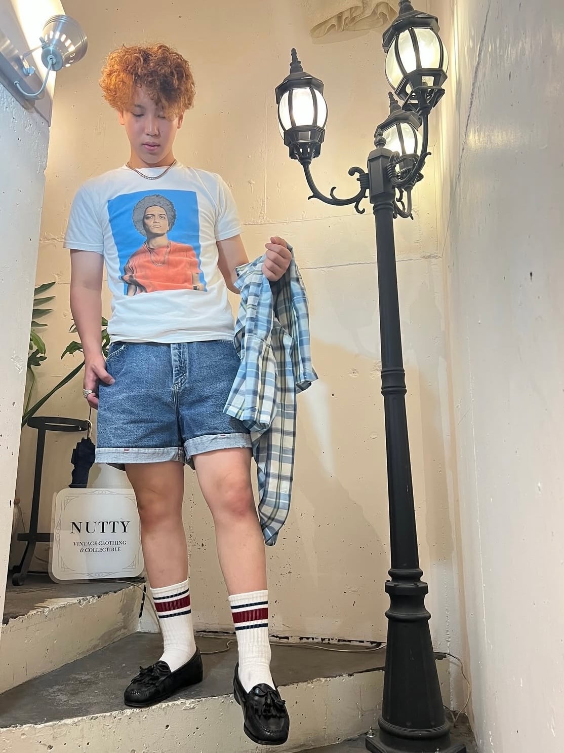 シンプルなデザインのホワイトTシャツですのでチェックシャツを羽織ったり、柄のあるパンツと合わせても!