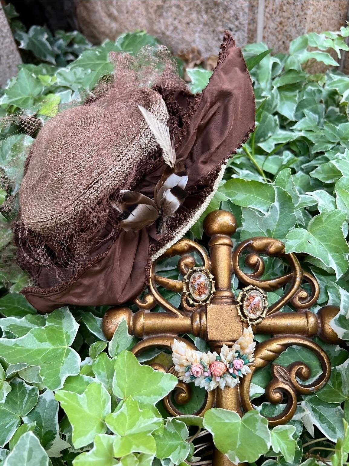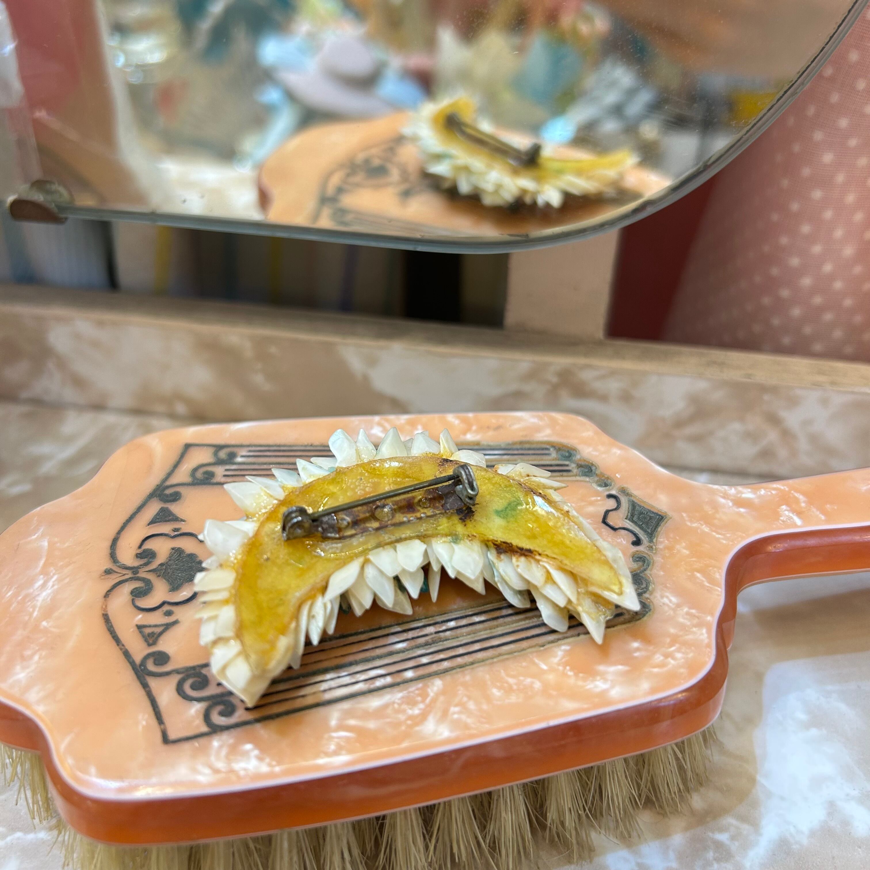 40's rose motif shell brooch
