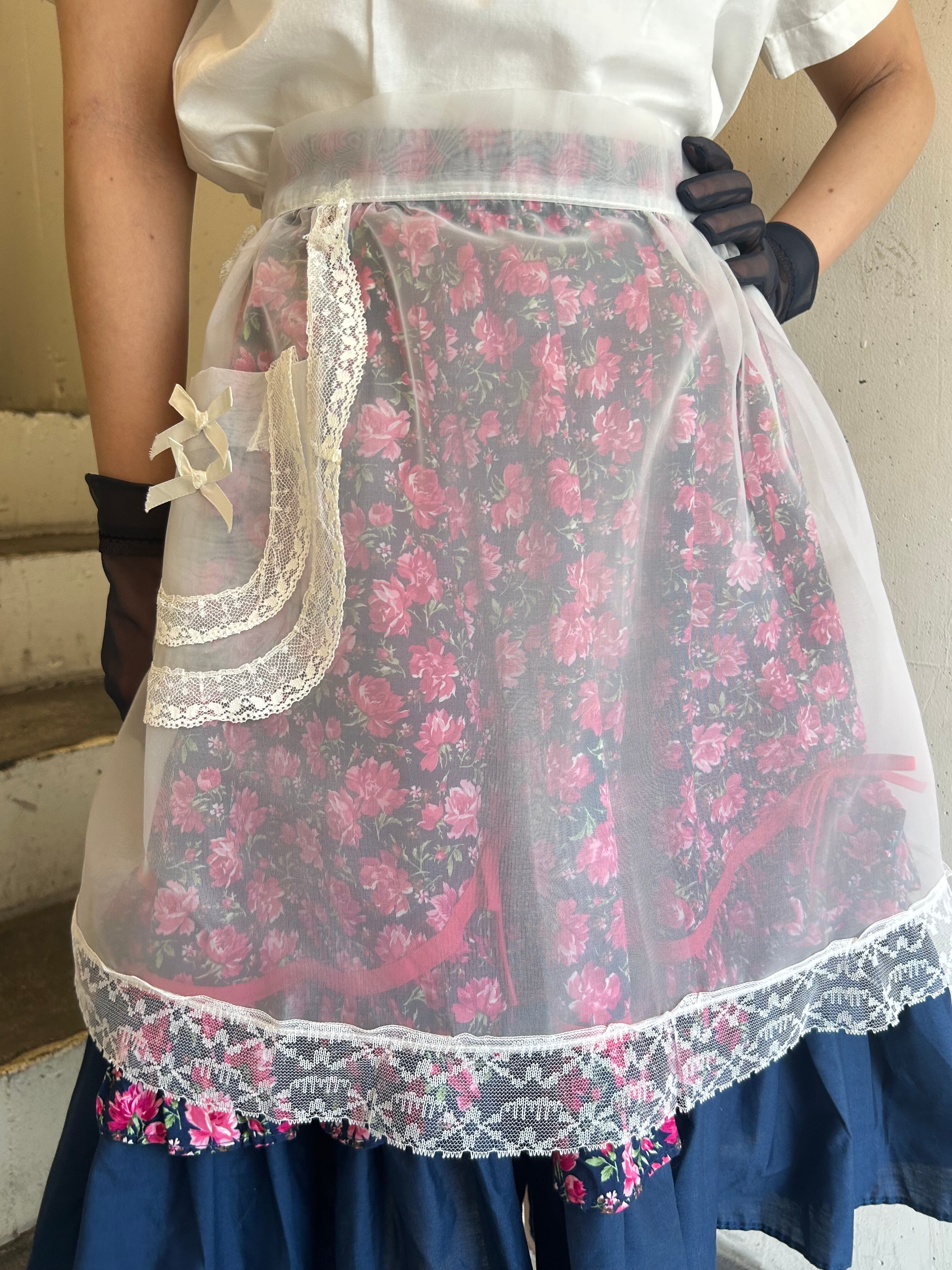 ポケット部分のレースに破れとリボン部分にシミがあります。(写真参照)