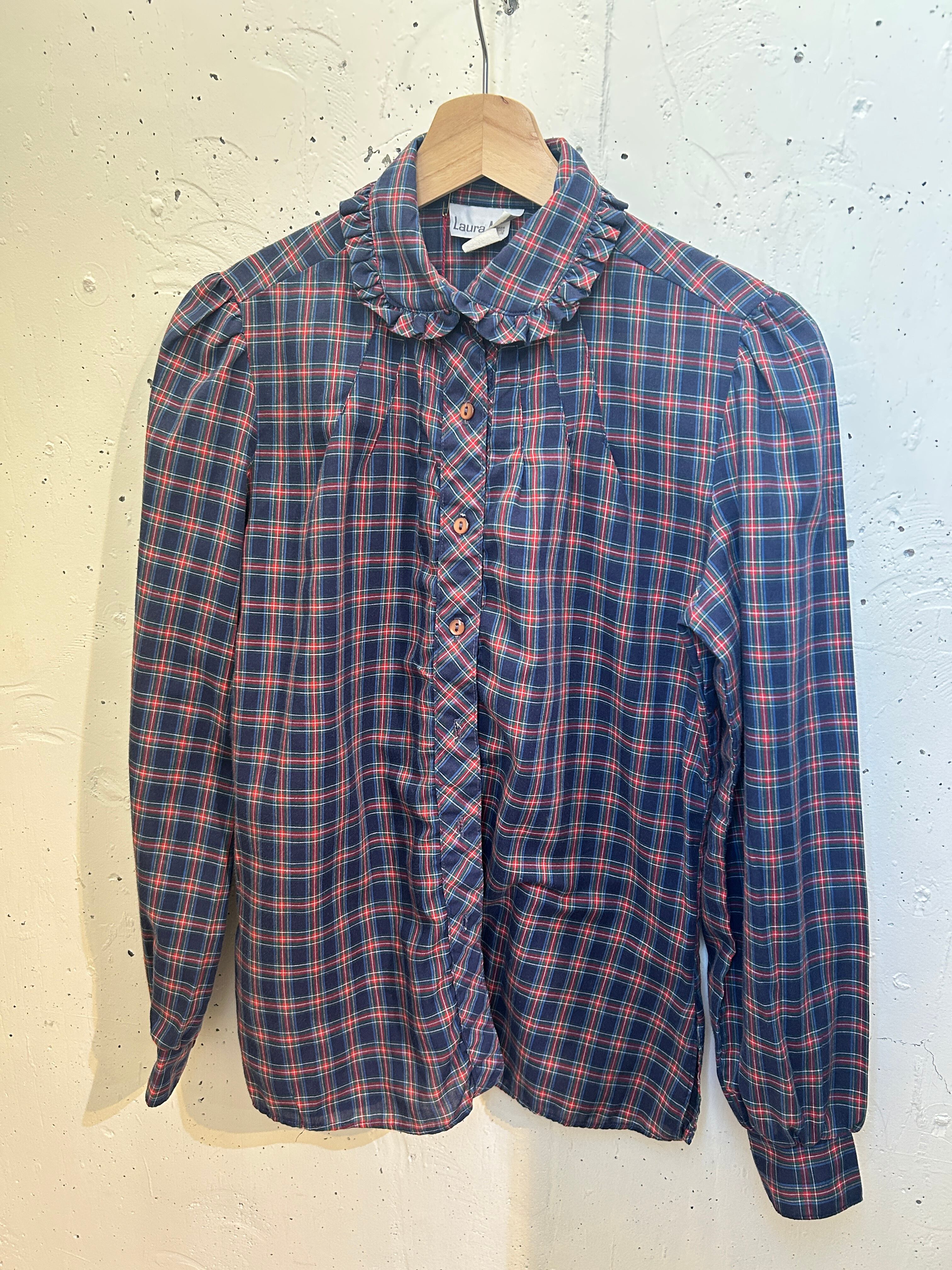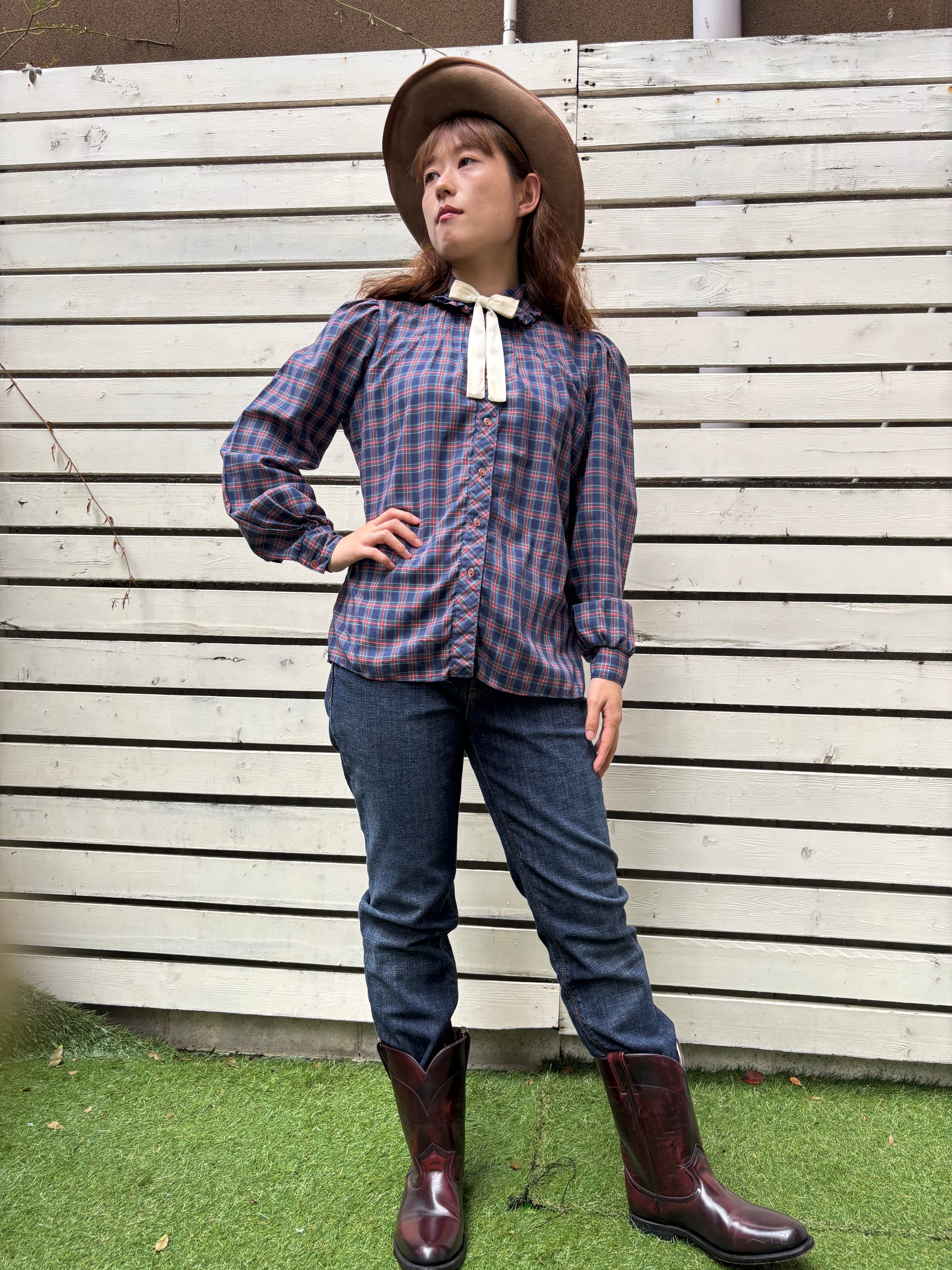 襟のフリルと胸元のギャザーが可愛く、秋らしいチェックカラーもウエスタンスタイルにぴったりです!