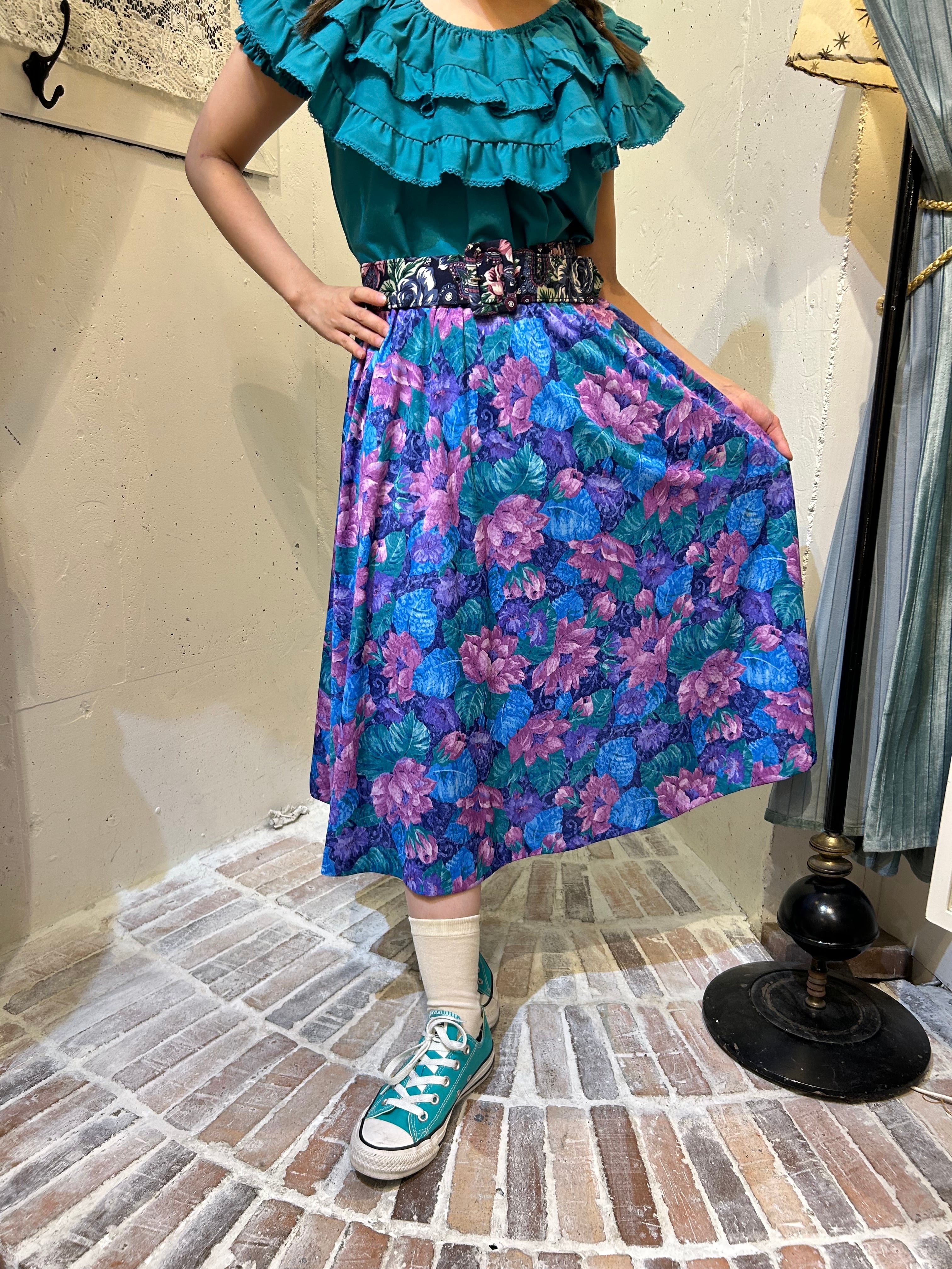 vintage blue×purple flower print skirt