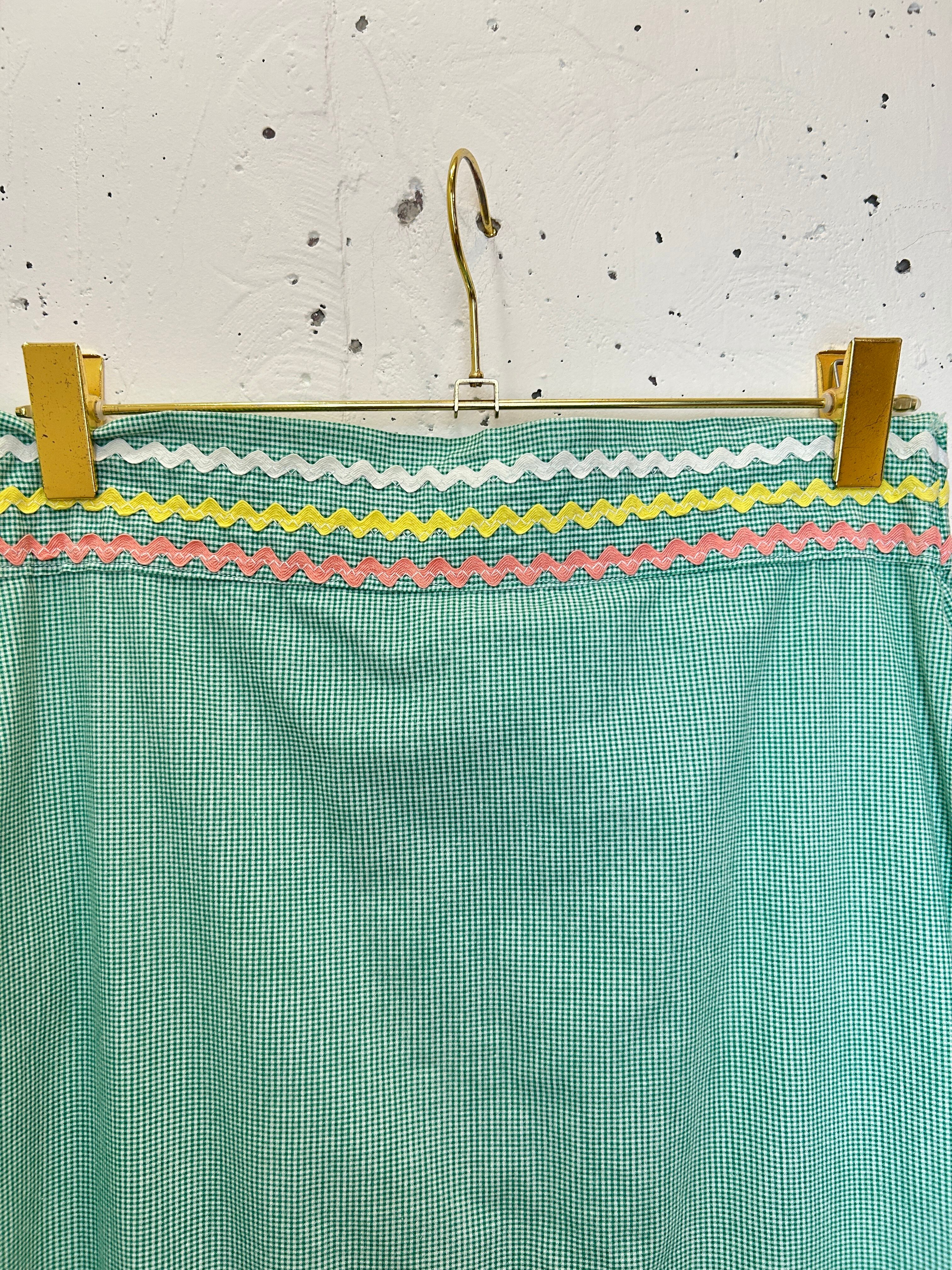 ホワイト、イエロー、ピンクの優しいカラーのリックラックテープがウエストとスカートにも装飾されておりかわいいです♡