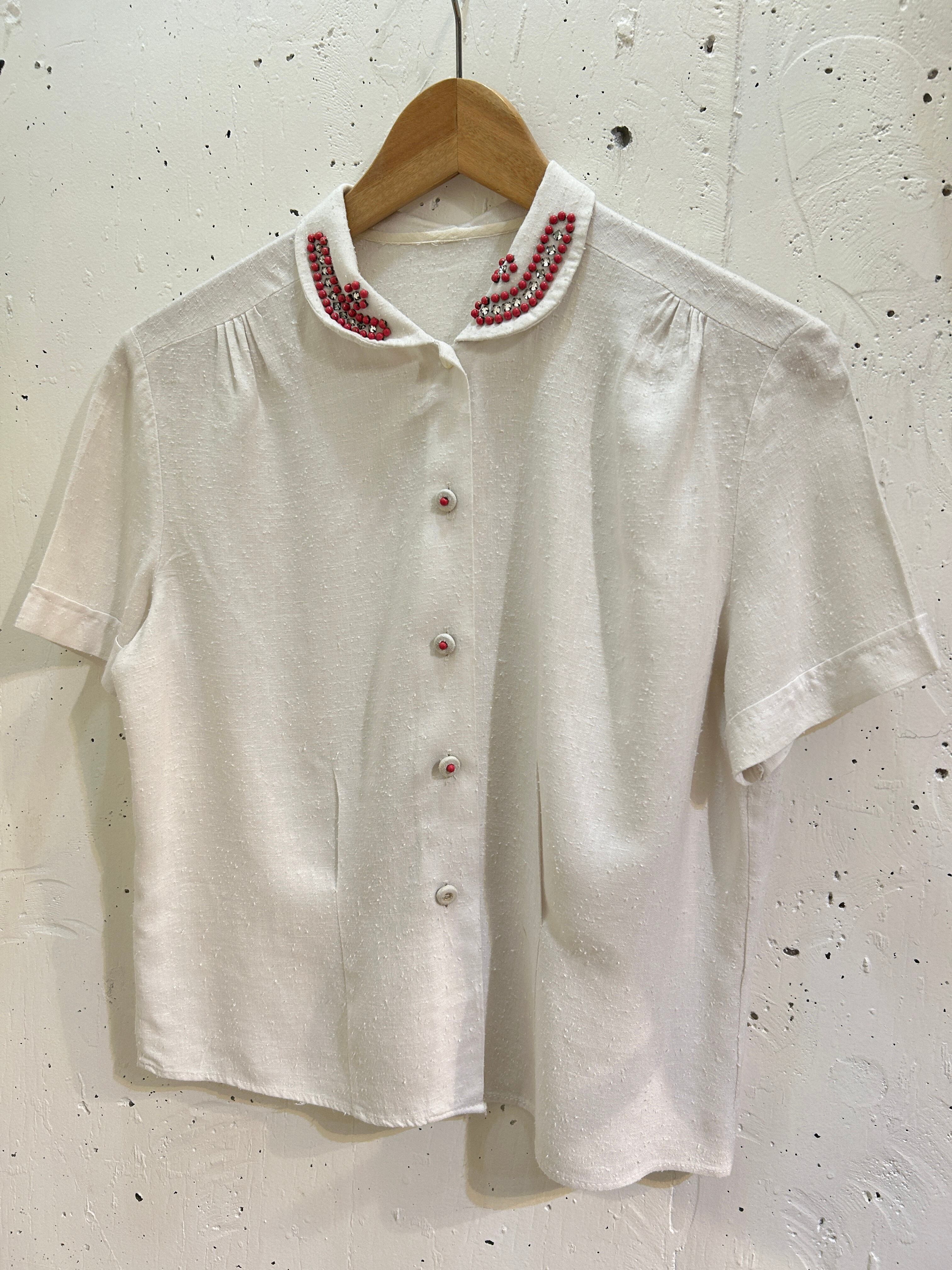 ボタン中央にも襟と同じビーズが施されており、リンクしているのもヴィンテージならではな手仕事の細やかさを感じます*