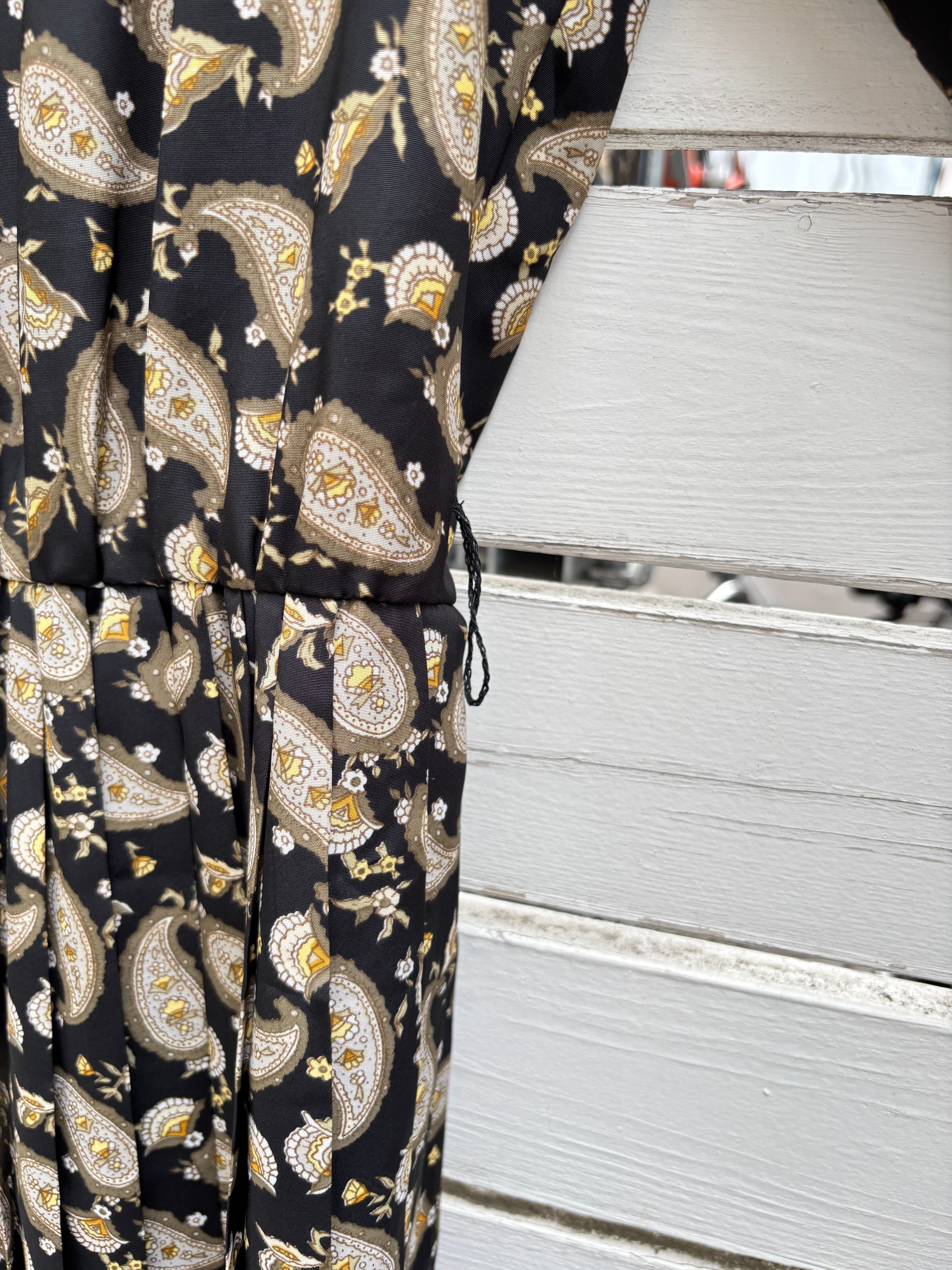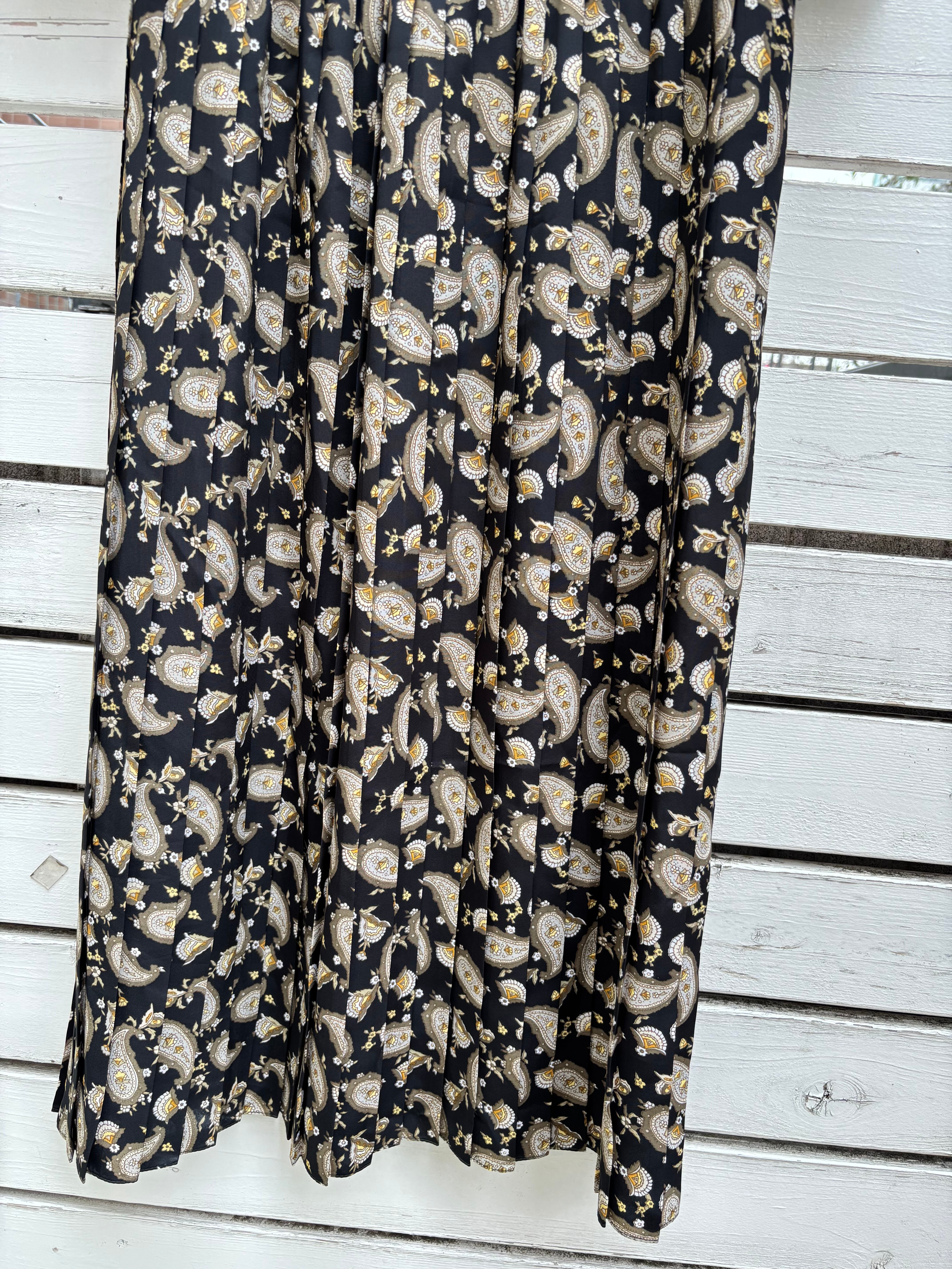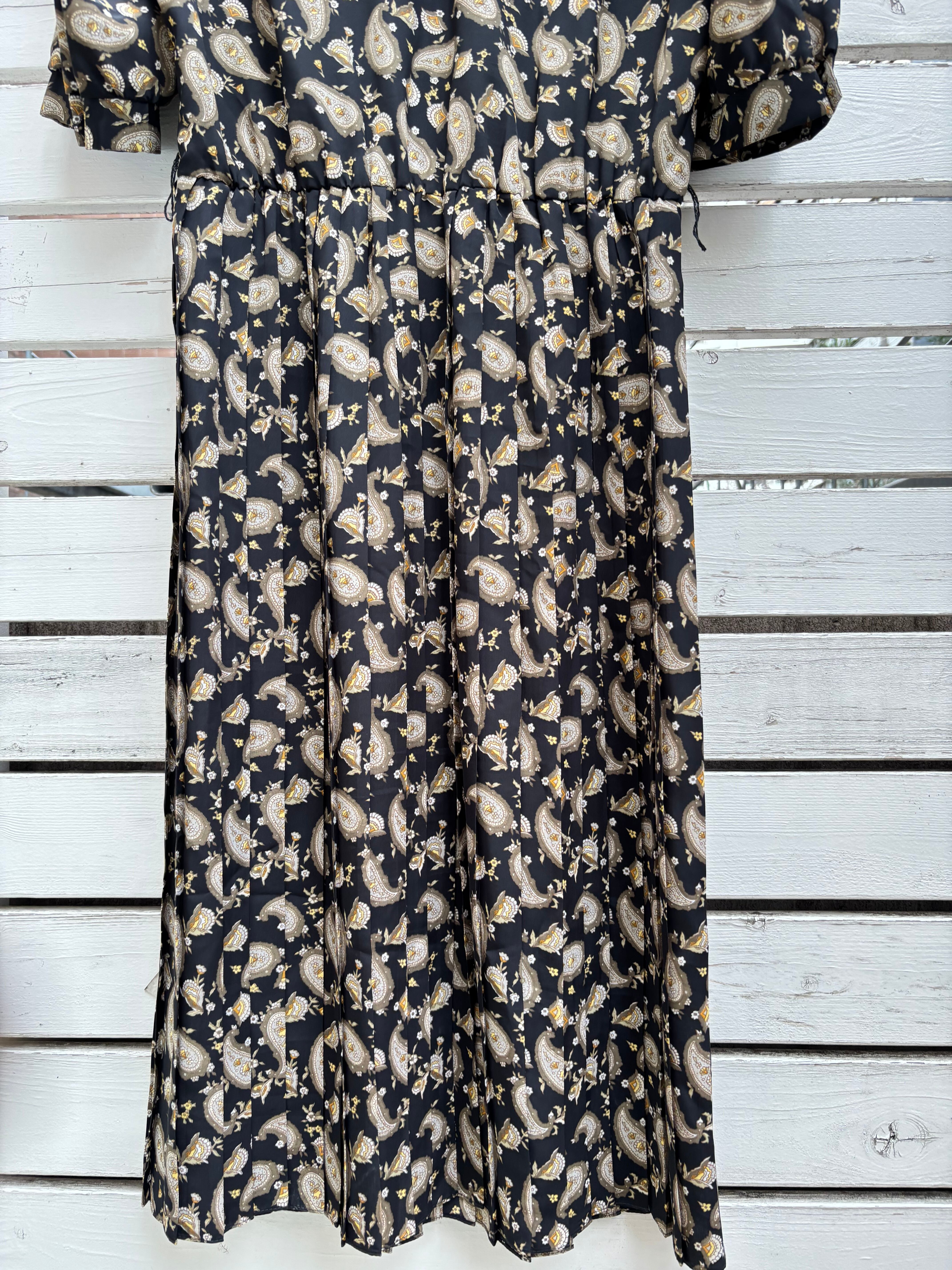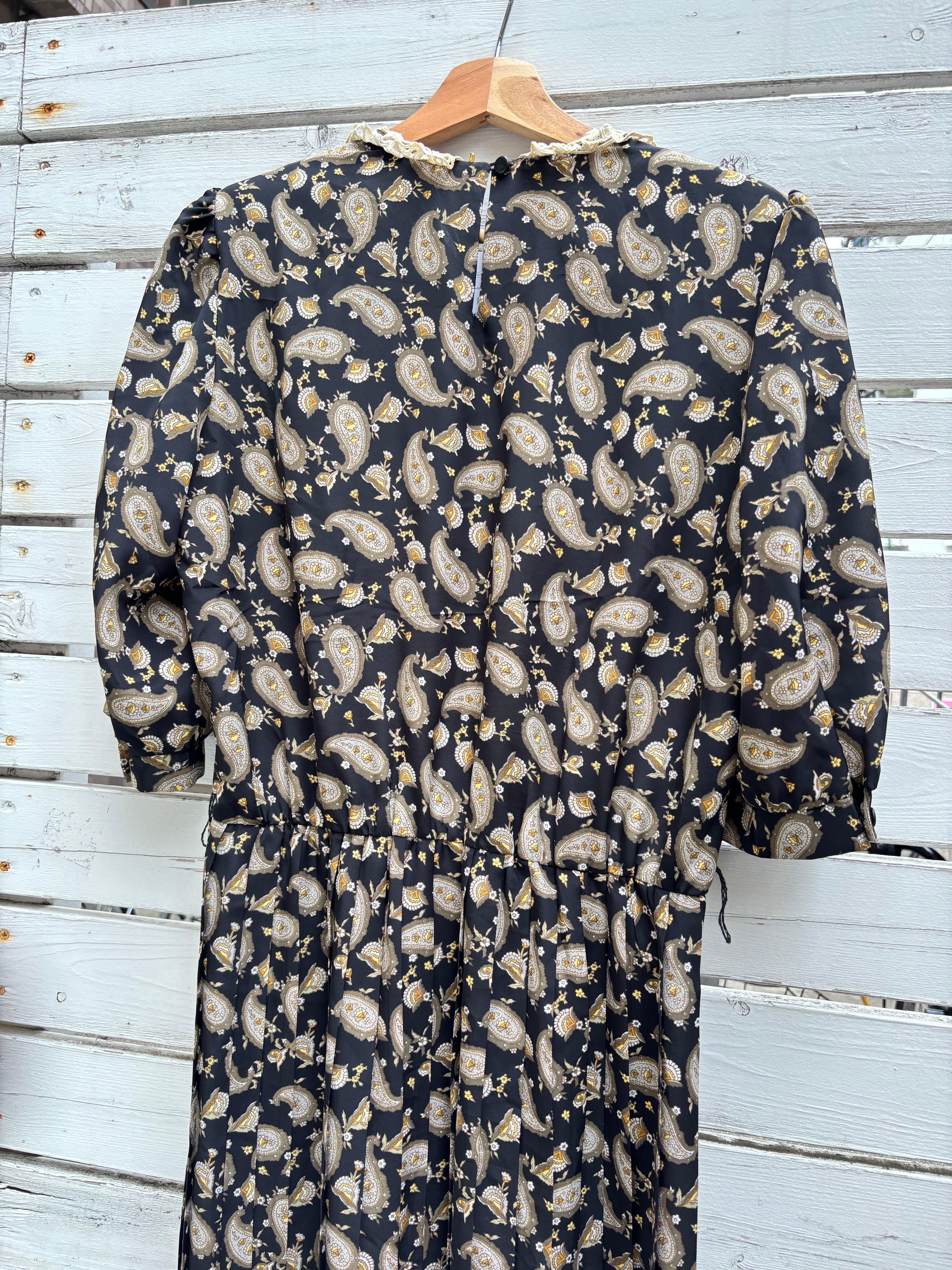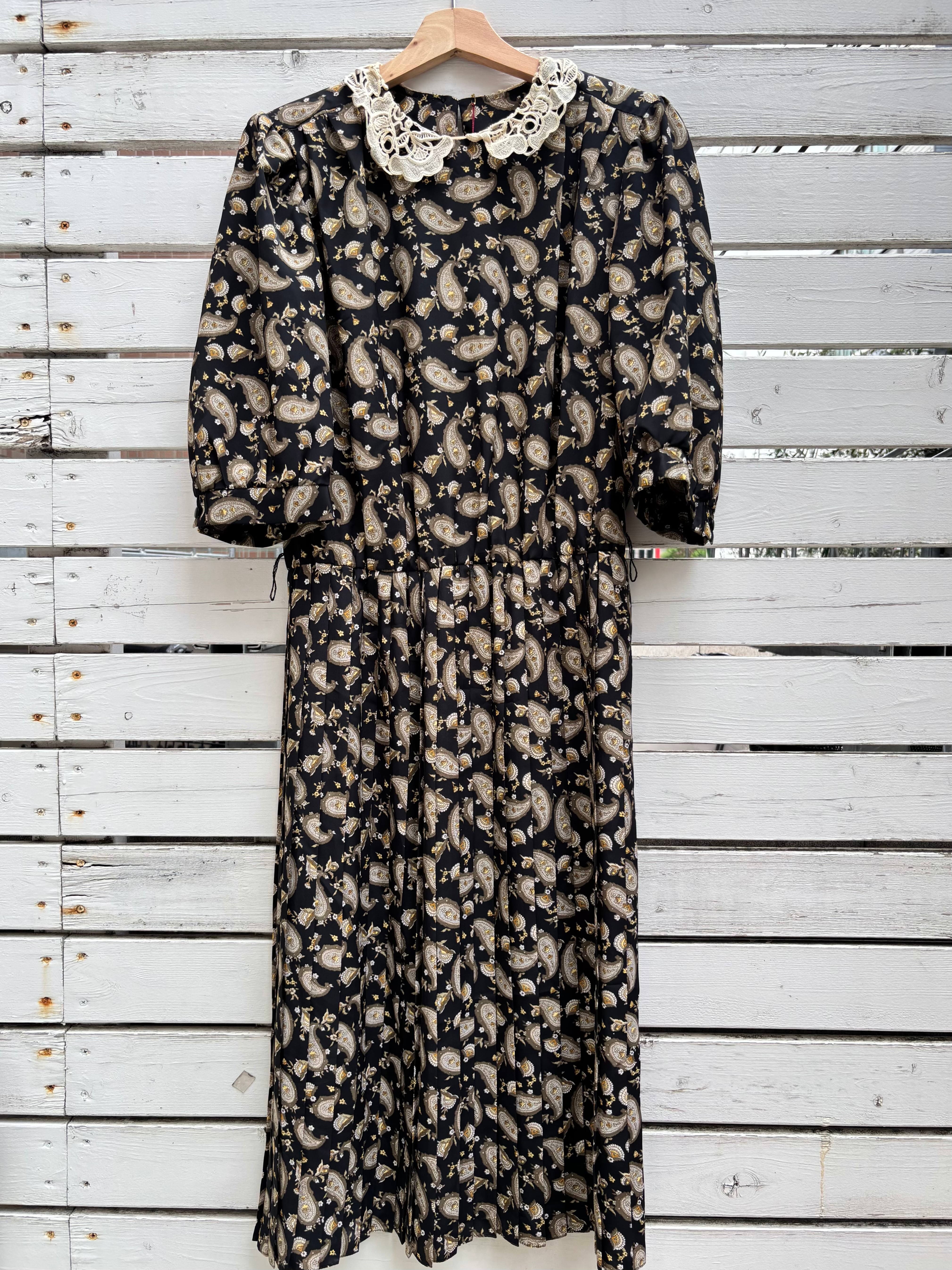 80’s black paisly pleats white lace collor dress