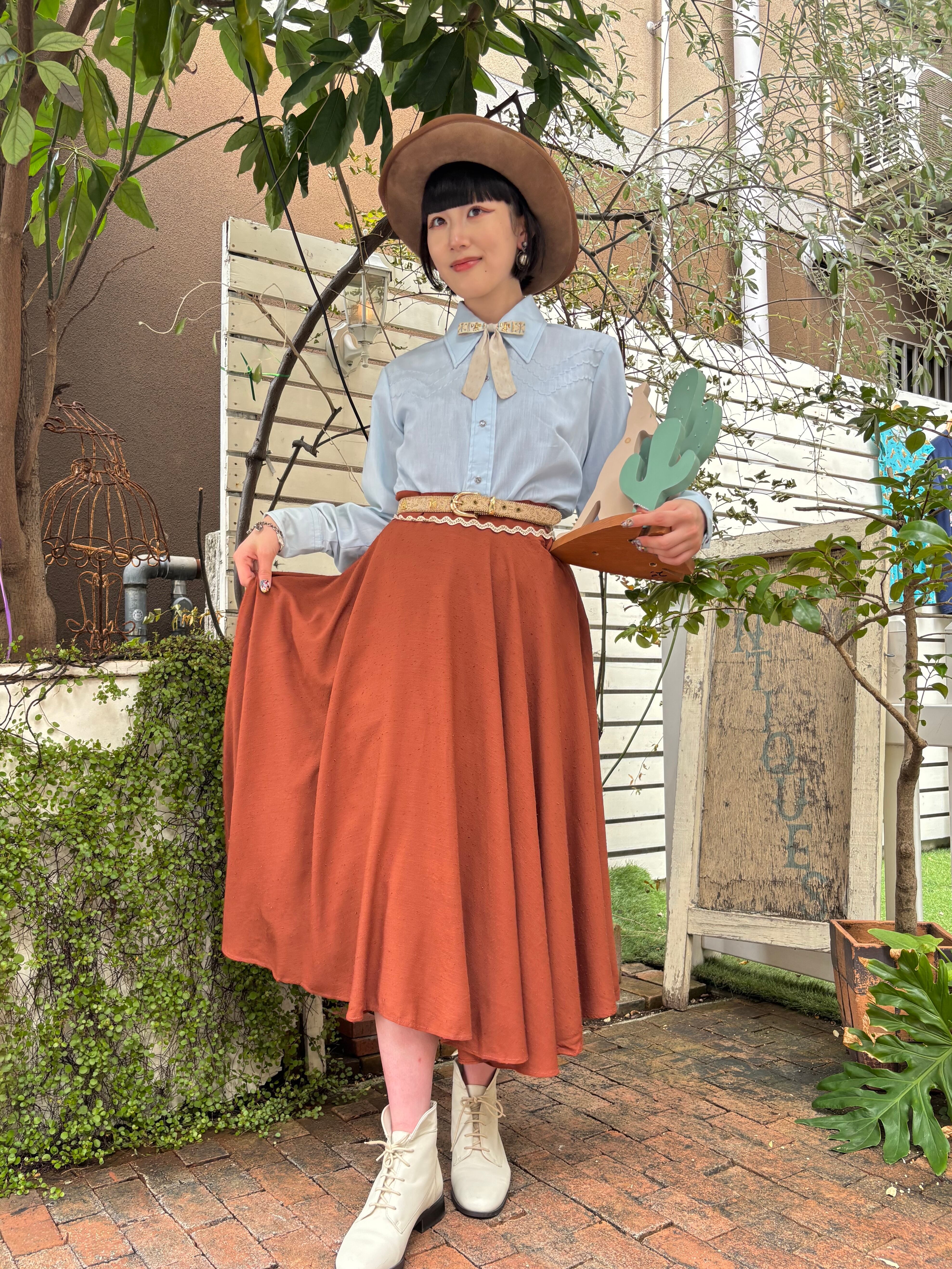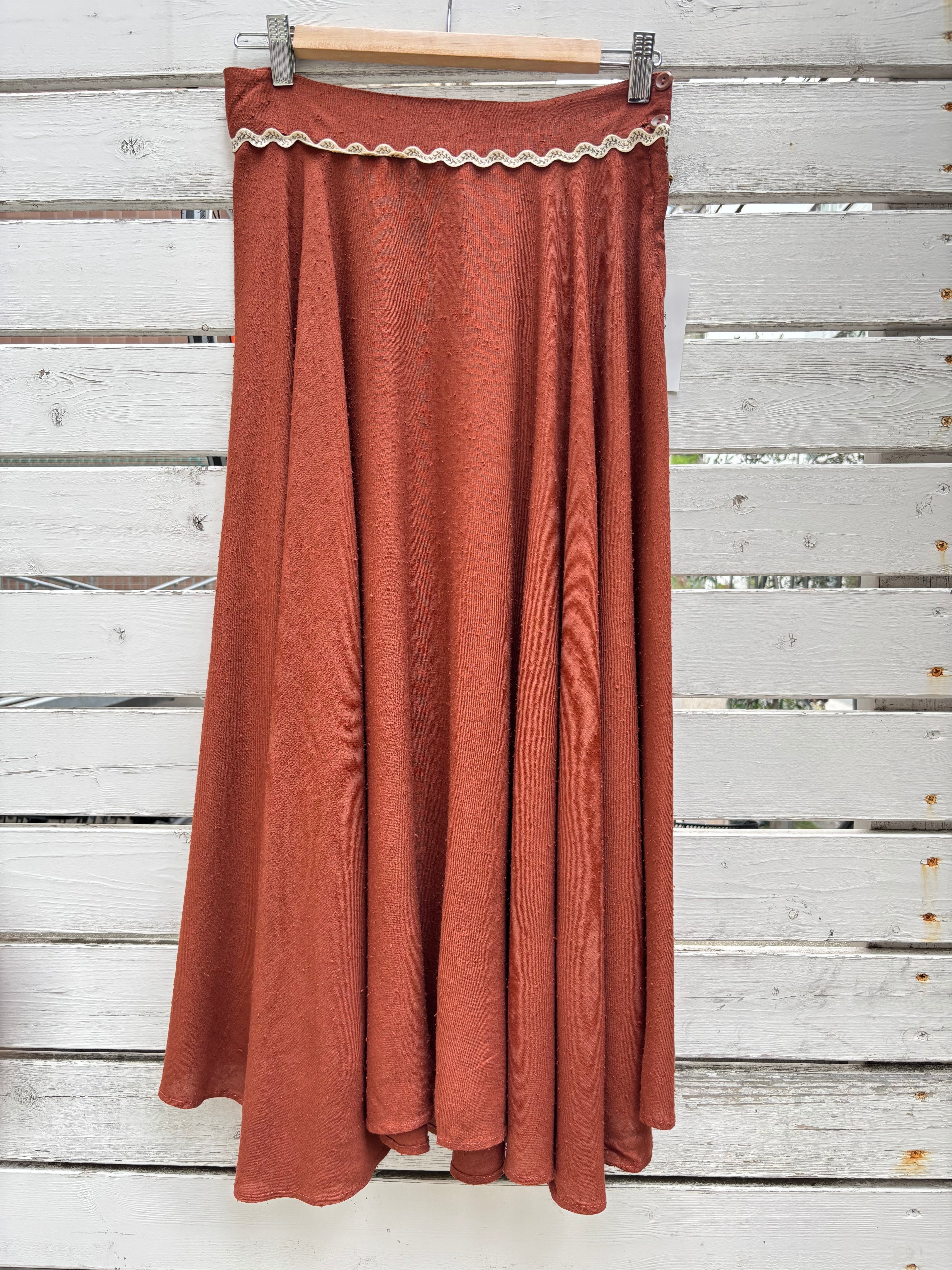 40’s brown rick rack embroidery circular skirt
