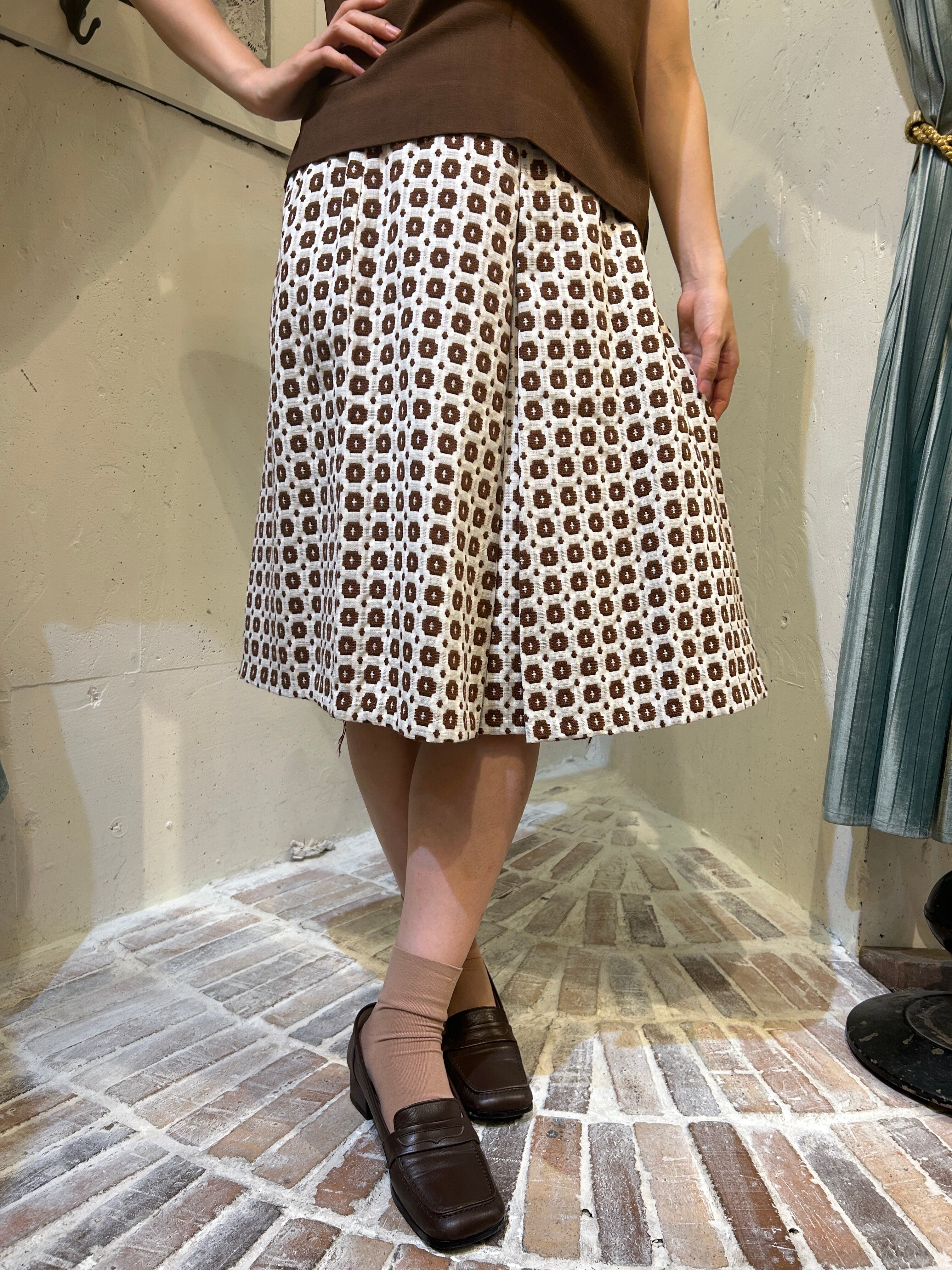 60'sらしいブラウンの幾何学模様のジャケットとスカートだけでもかわいいですが、インナーのとトップスまでセットです♡