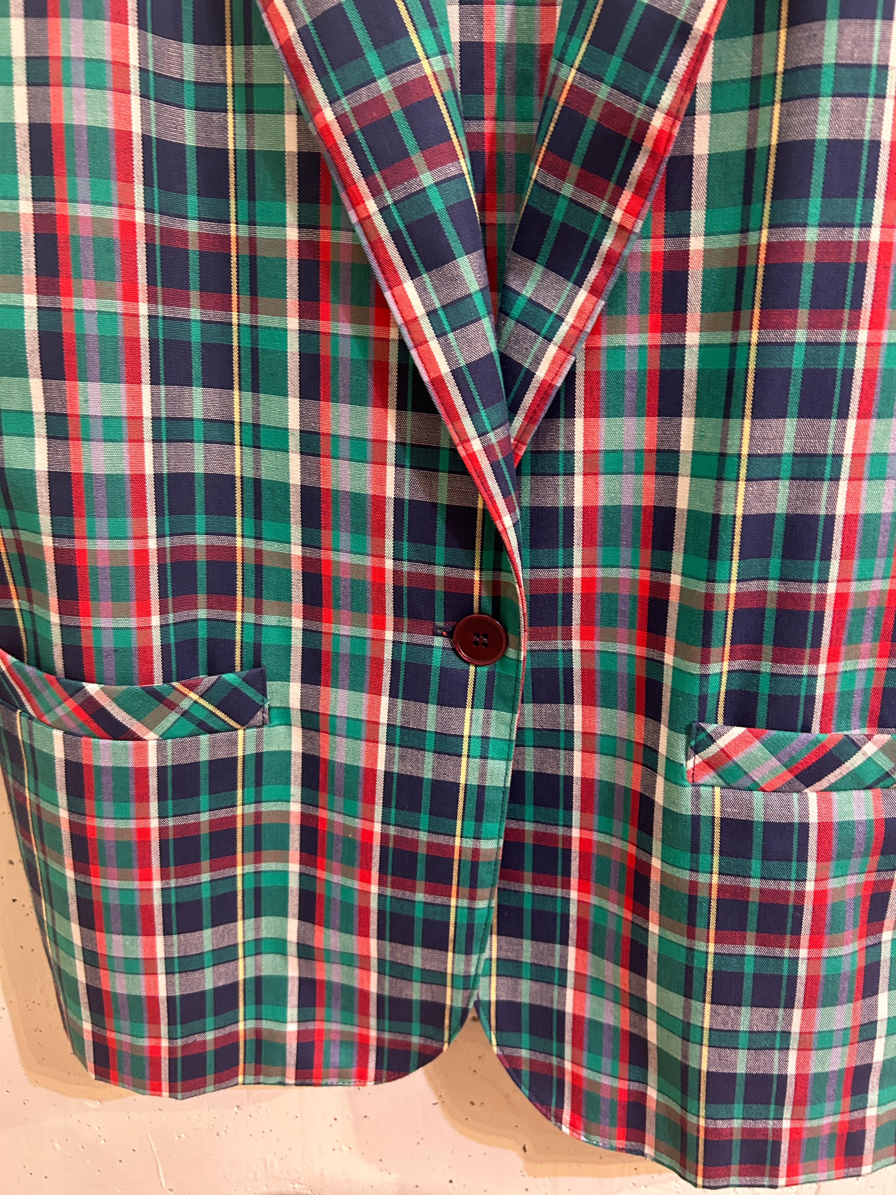 トラッドスタイルにピッタリなgreen × redカラーのチェックジャケット。