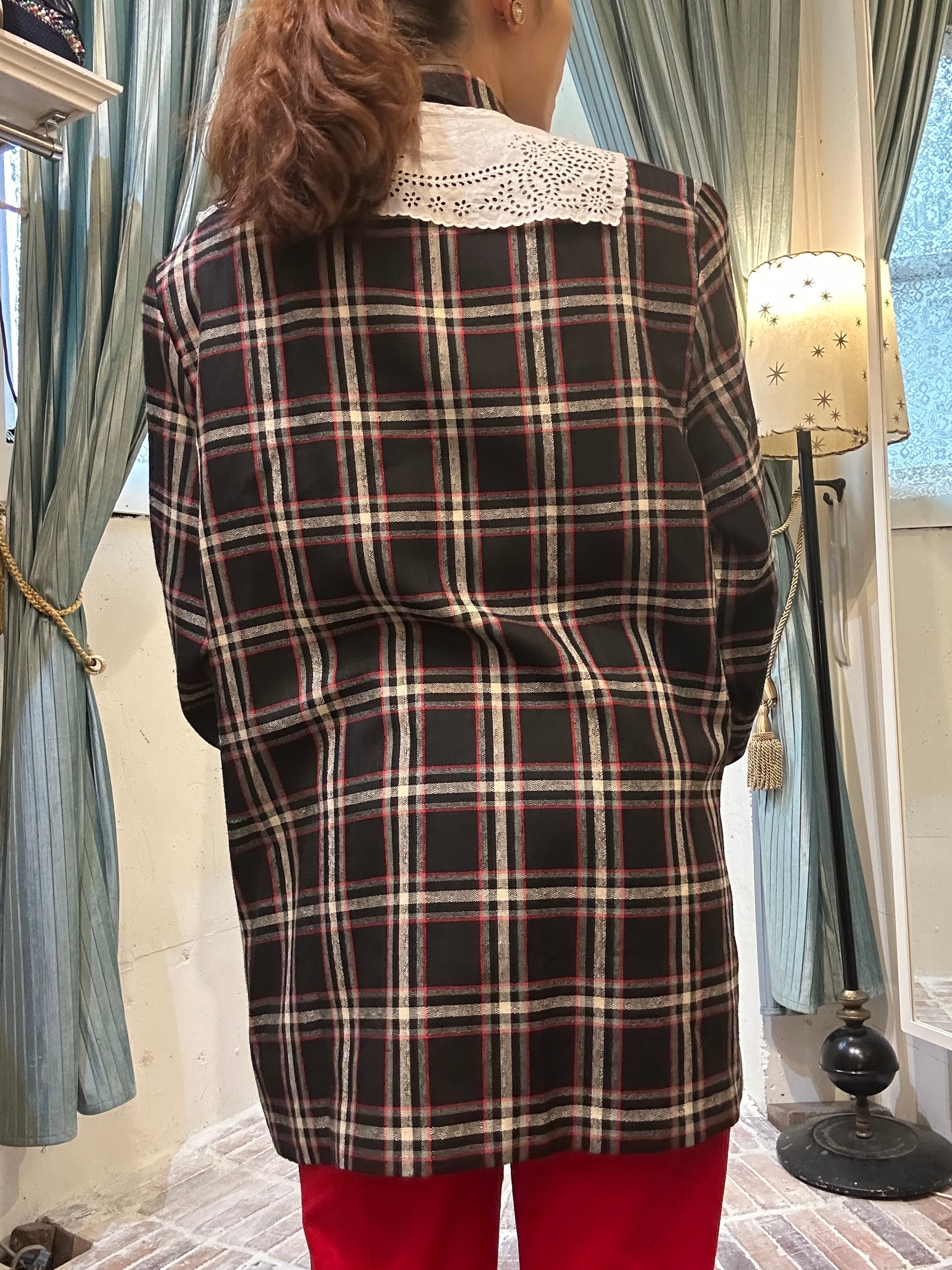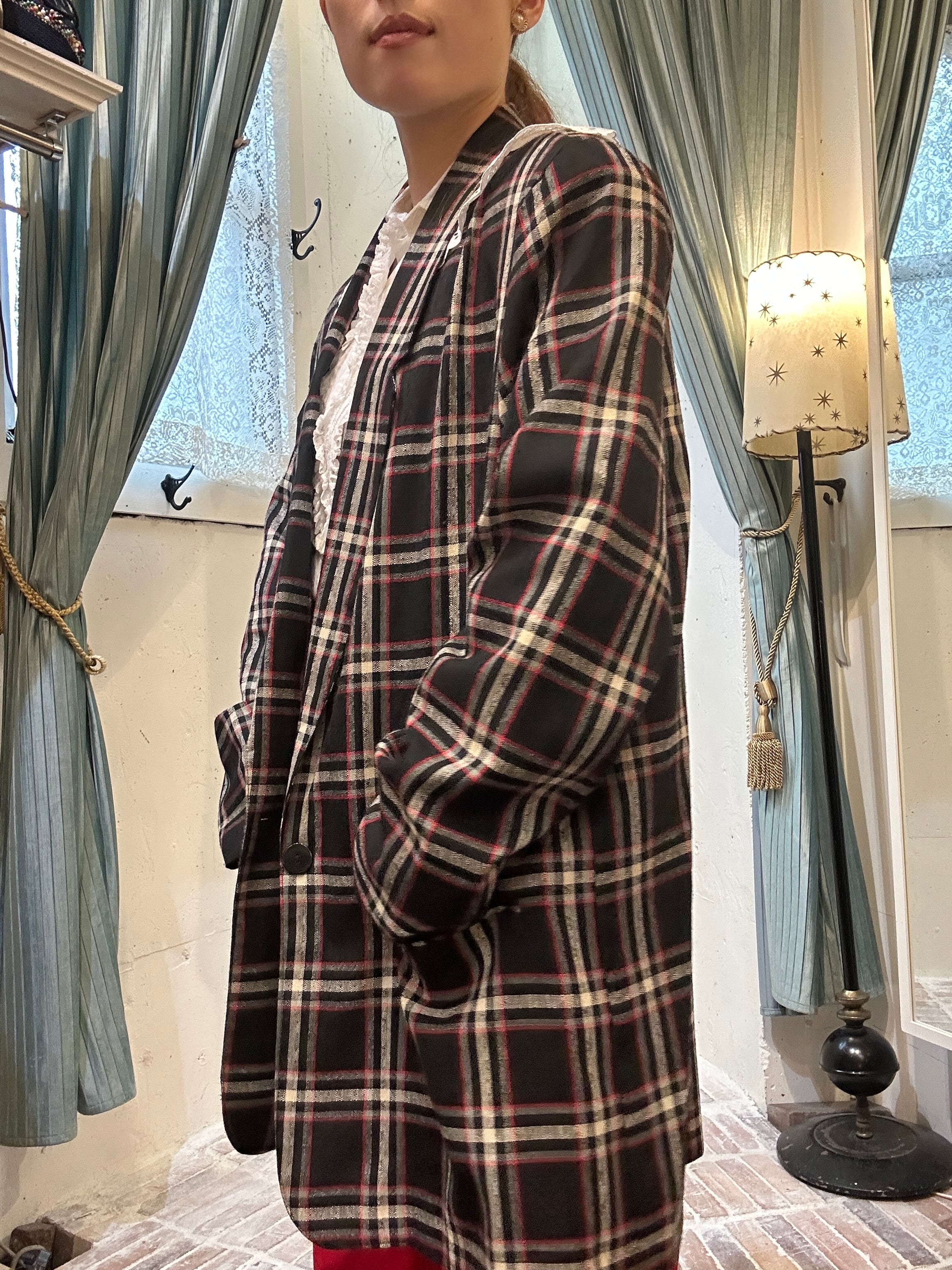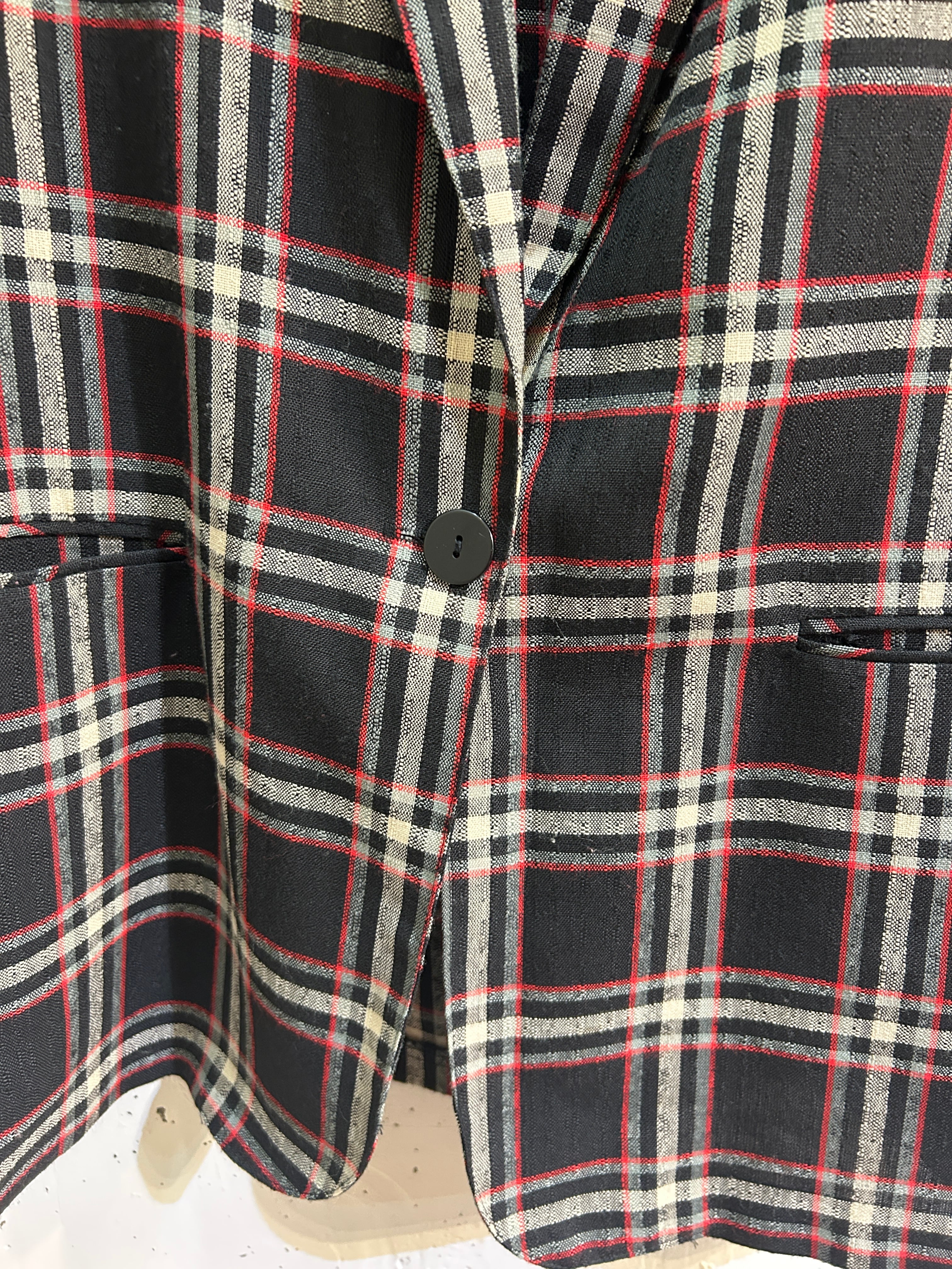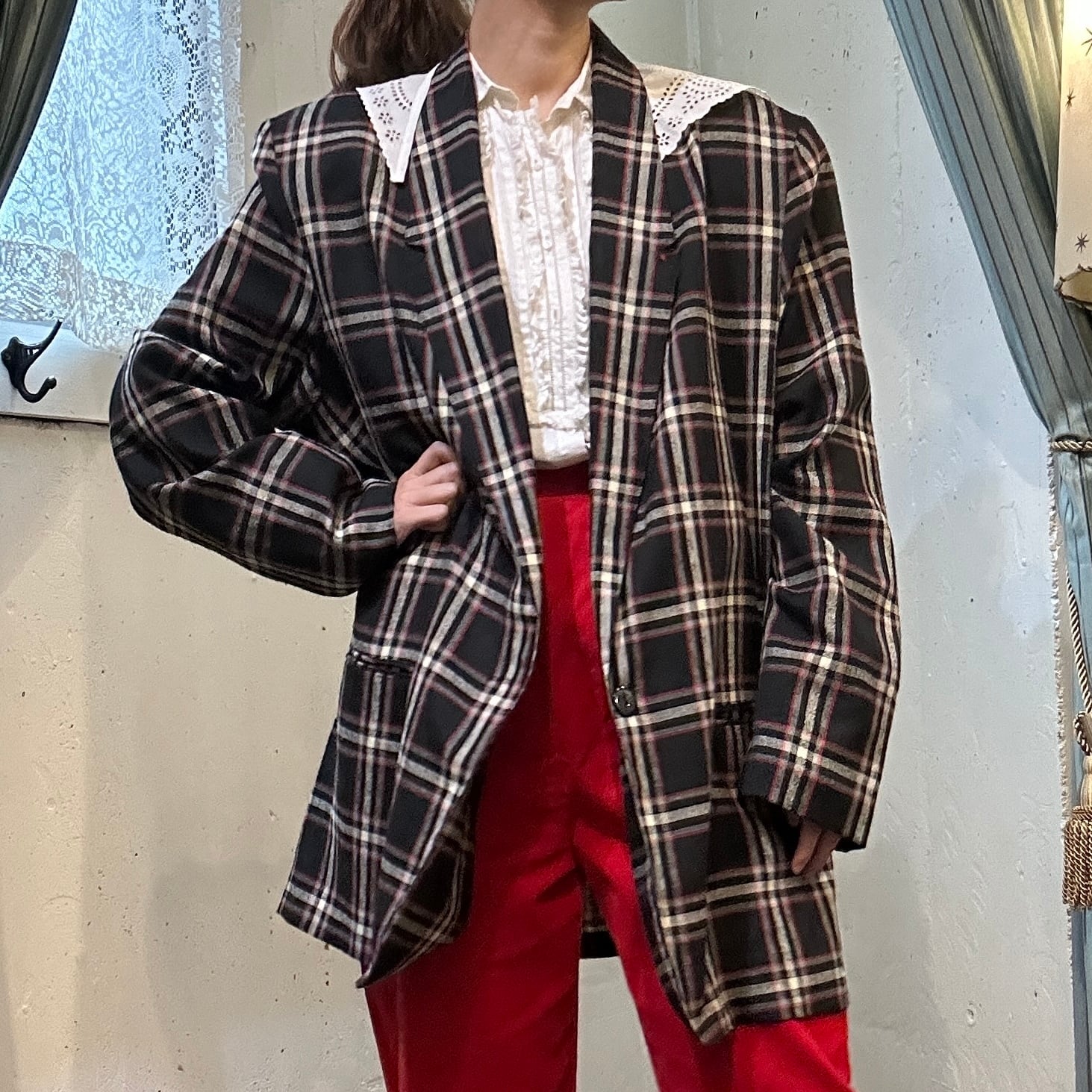 ブラック×ホワイト×レッドのチェック柄でマニッシュな雰囲気のジャケット✴︎