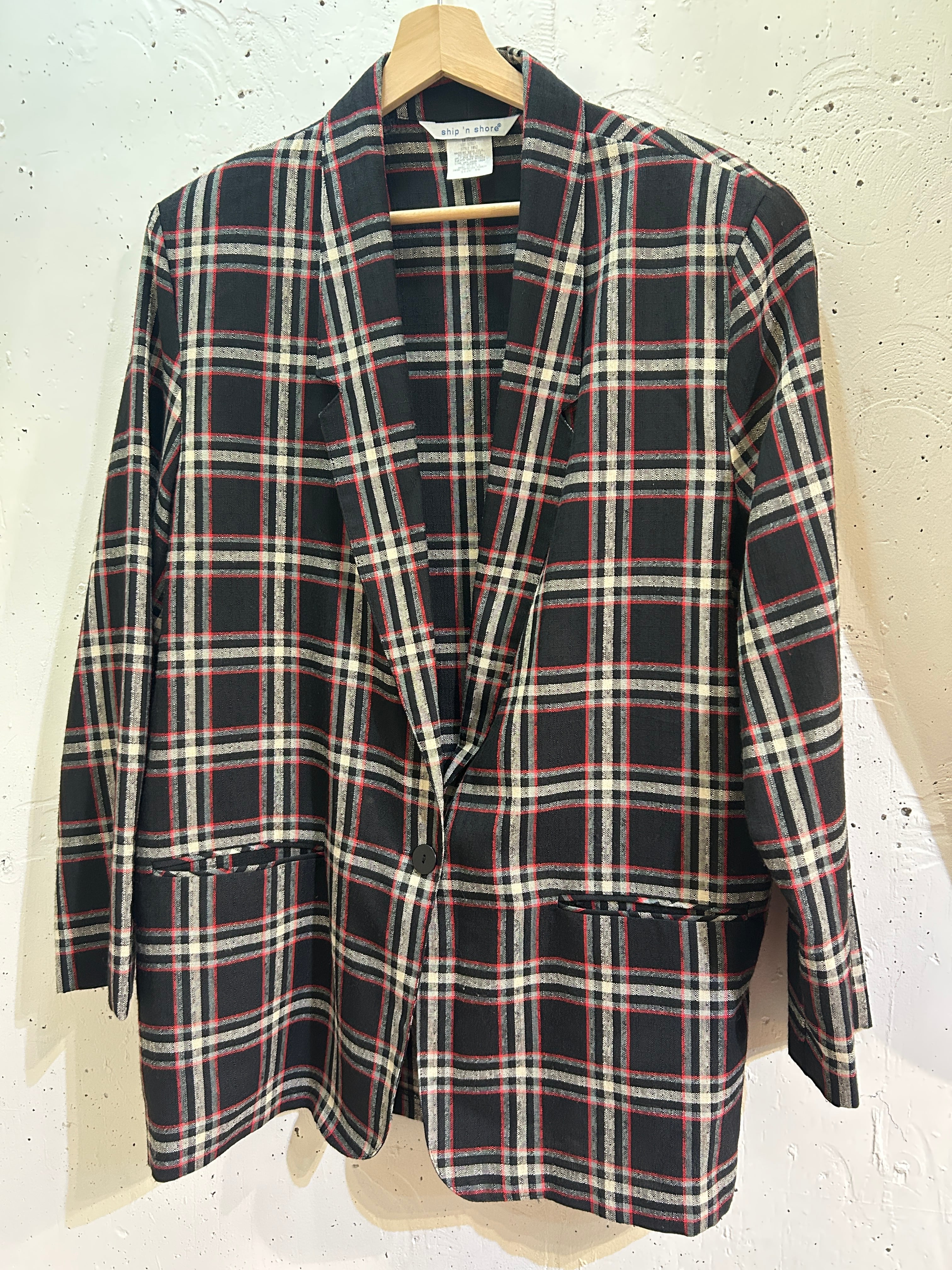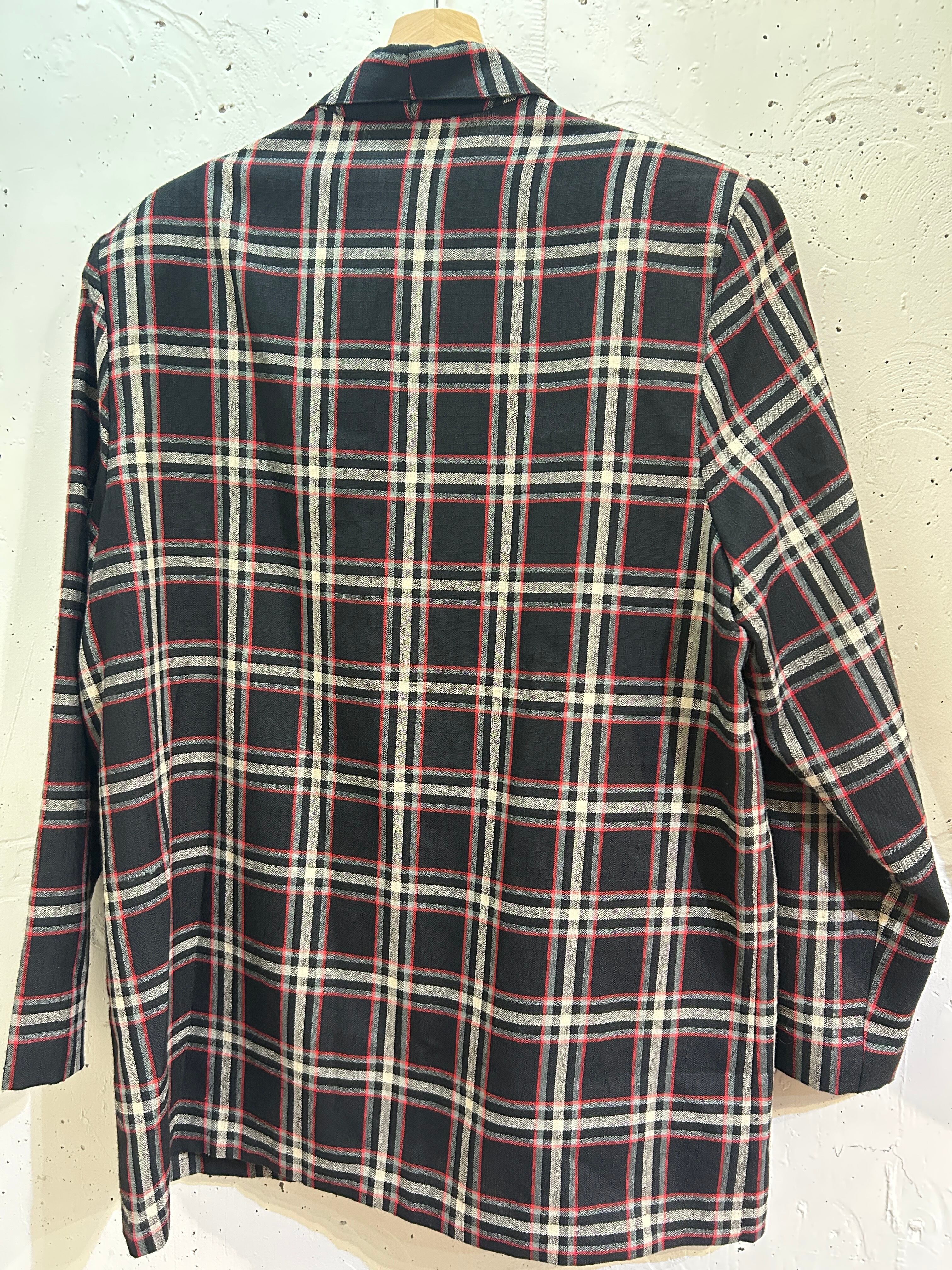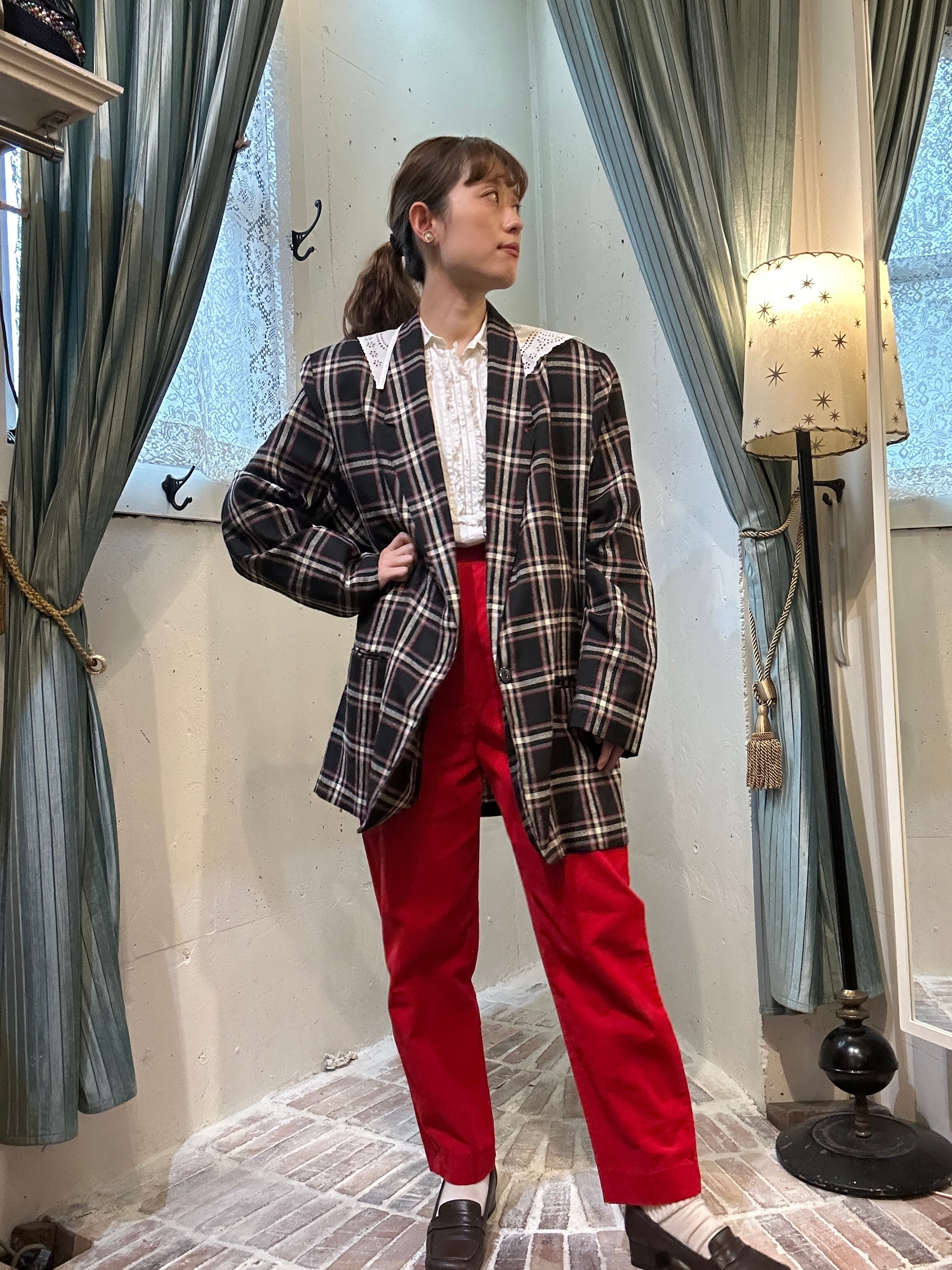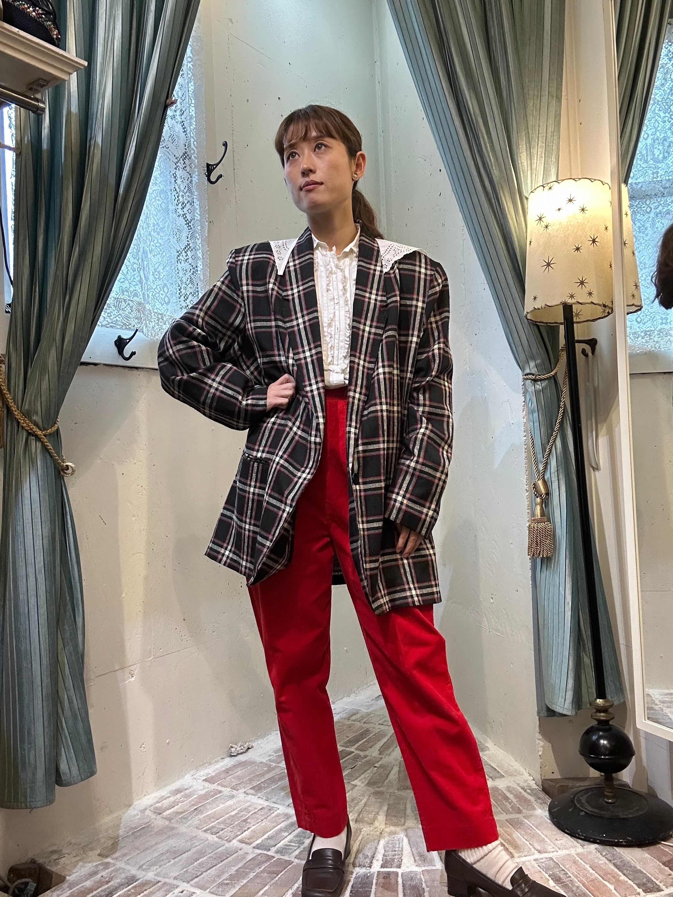 ブラック×ホワイト×レッドのチェック柄でマニッシュな雰囲気のジャケット✴︎
