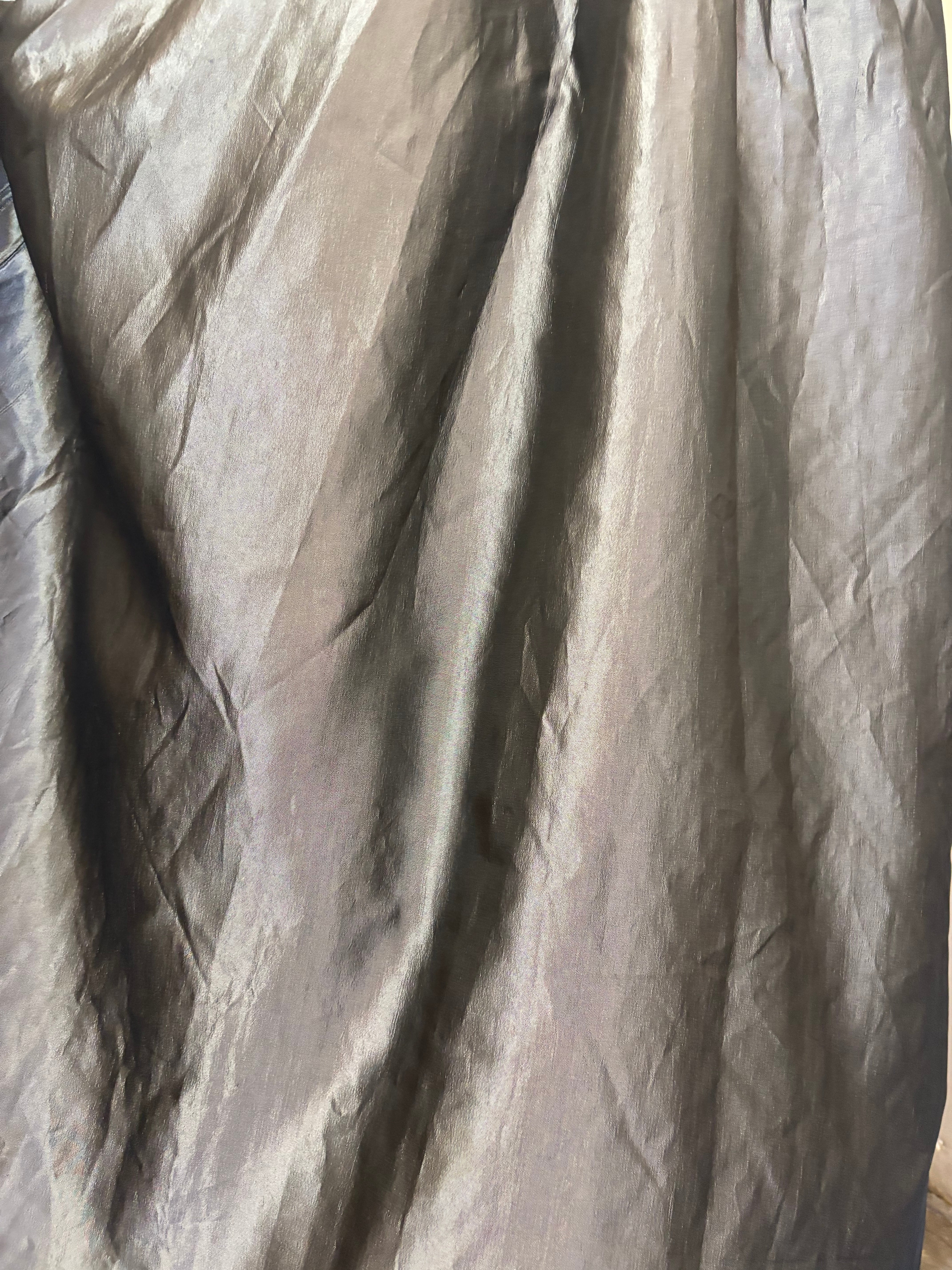 上身頃のvelvetの深い黒に、スカート部分はグレーシルバーのハリのあるナイロンタフタ素材、質感の違いが上品な陰影を生み出します◎