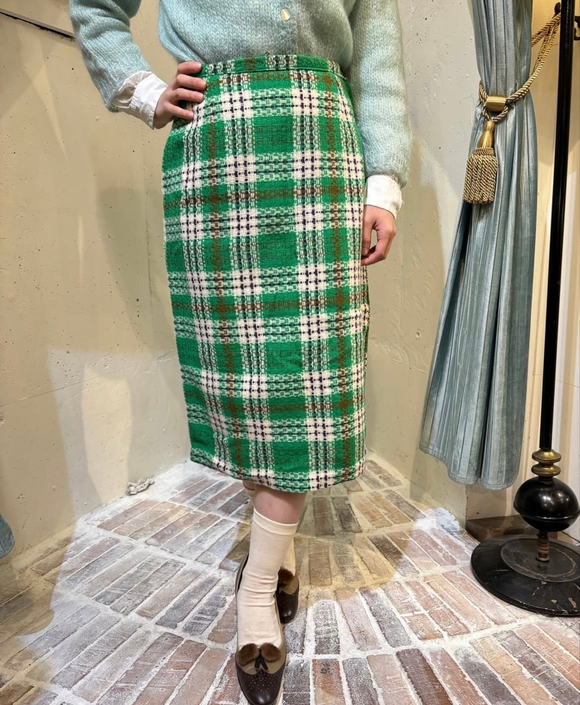 冬でも暖かいウールのツイードスカートで珍しい色のはっきりした鮮やかな色合いです✨