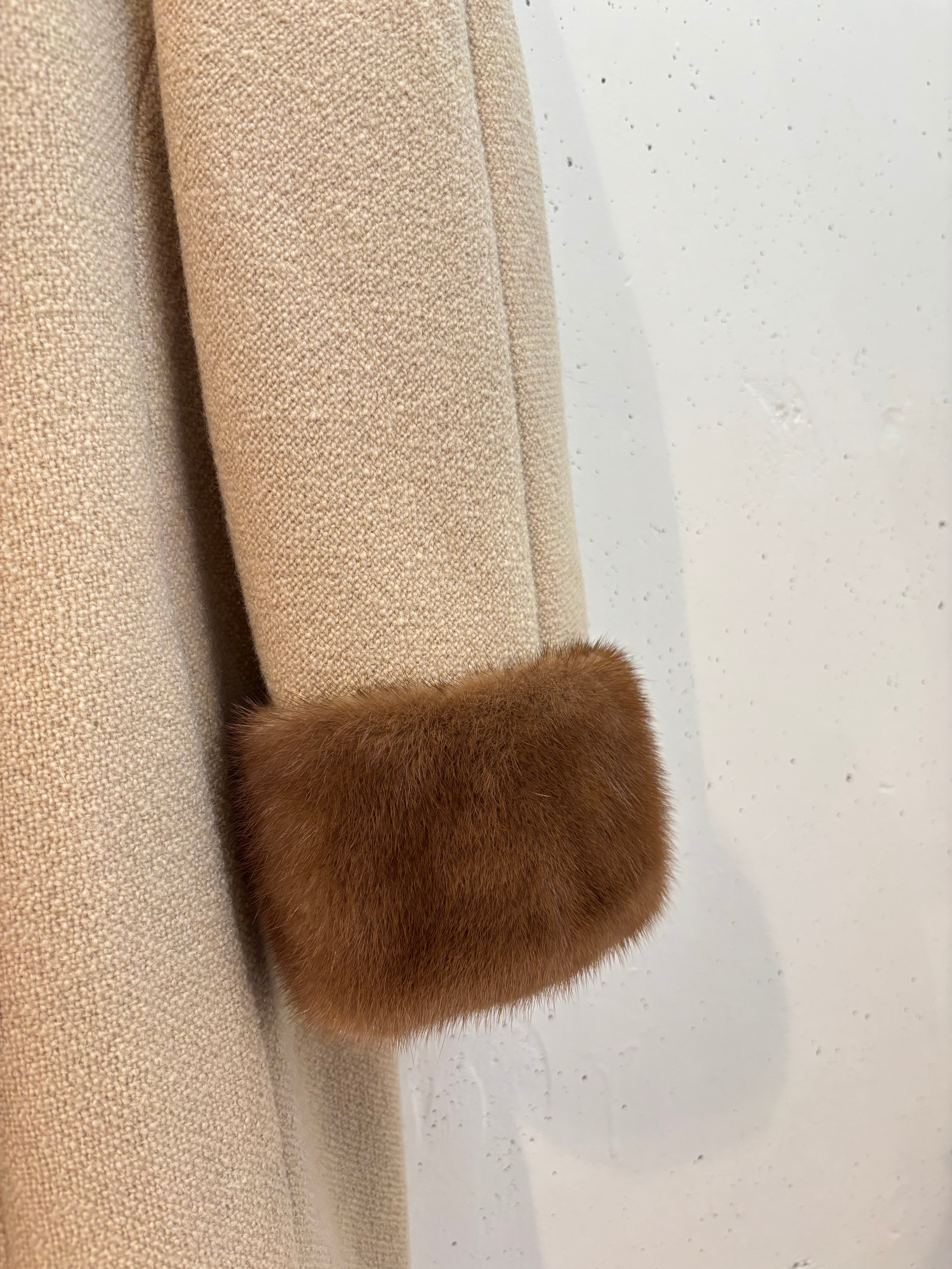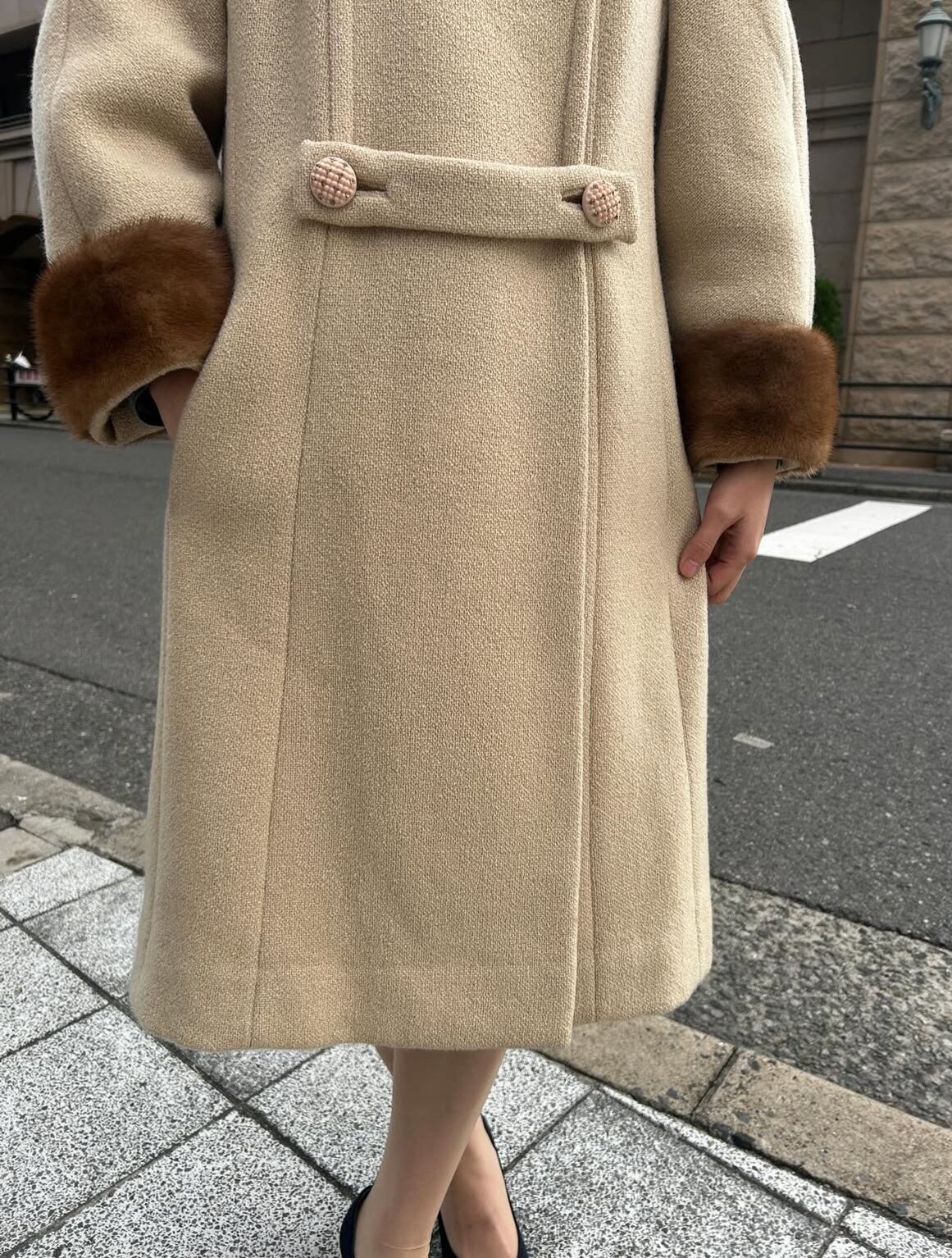 襟元とカフスにミンクファーが装飾された珍しいダブルファーコートはエレガントで上品な雰囲気です♪