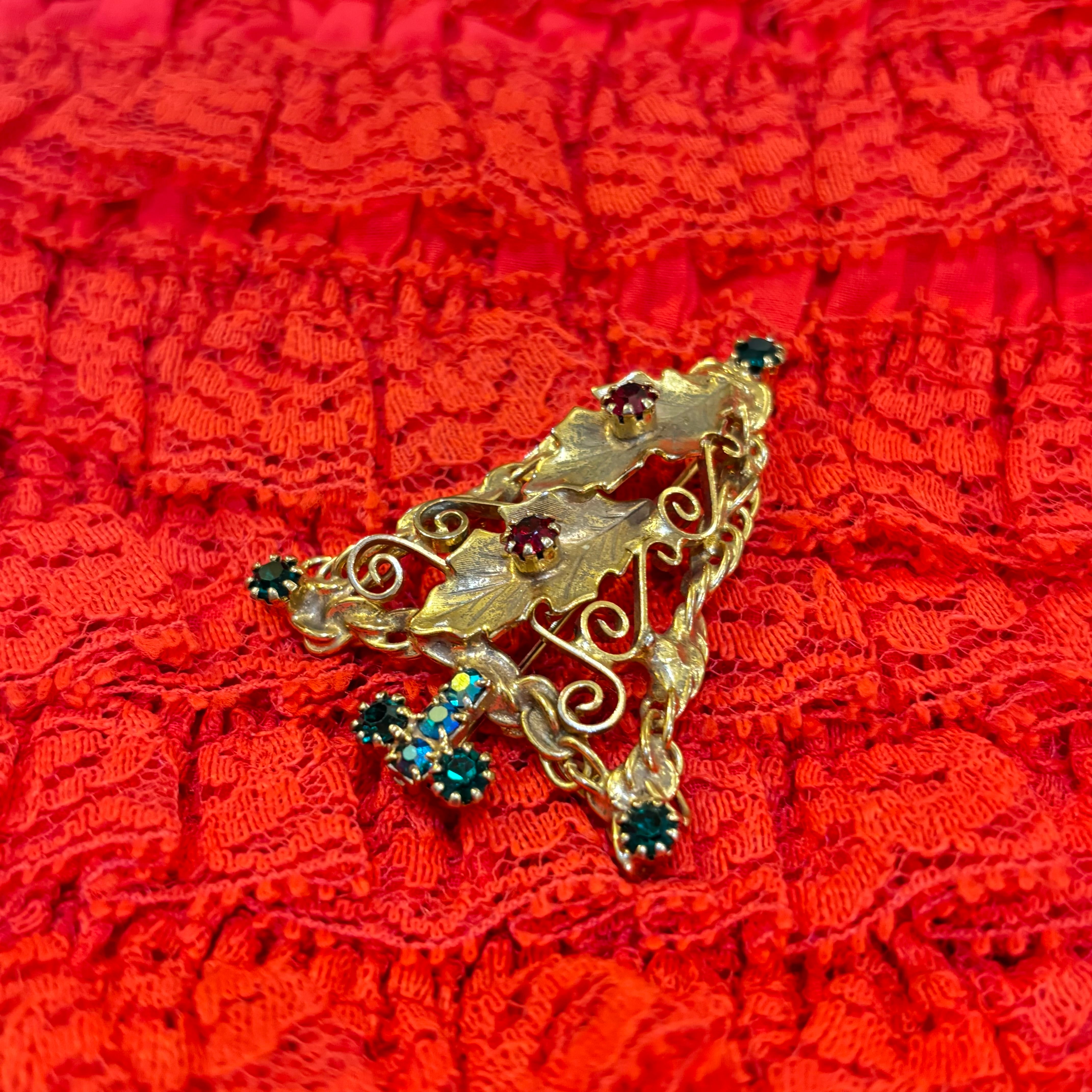 曲線が美しいツリーです◎赤と緑のラインストーンがポイントに入っており動く度に煌めきます♪
