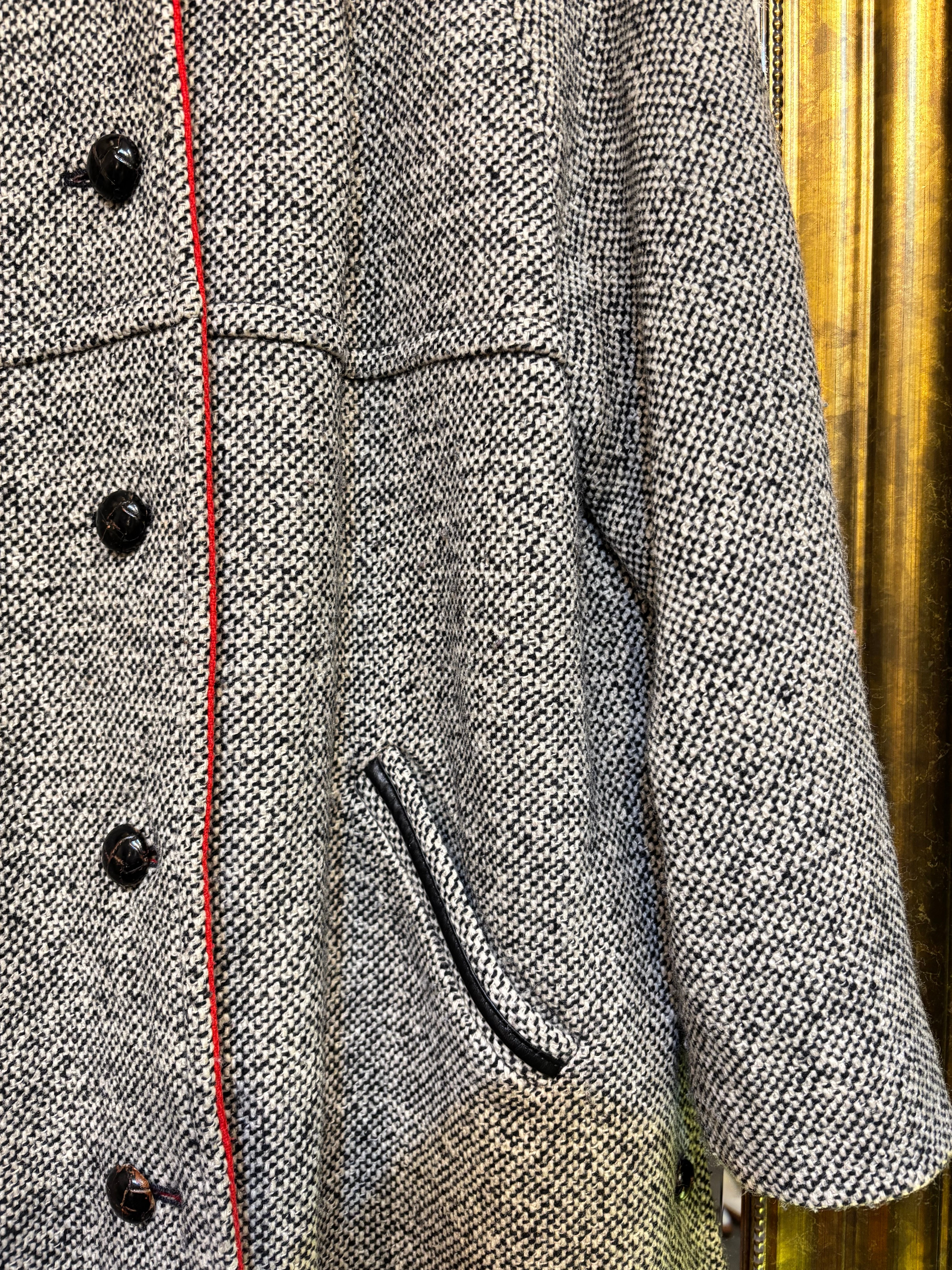 たっぷり生地感のある、ブラック×グレーのツイードコートです♪