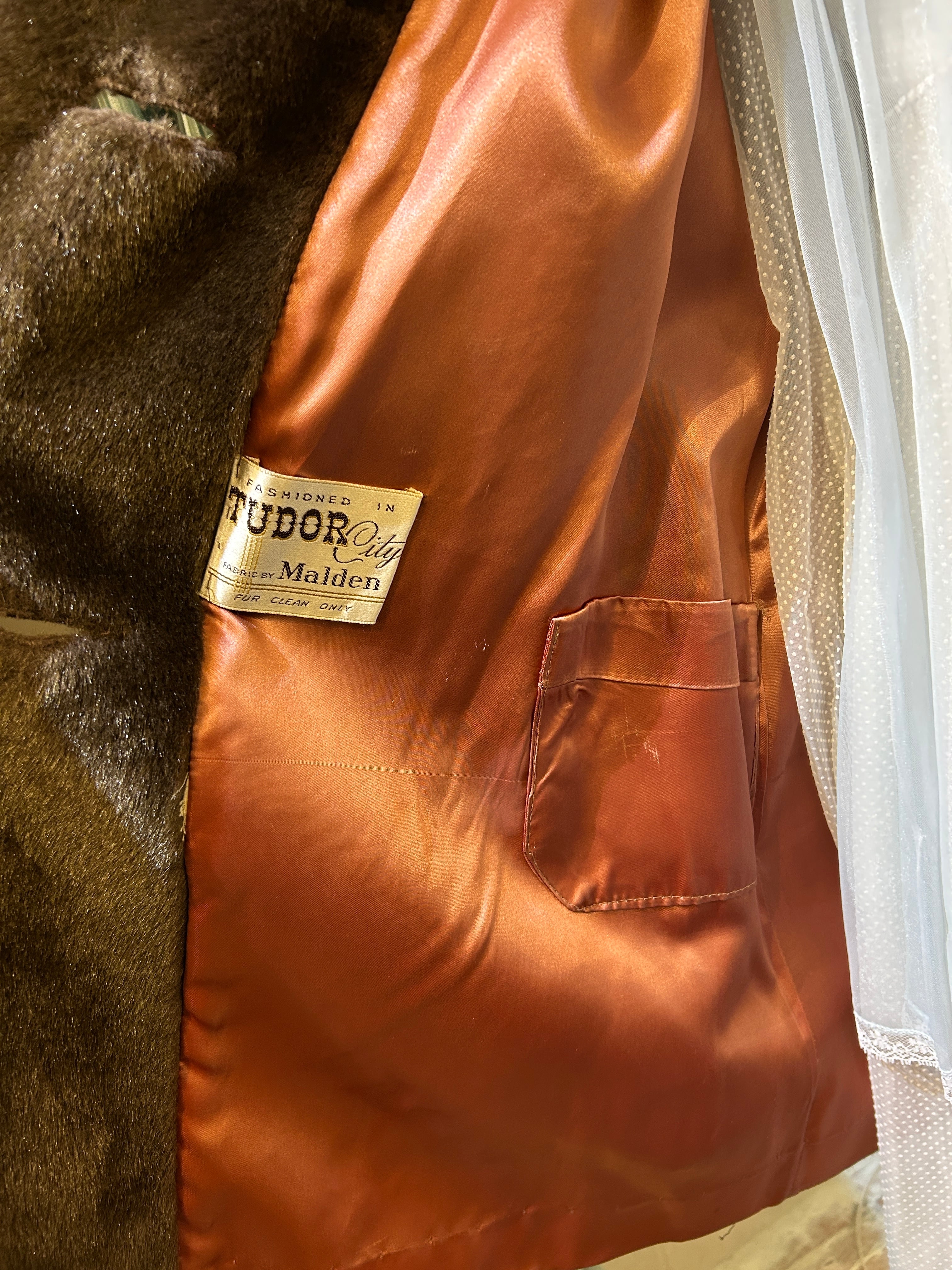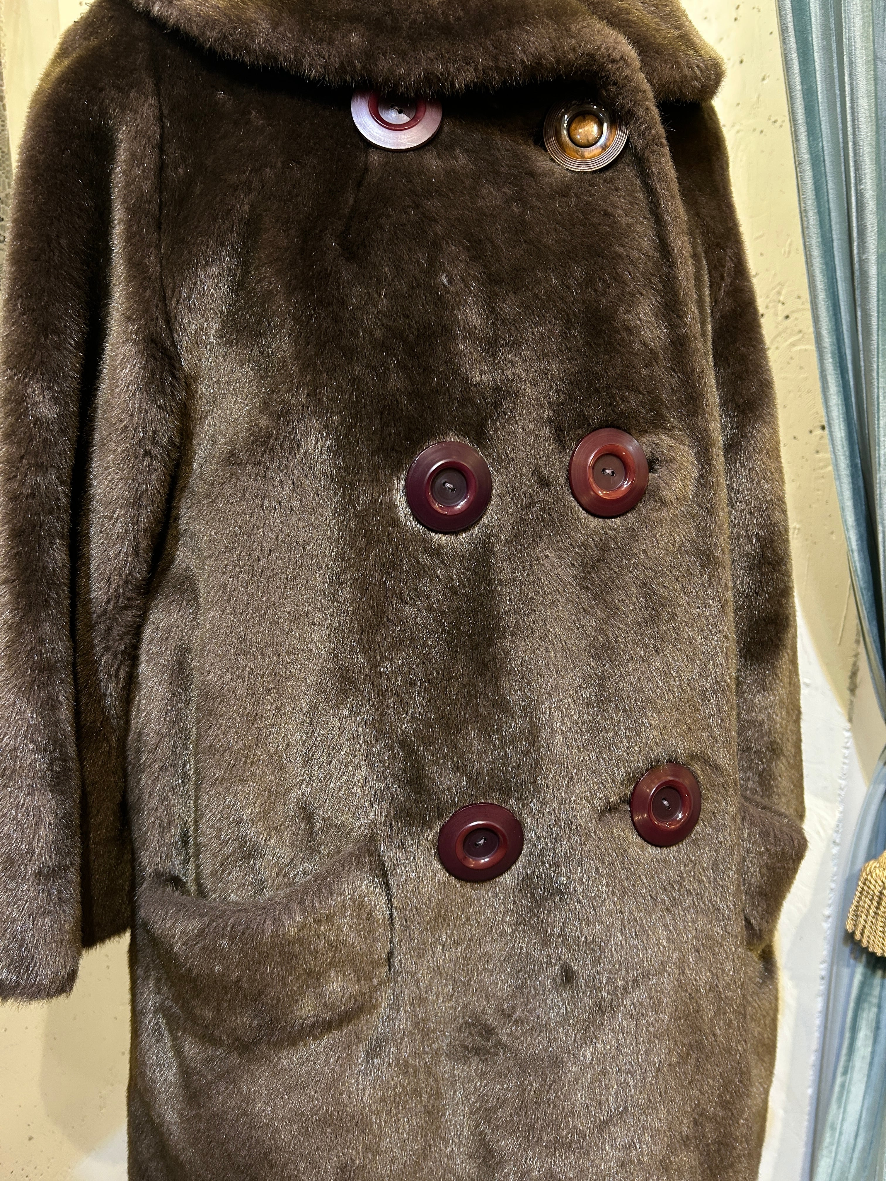 60's moca brown faux fur coat