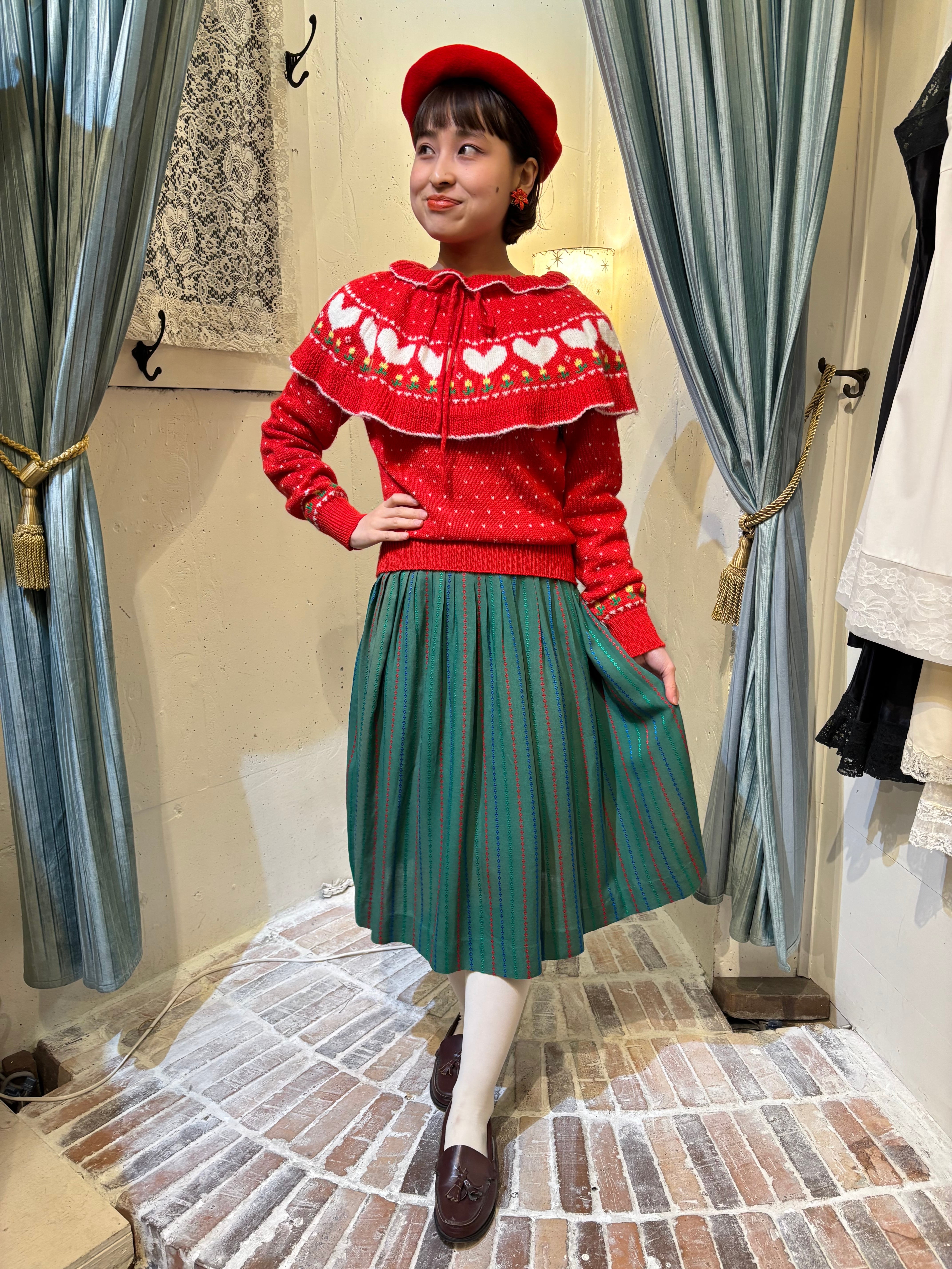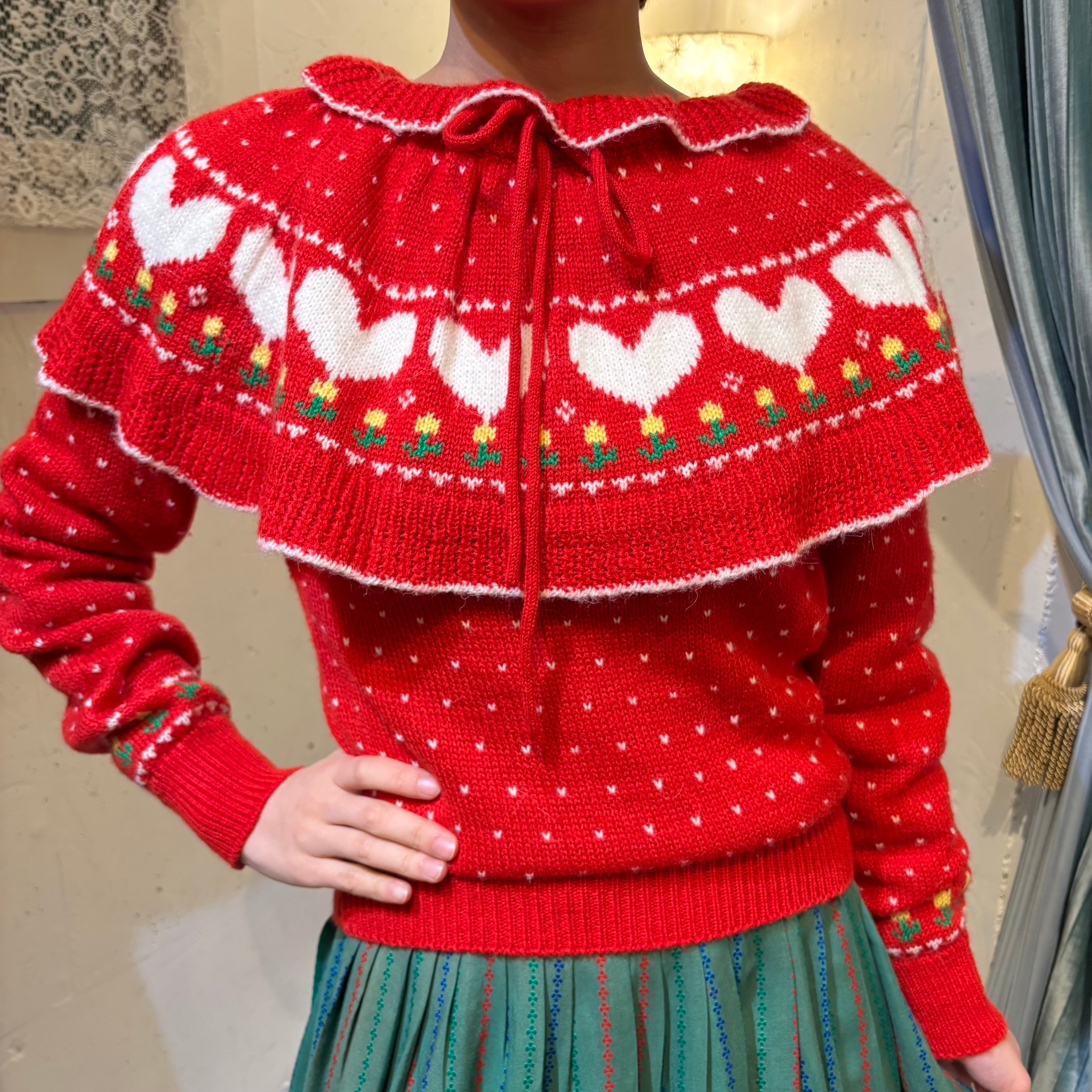 80’s heart & flower red sweater