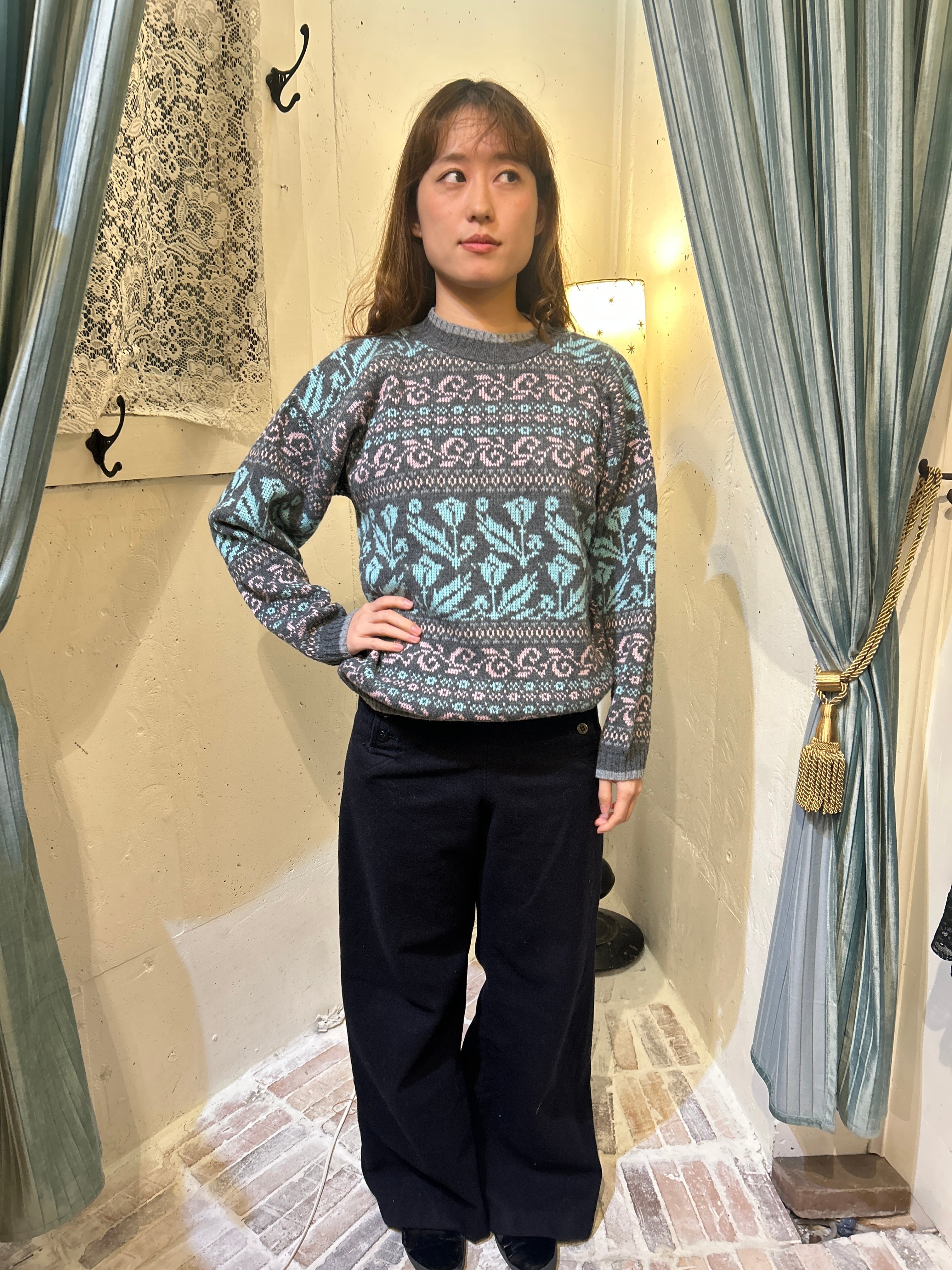 80’s gray × pink × blue pastel sweater 【dead stock】
