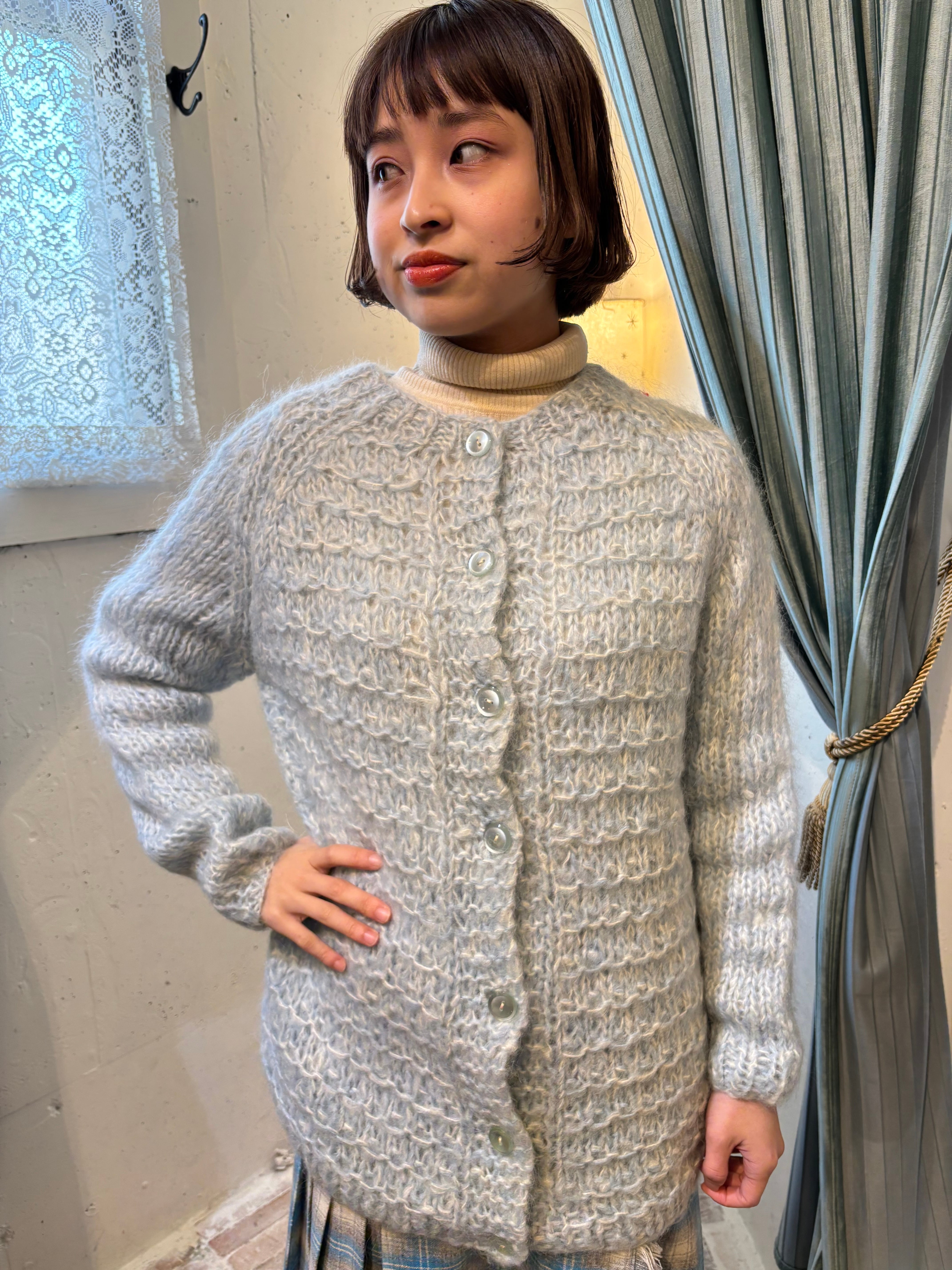 水色×ホワイトのニュアンスがかわいいモヘアカーディガンです♪