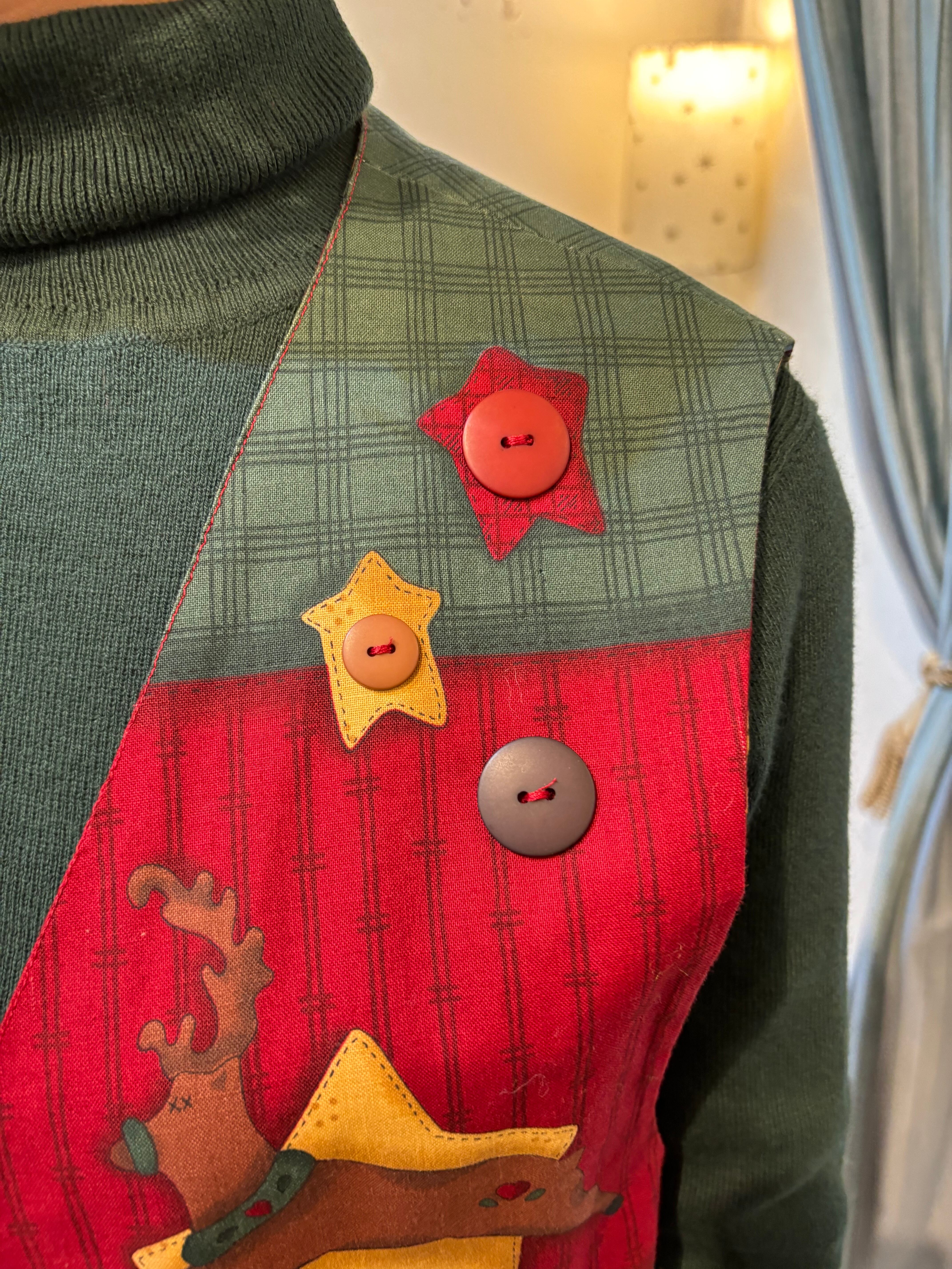 ボタンもデザインの一部になっている遊び心のあるベストです♩