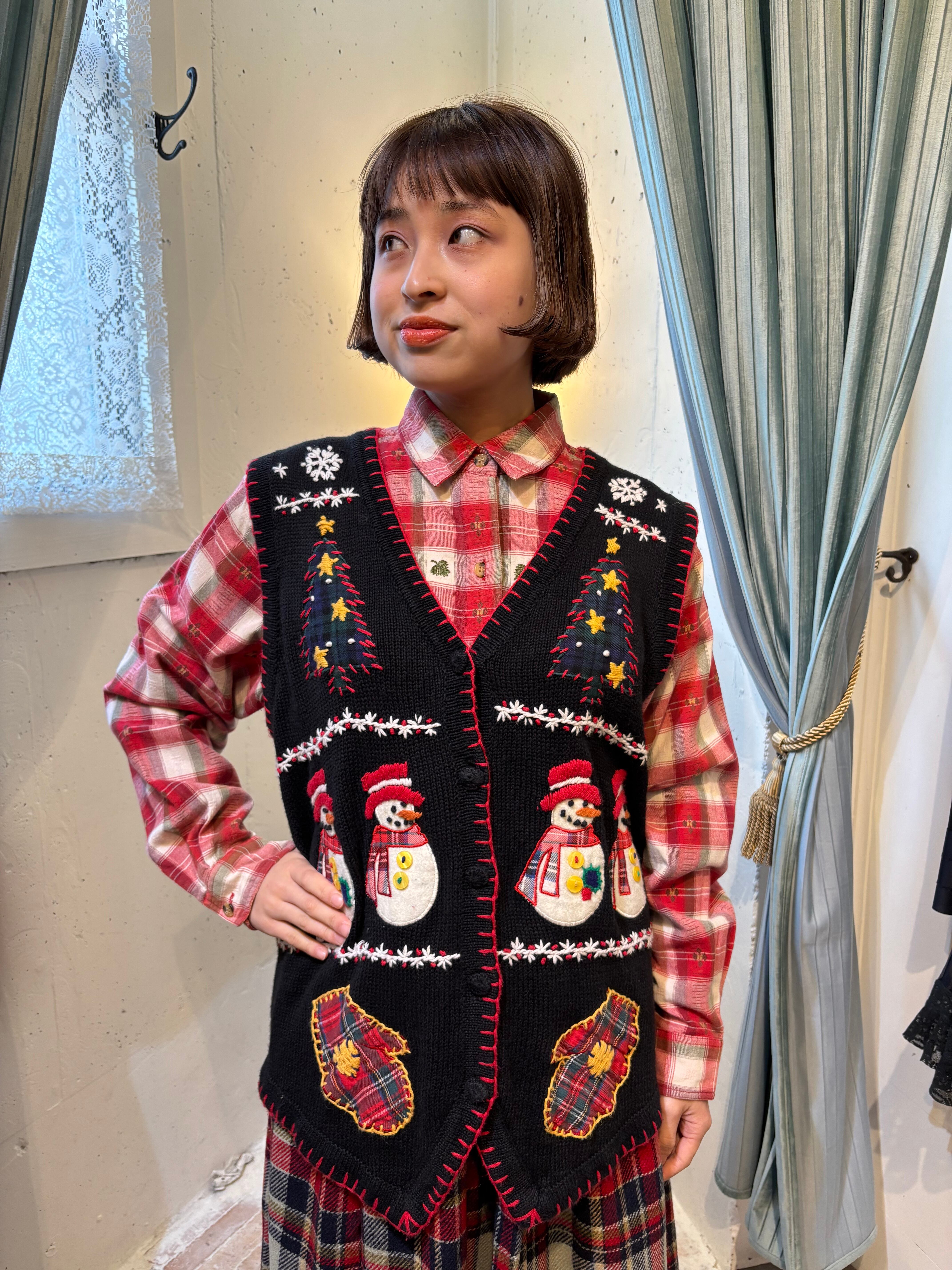 クリスマスモチーフの刺繍がキュートなニットベストです♪