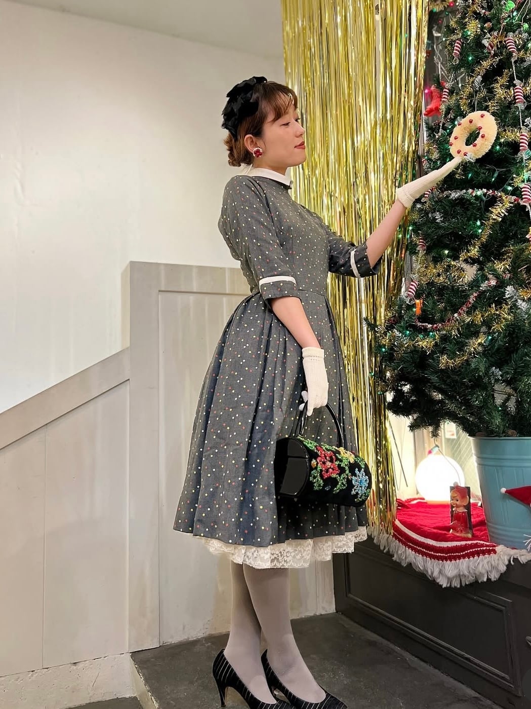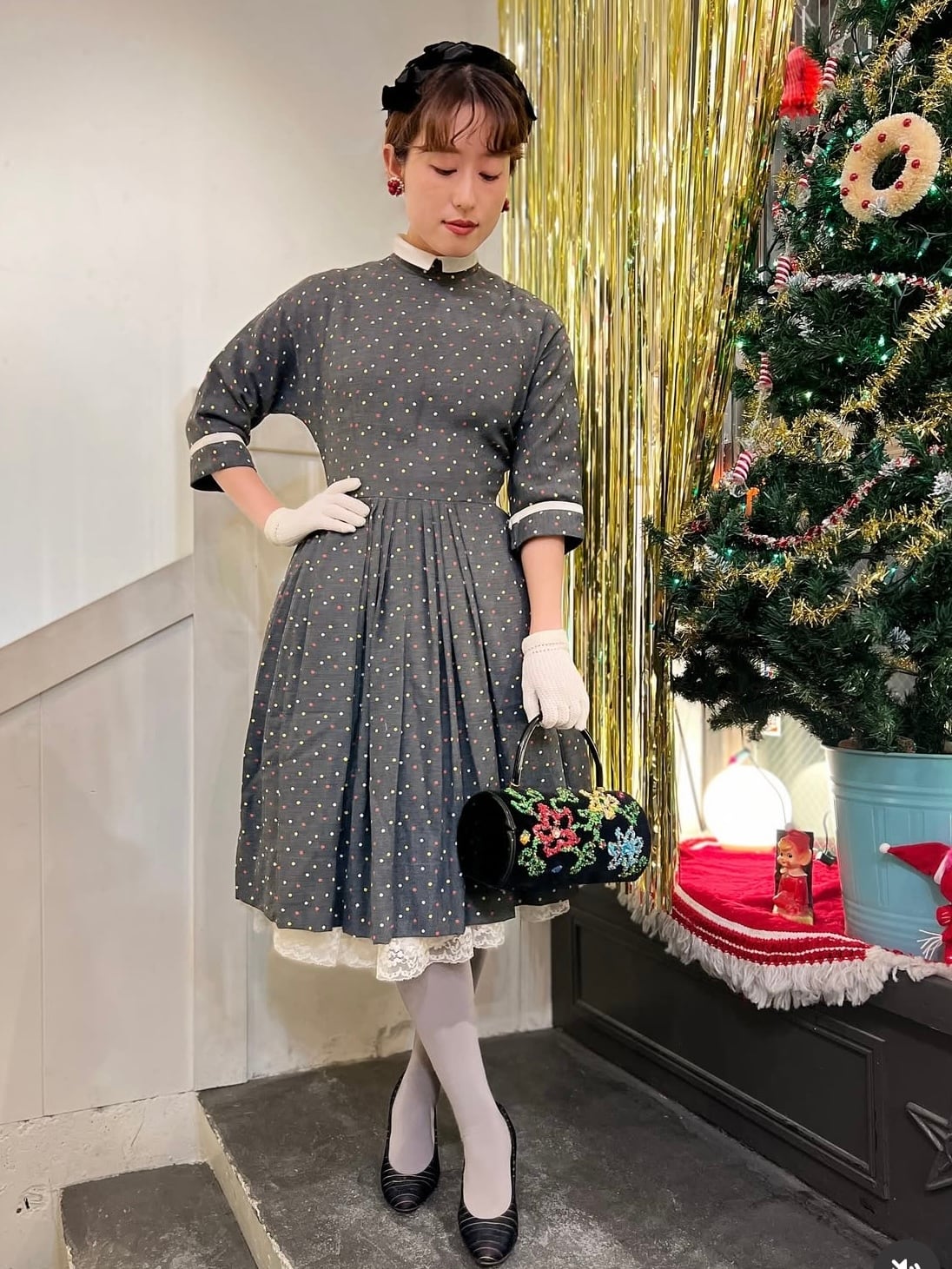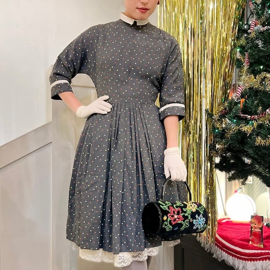 50's gray dot dress