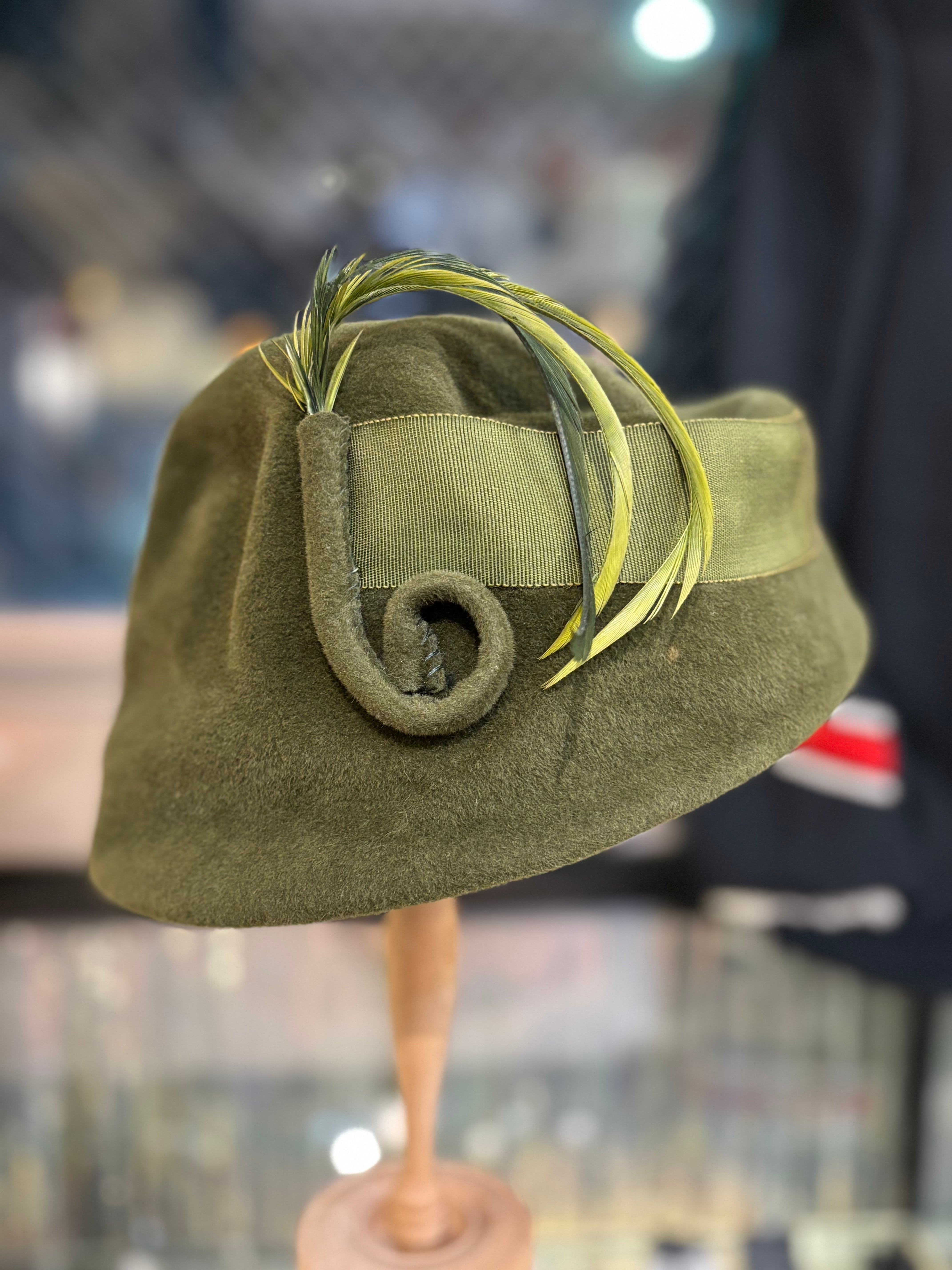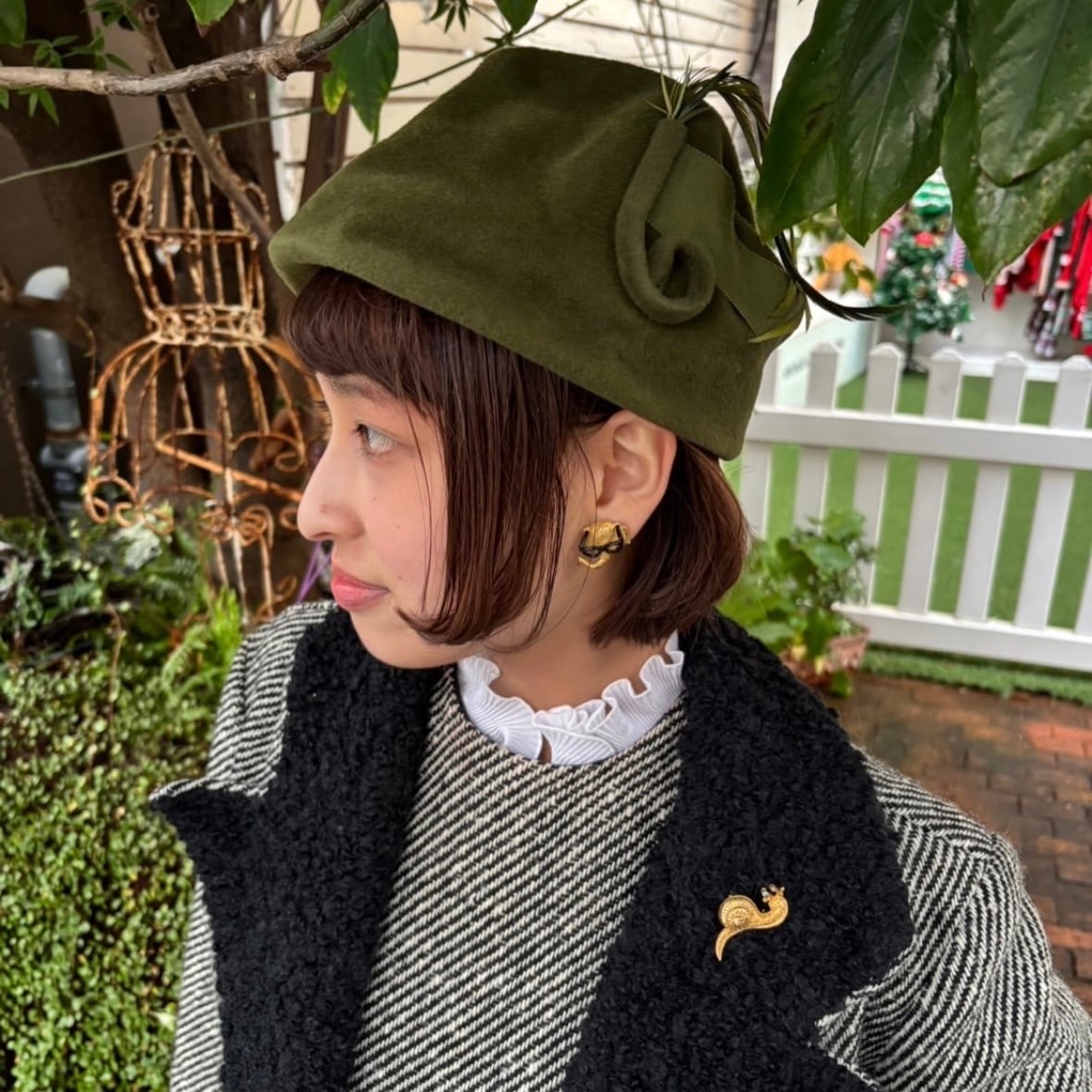 渦巻きと羽飾りがお洒落なヴィンテージハットです♪