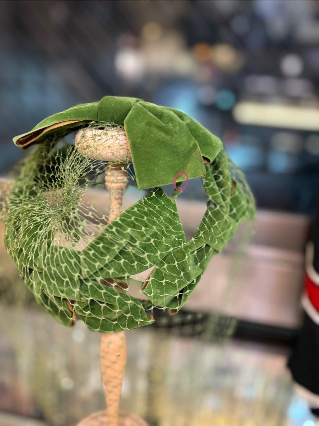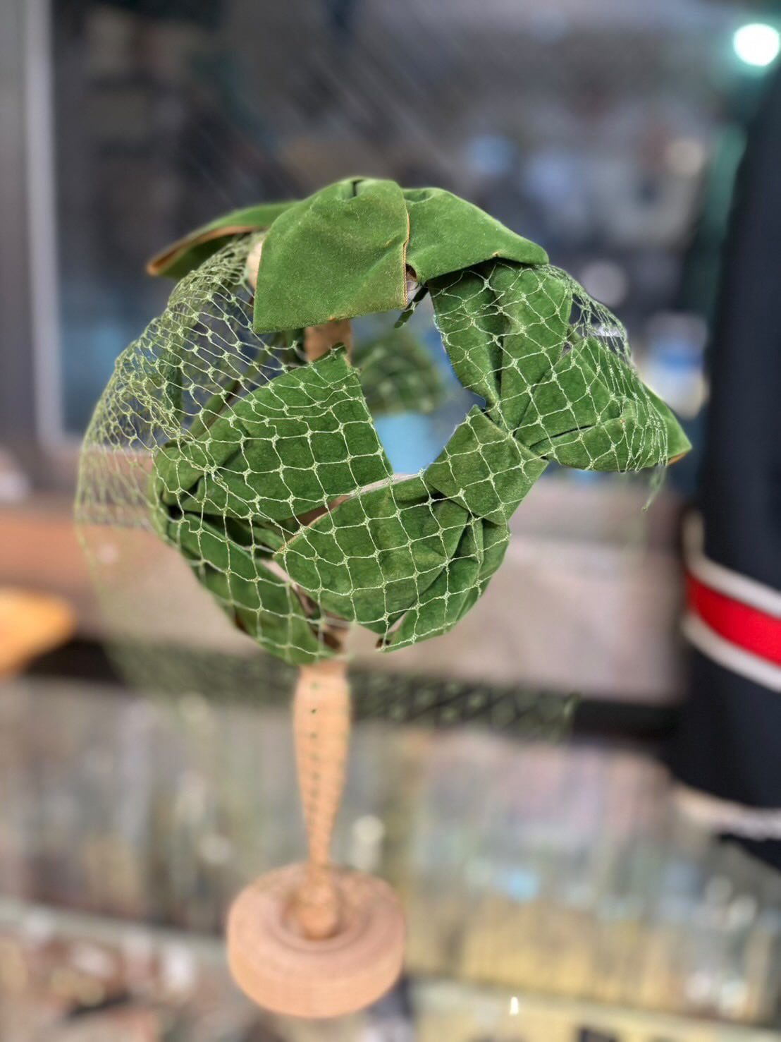 深みのあるグリーンのリボンモチーフに、繊細なネットが重なっていて、ナチュラルさとクラシカルさのバランスが絶妙です♫