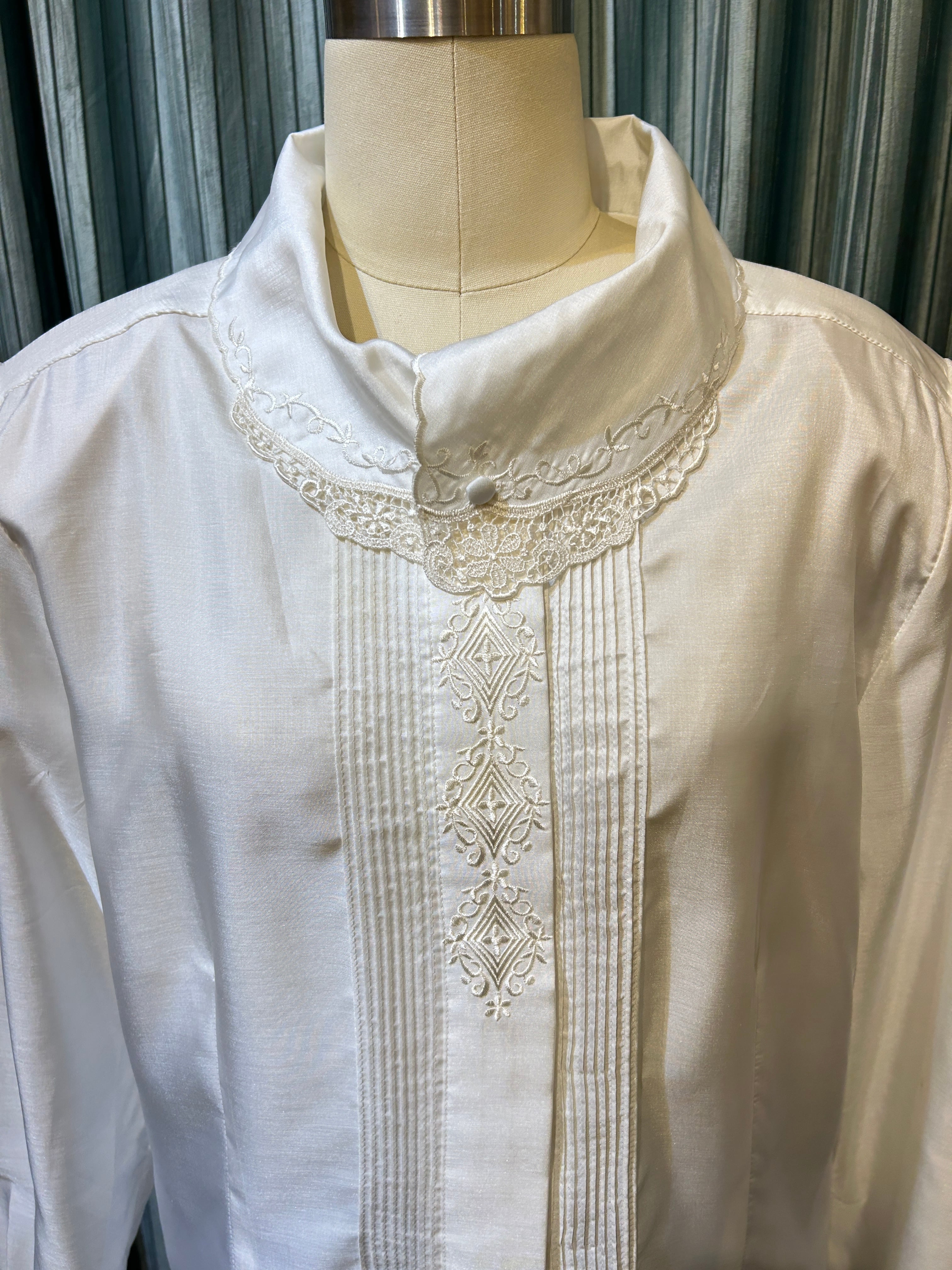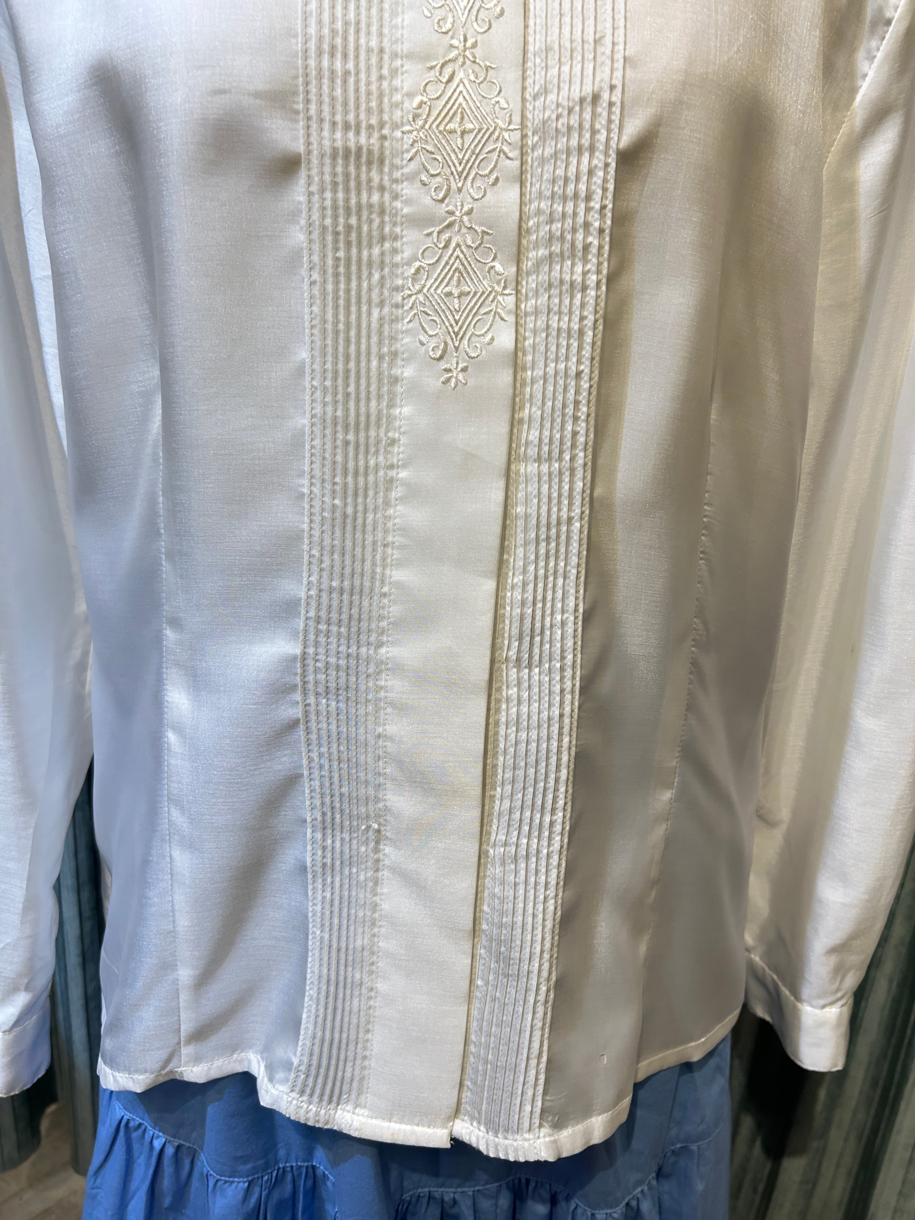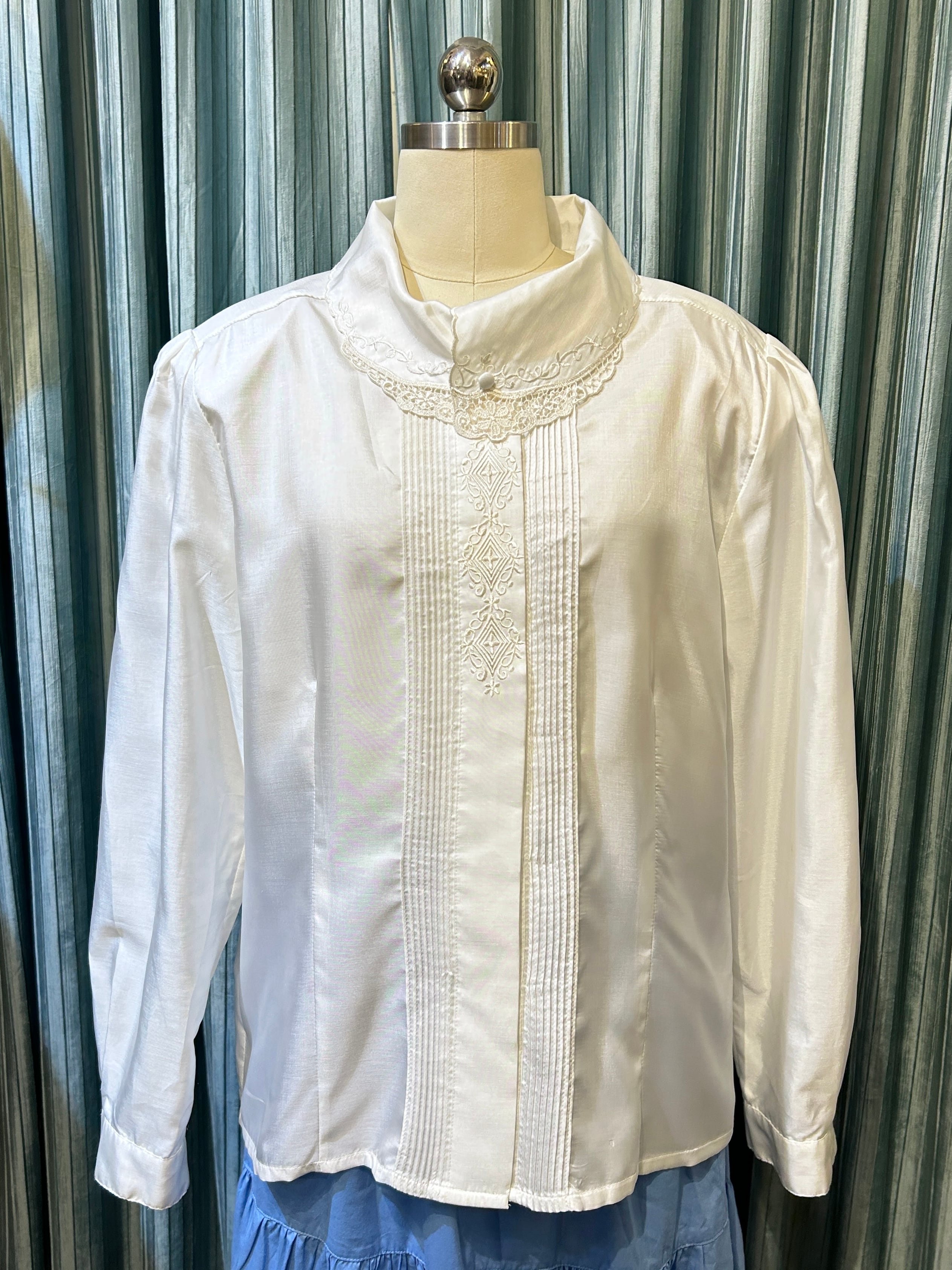 white embroidery pin tuck blouse