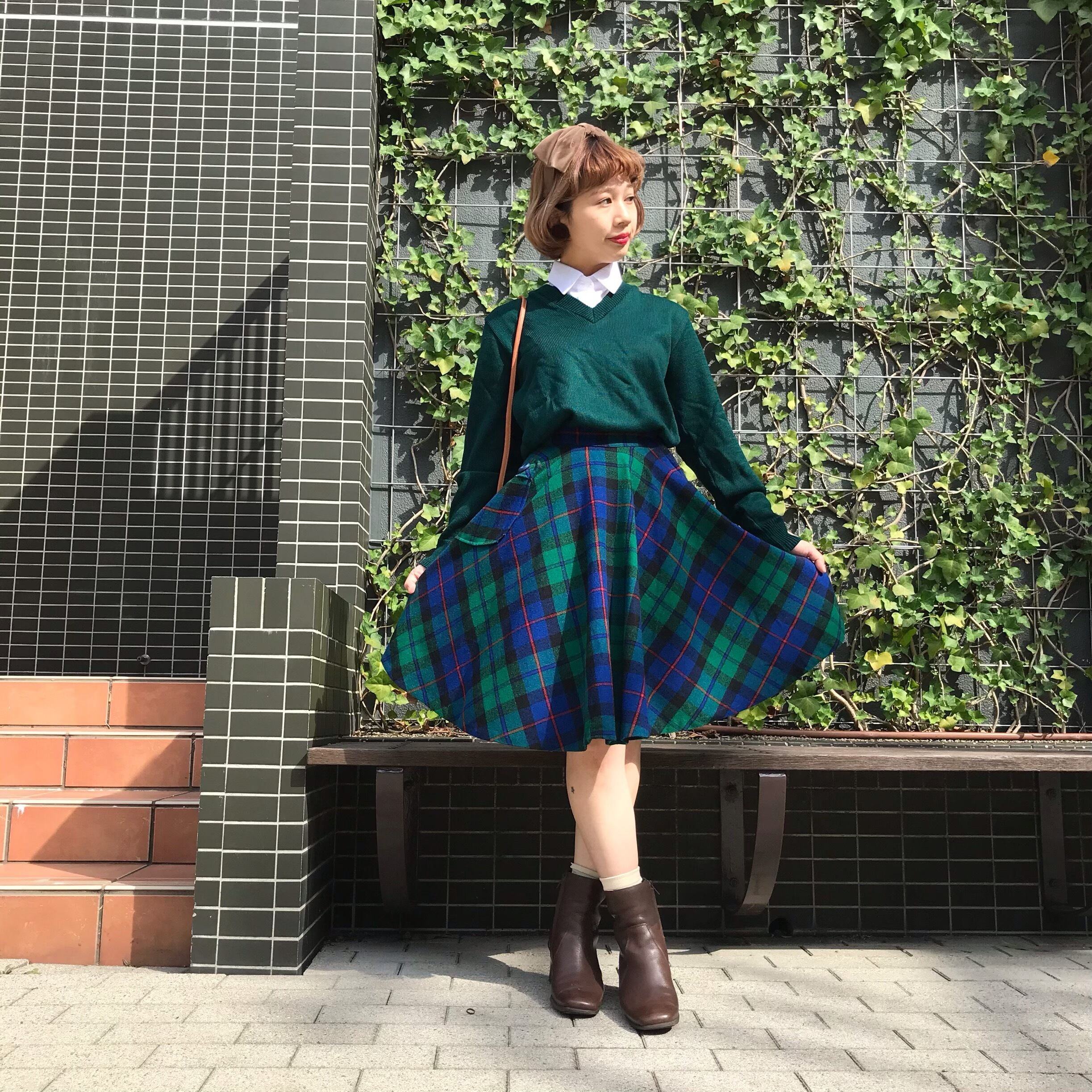 ウールスカートでは珍しいサーキュラーと斜めについたポケットが