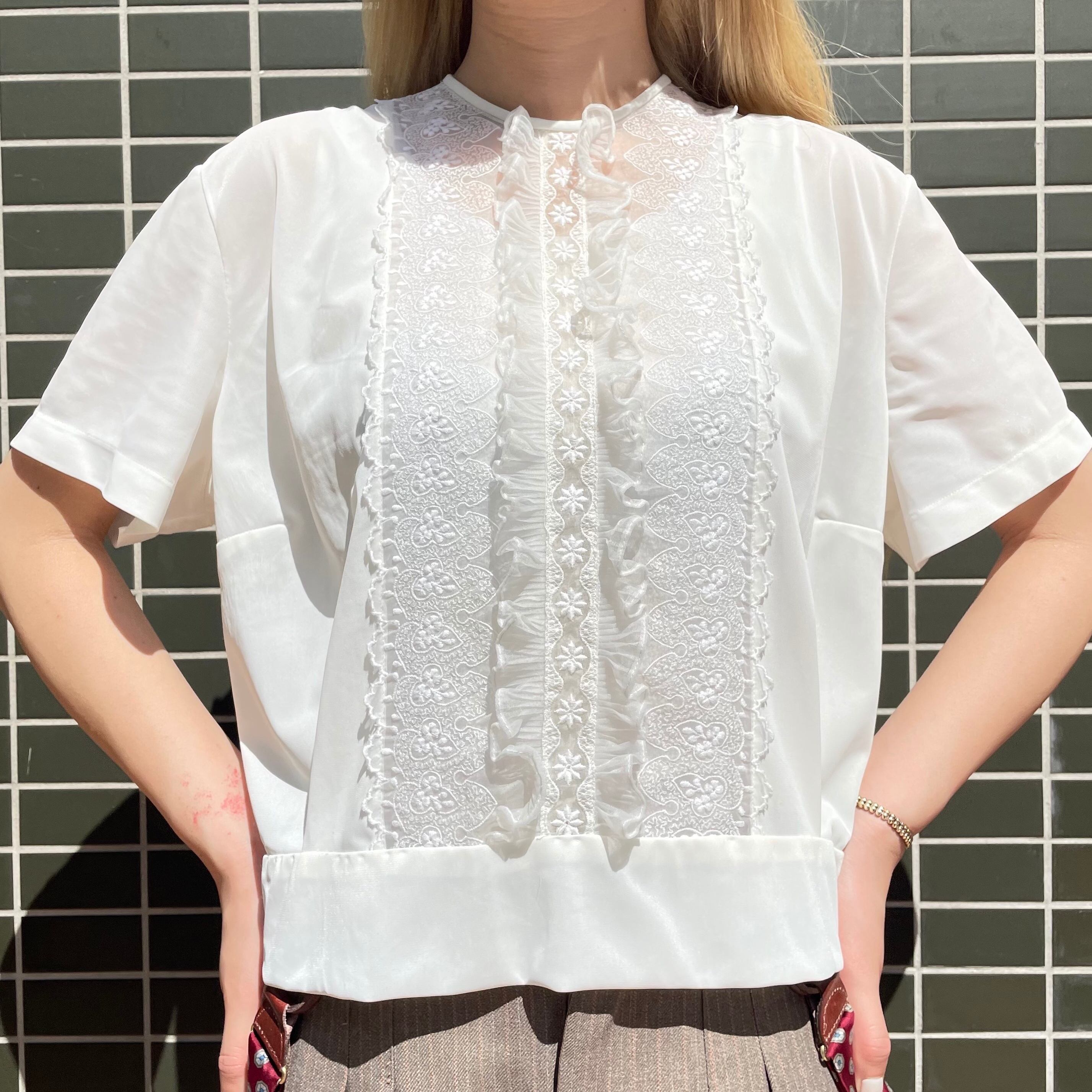 レースやフリルなど可愛い要素がたっぷりと詰まった50's ナイロンブラウス。