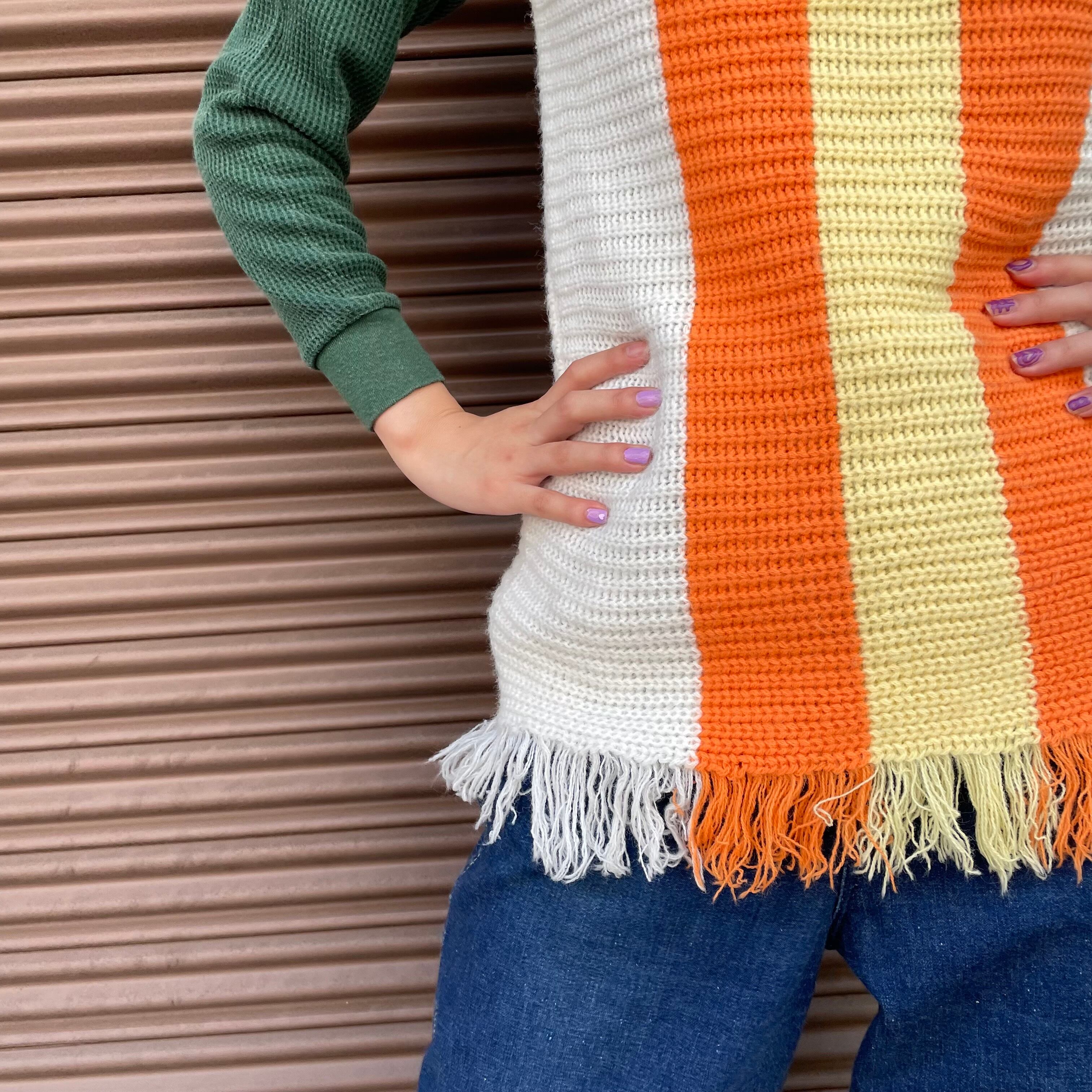 Vintage 60's orange yellow fringe knit vest
