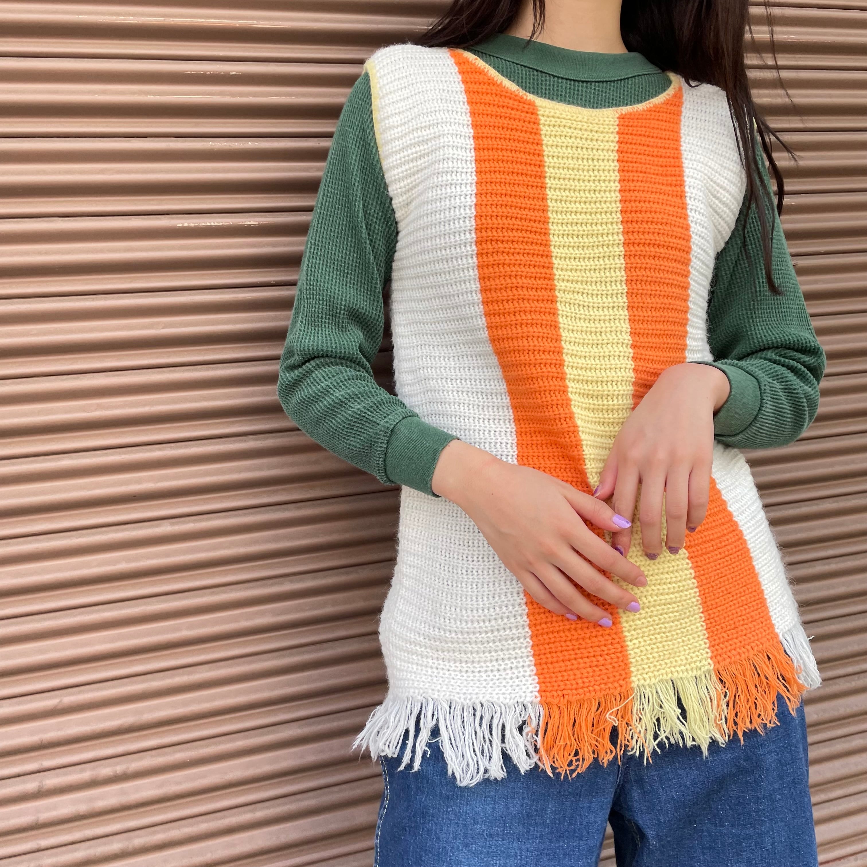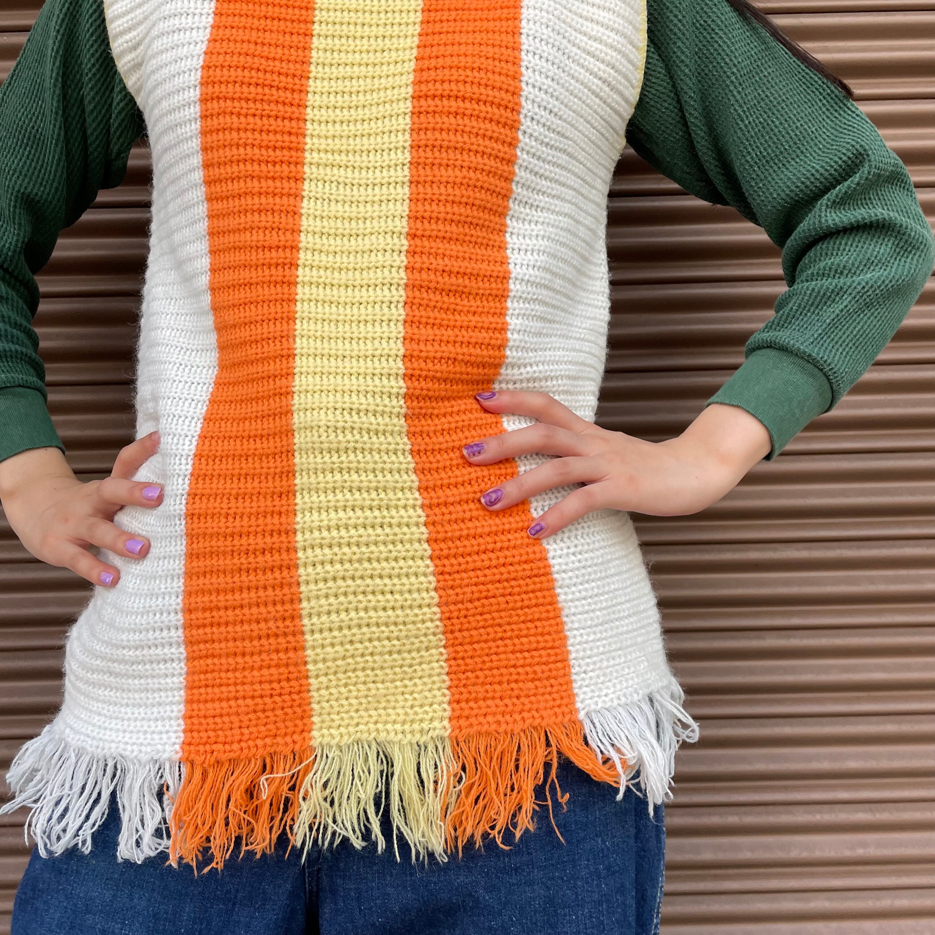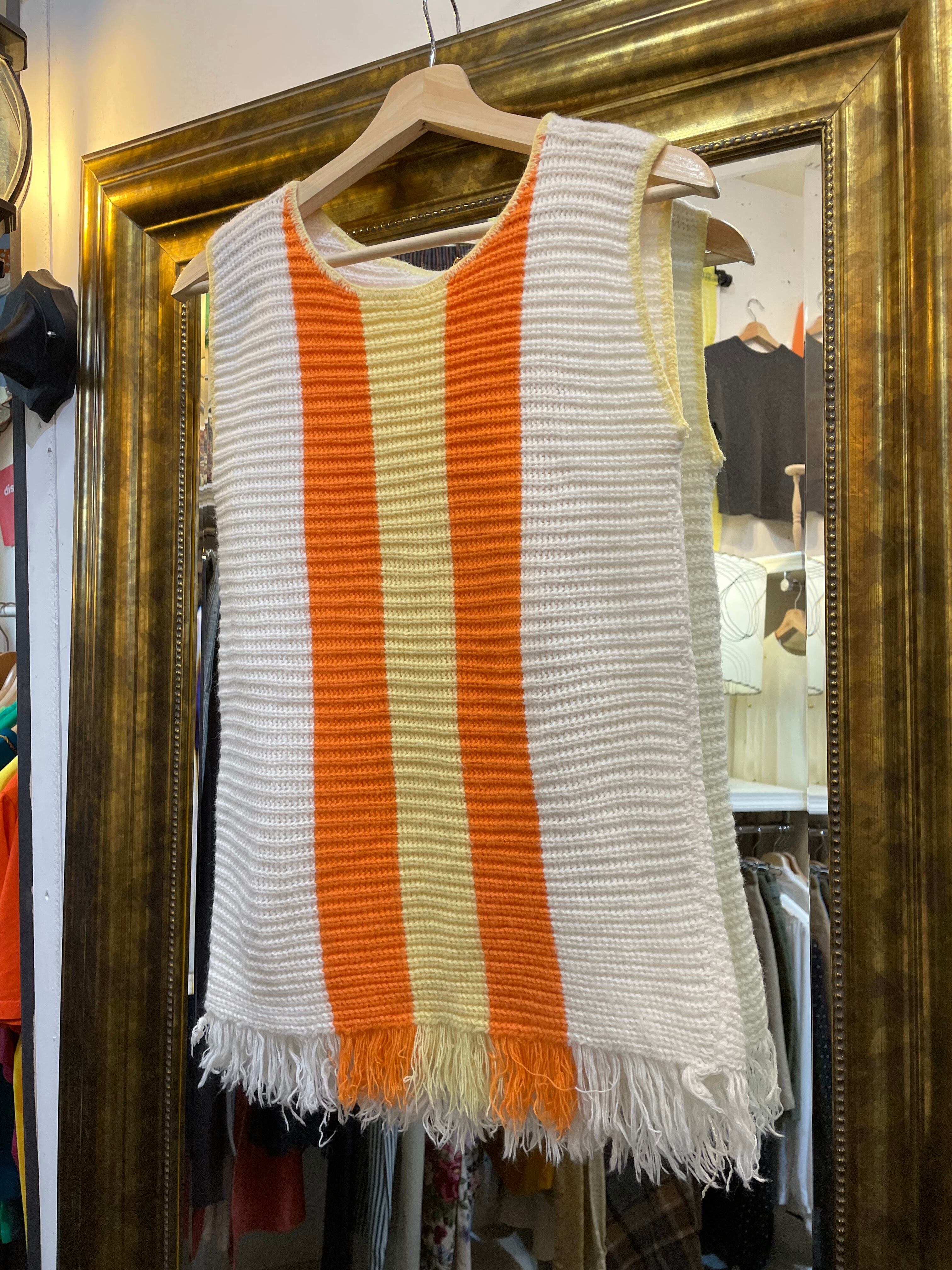 60's orange yellow fringe knit vest