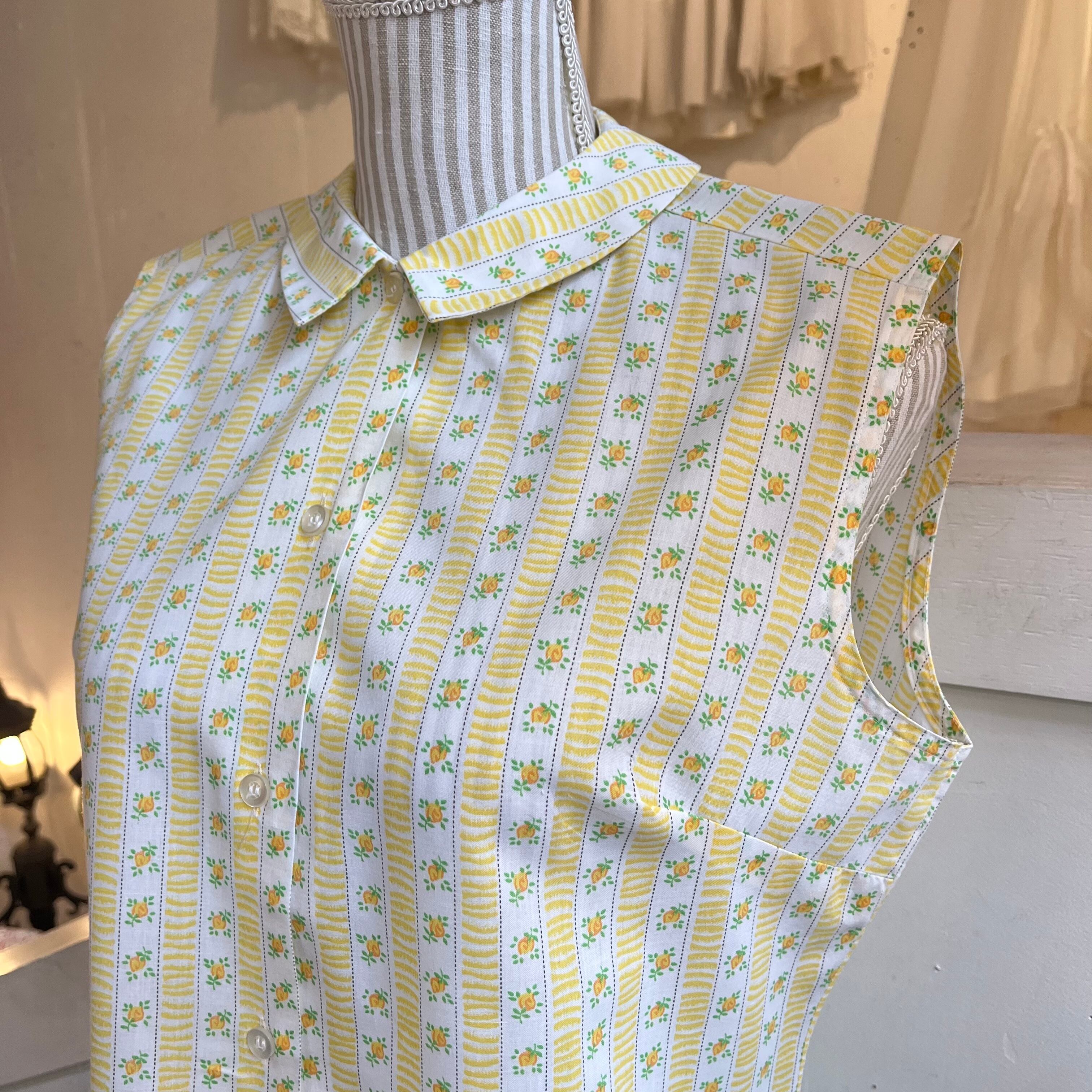 50's 60's yellow print sleeveless blouse