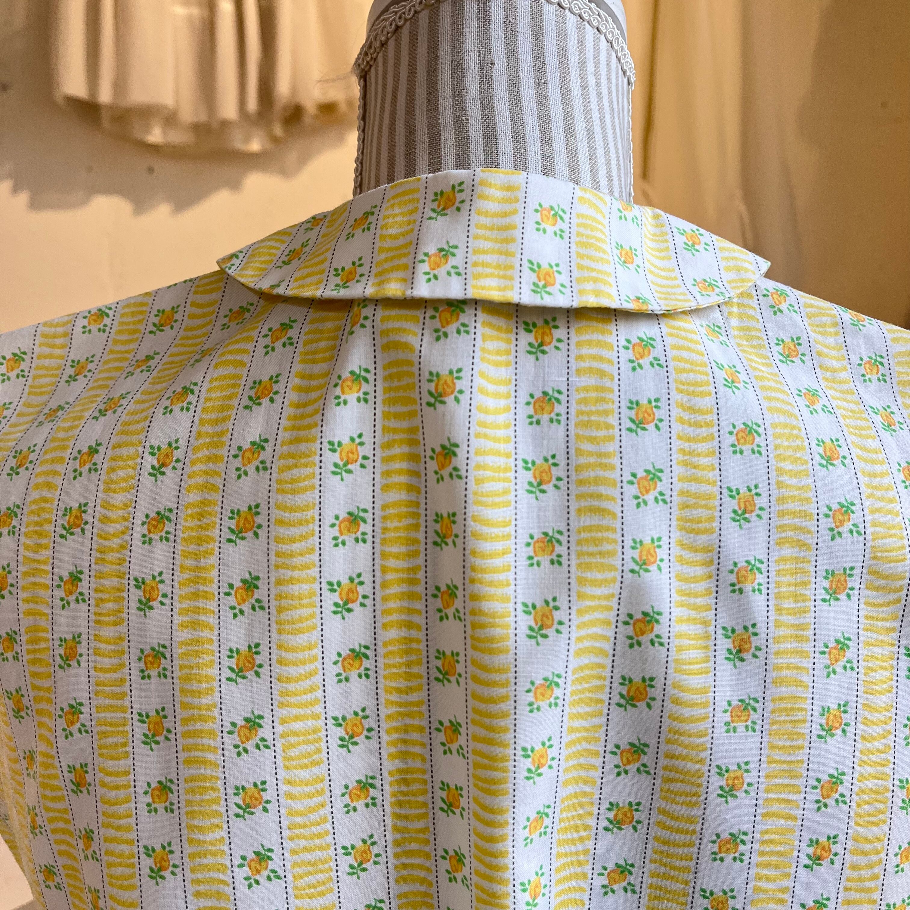 パステルレモンカラーで素朴なフラワープリントが可愛いブラウス。