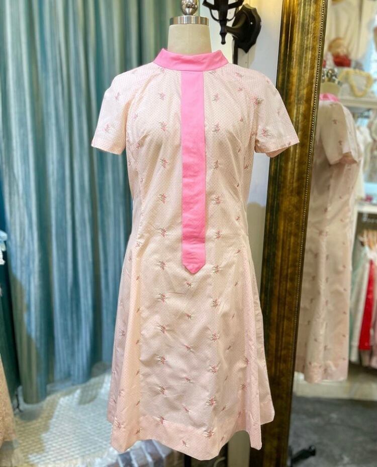 お花の刺繍とドットが可愛いピンクのドレスです。