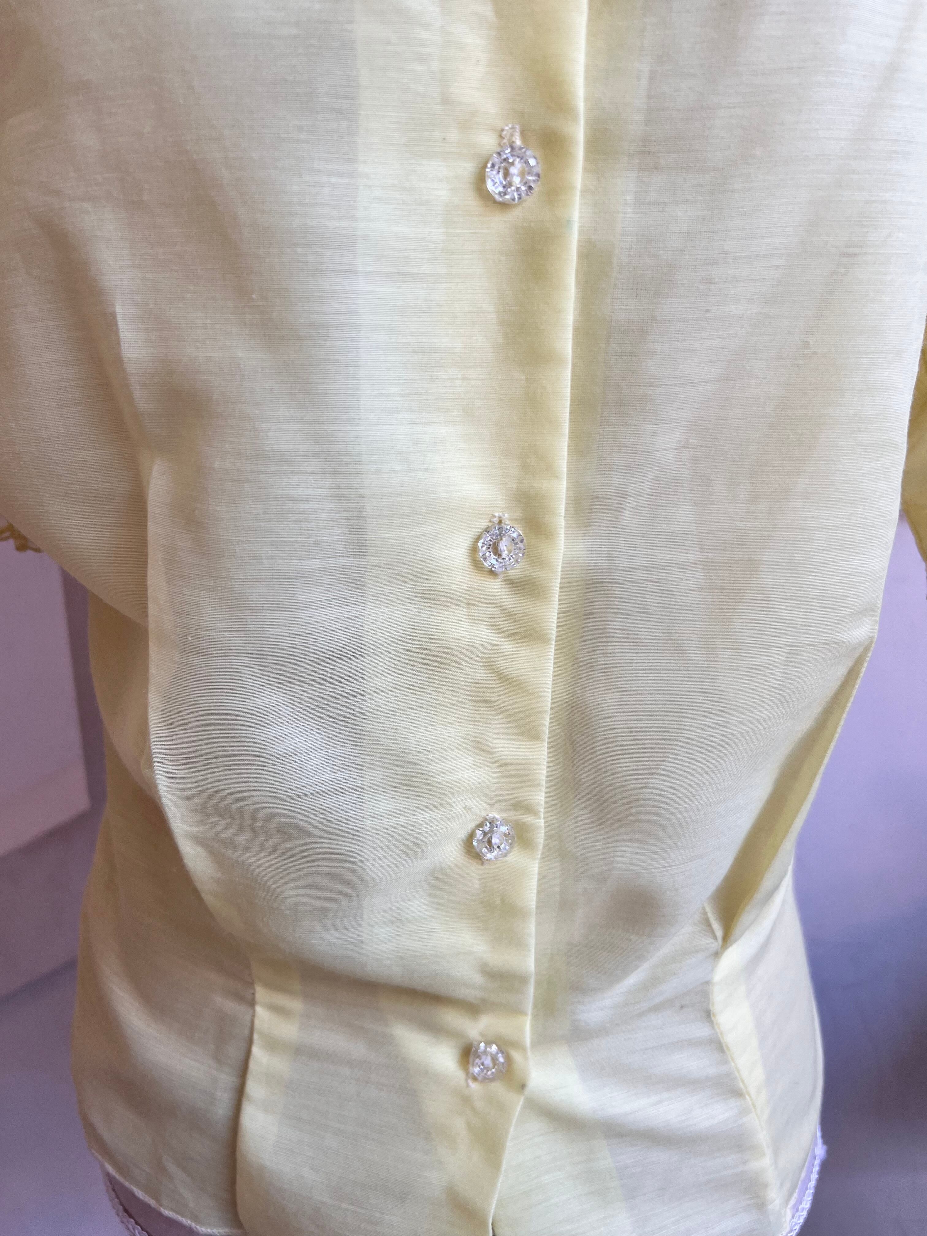 後ろに使われているボタンも前の飾りボタンと同じもので透明感があり、花のような模様が彫られています。