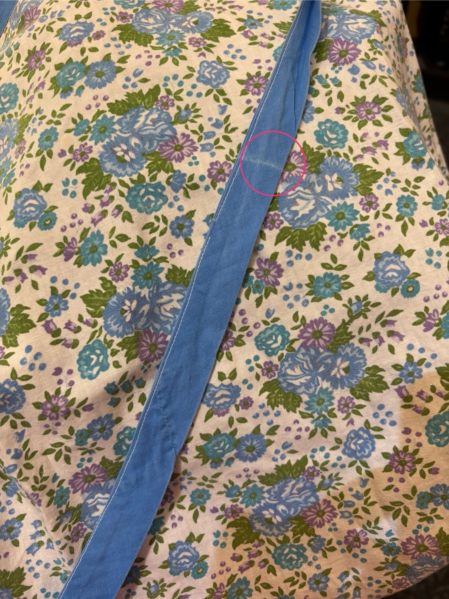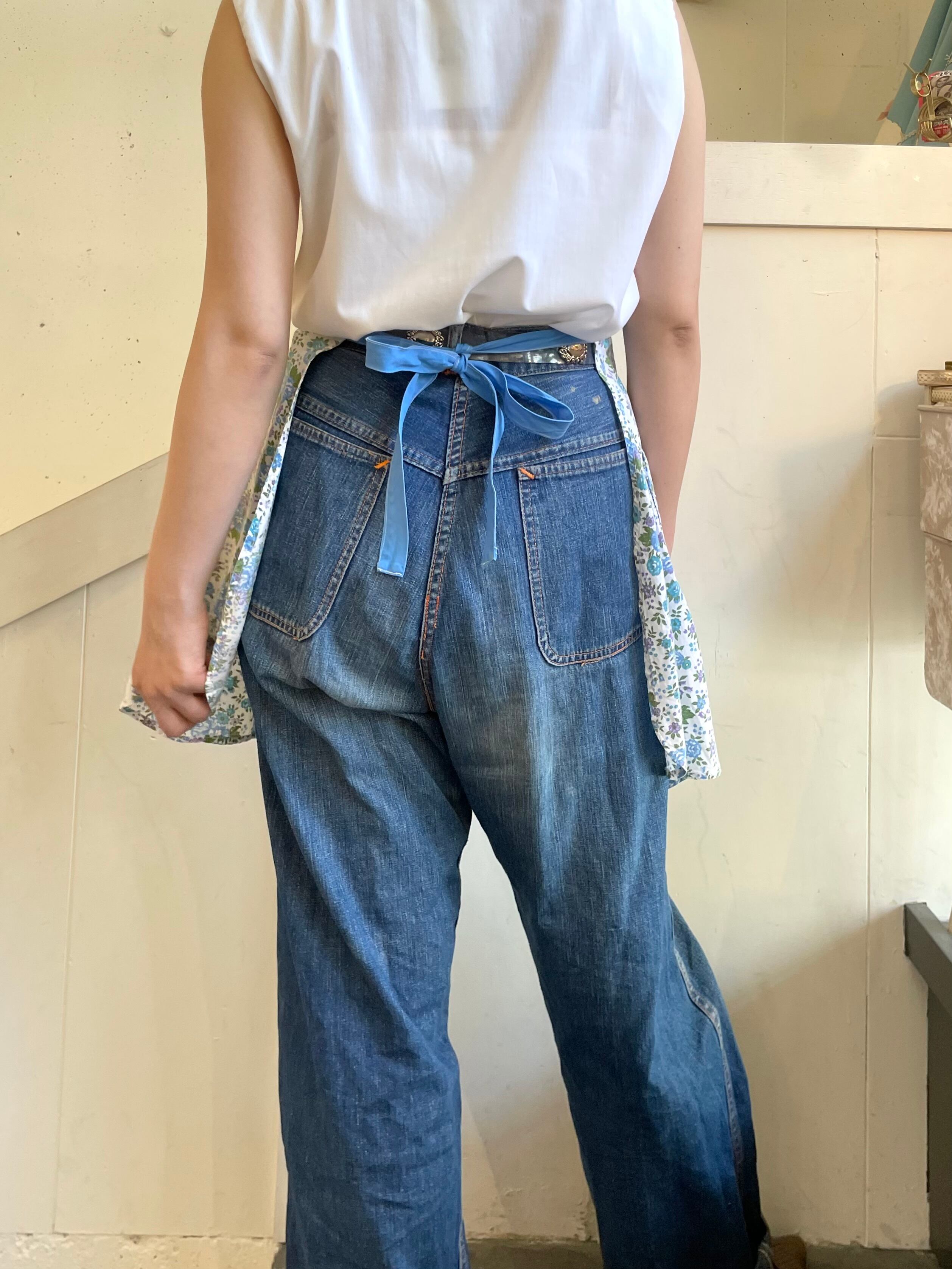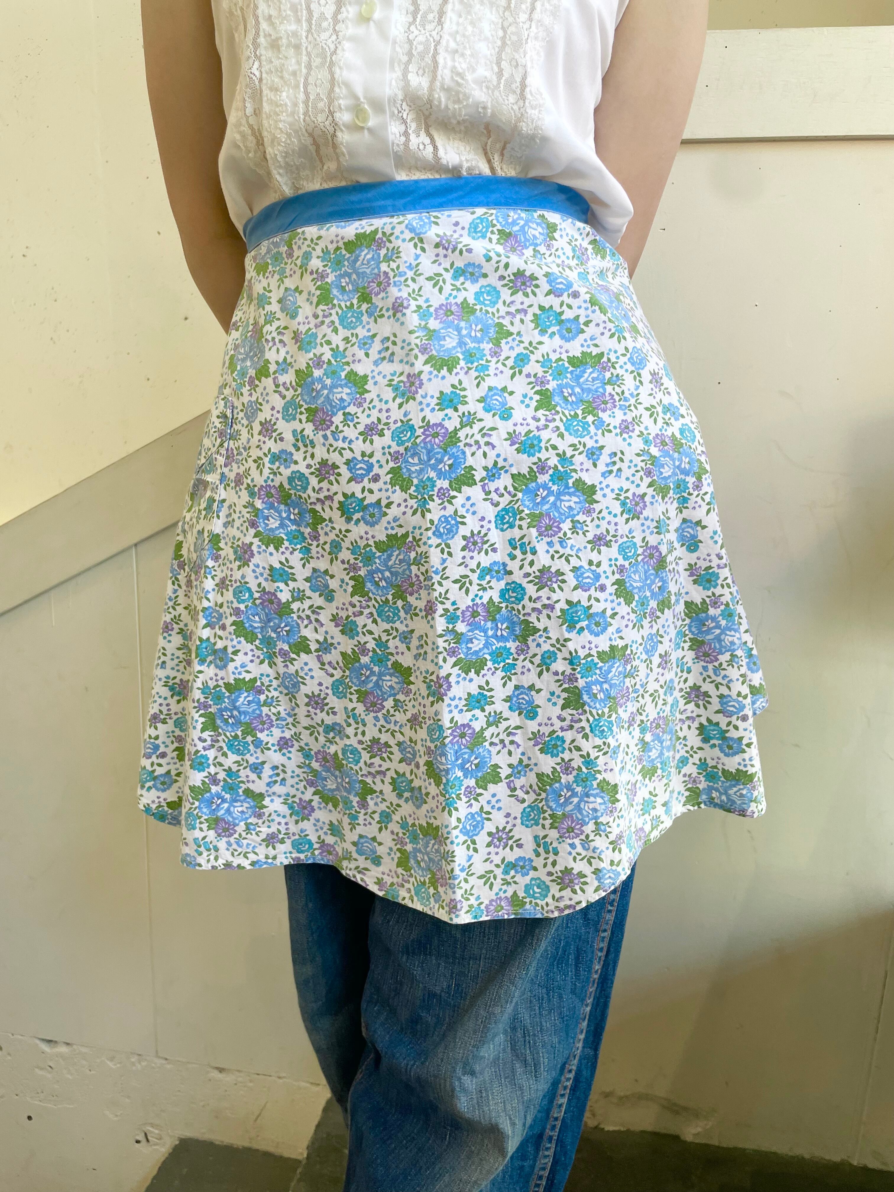 ブルーカラーの花束のようなお花のプリントがかわいいエプロンです!