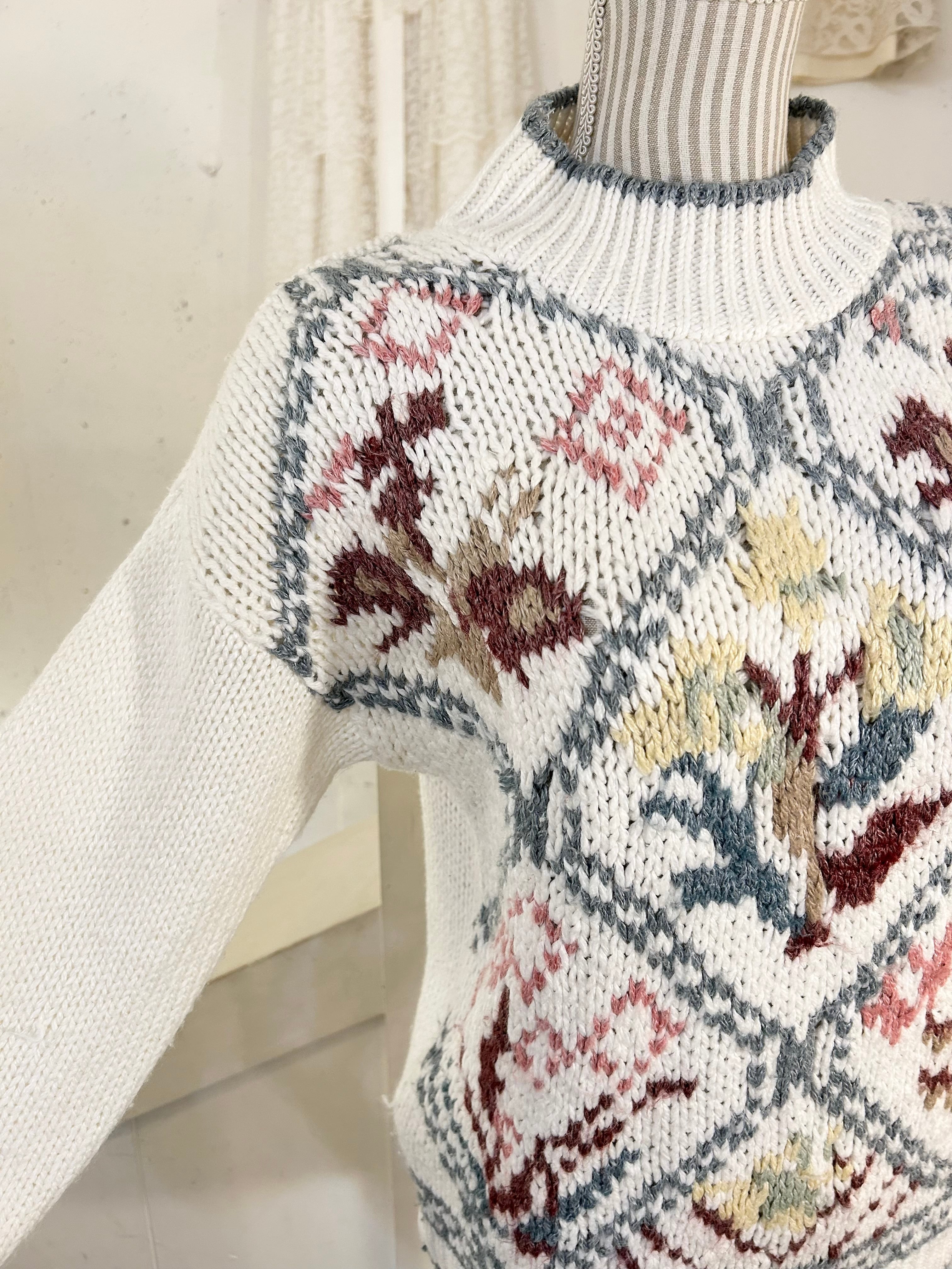 パステルカラーの草花の編み目がかわいいセーターです♪
