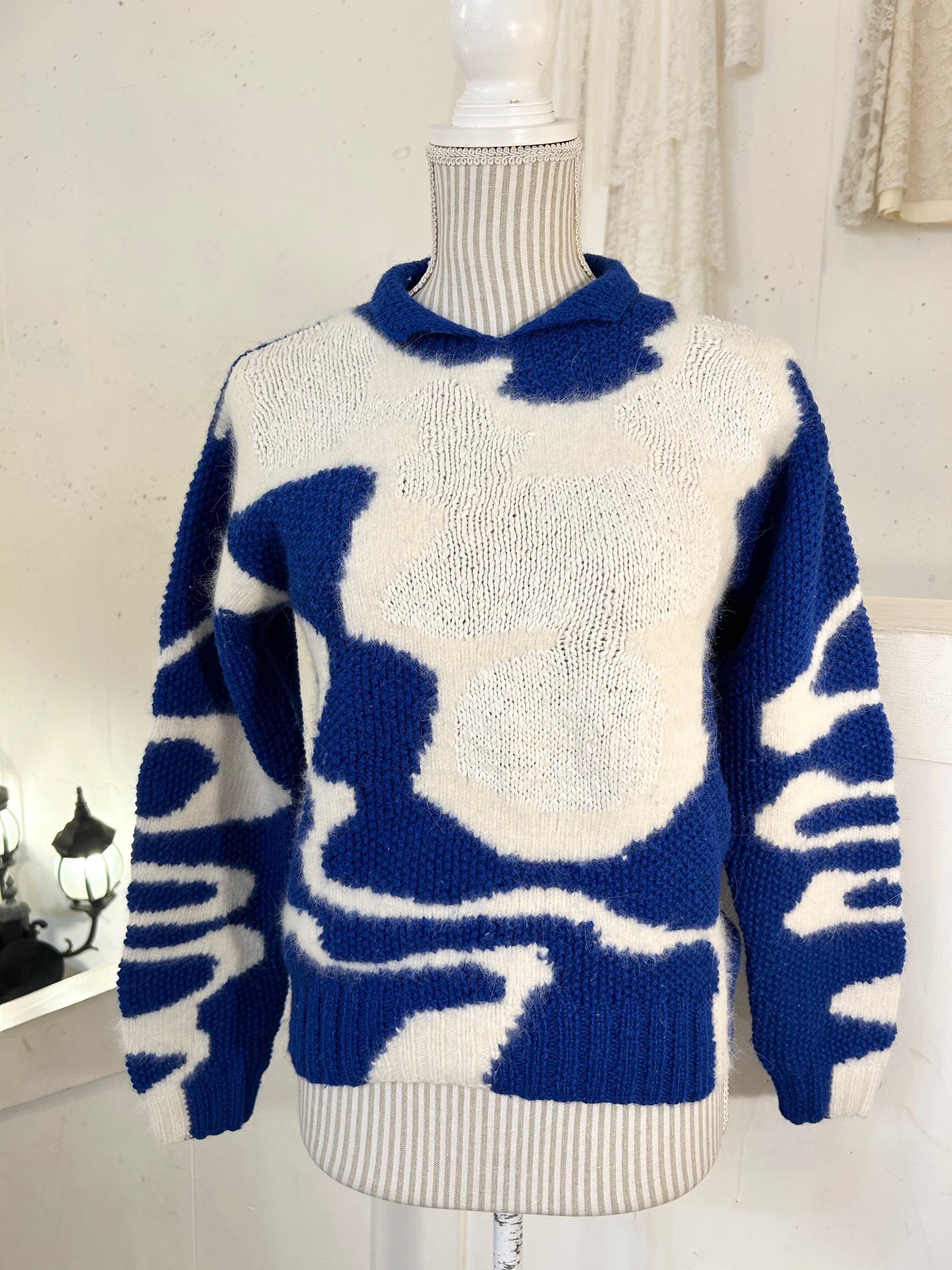 "HAND KNIT"の表記があり、古着らしい分厚いセーターです。