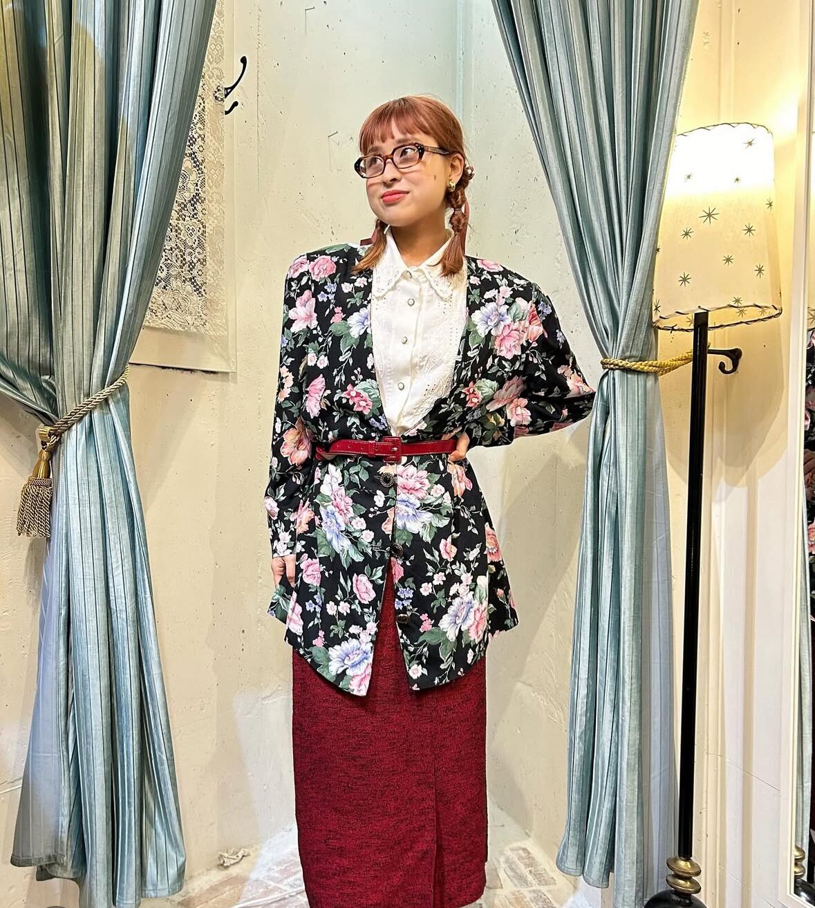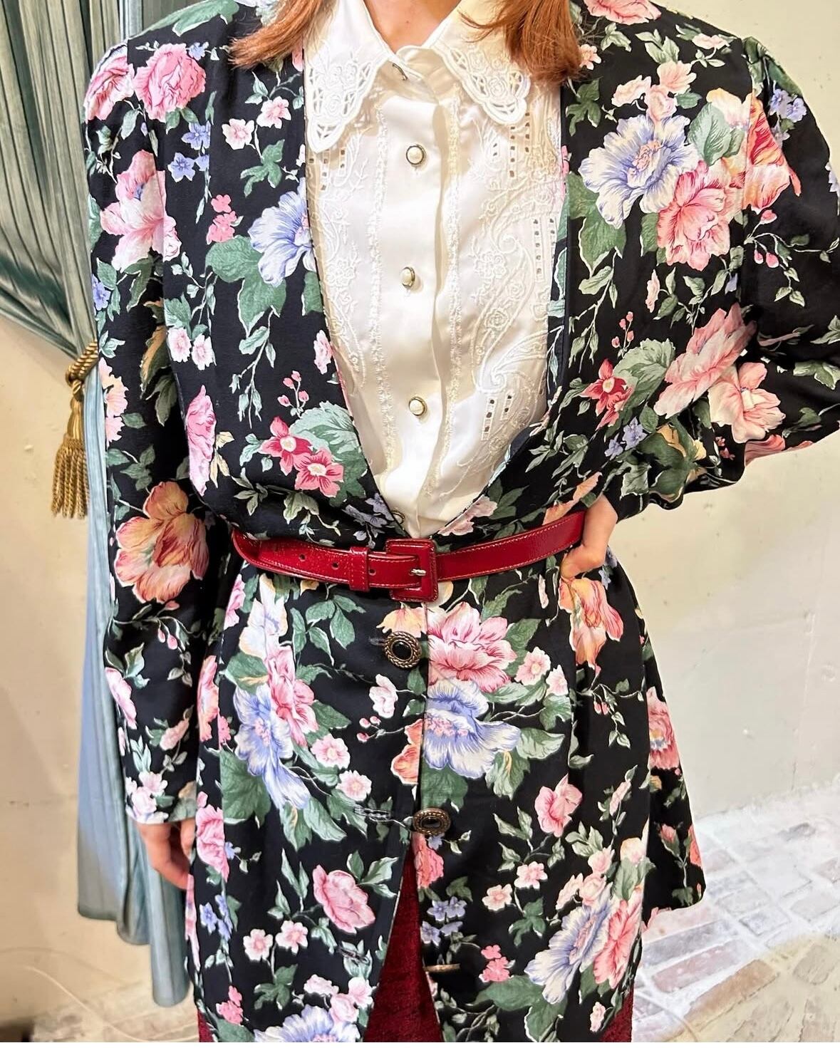 80’s らしい大きな花柄がかわいらしい一着♪