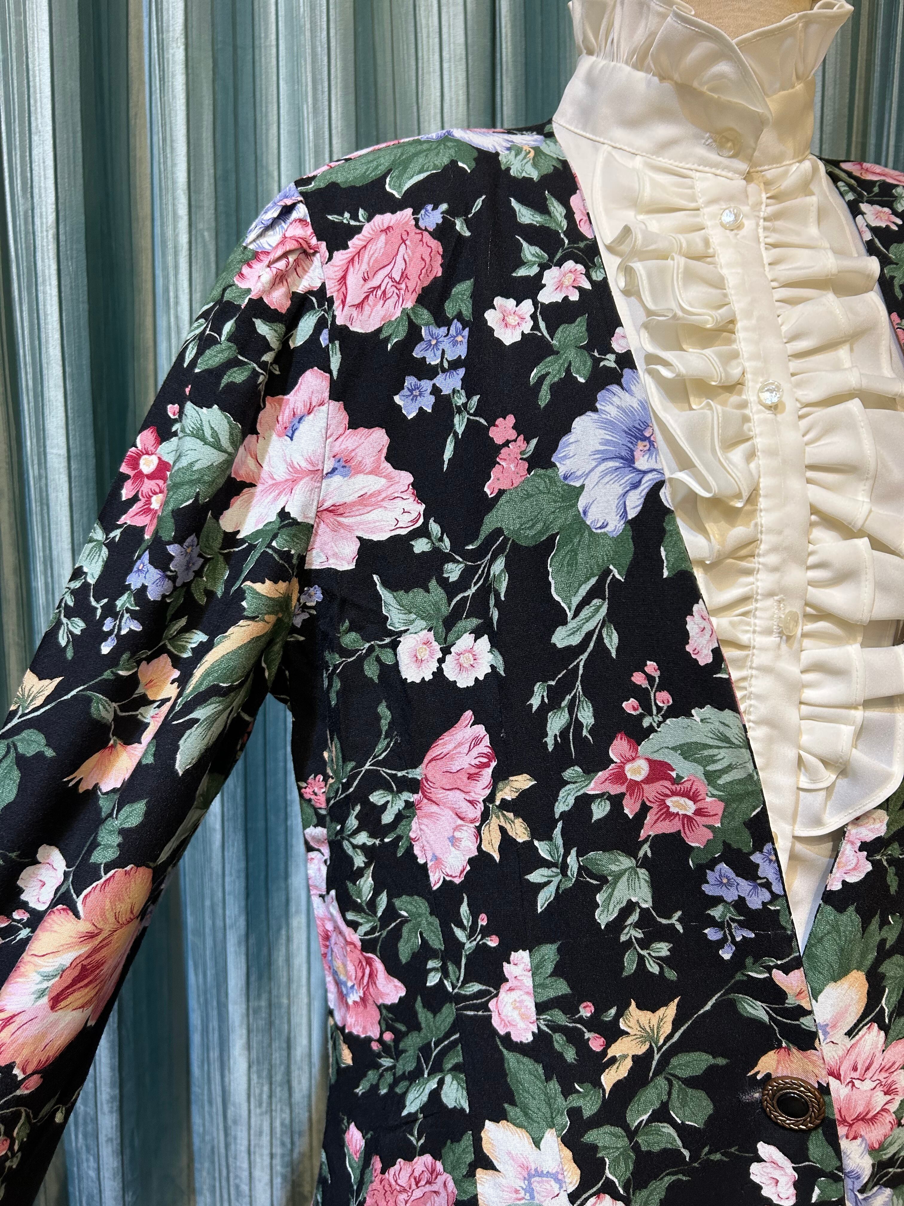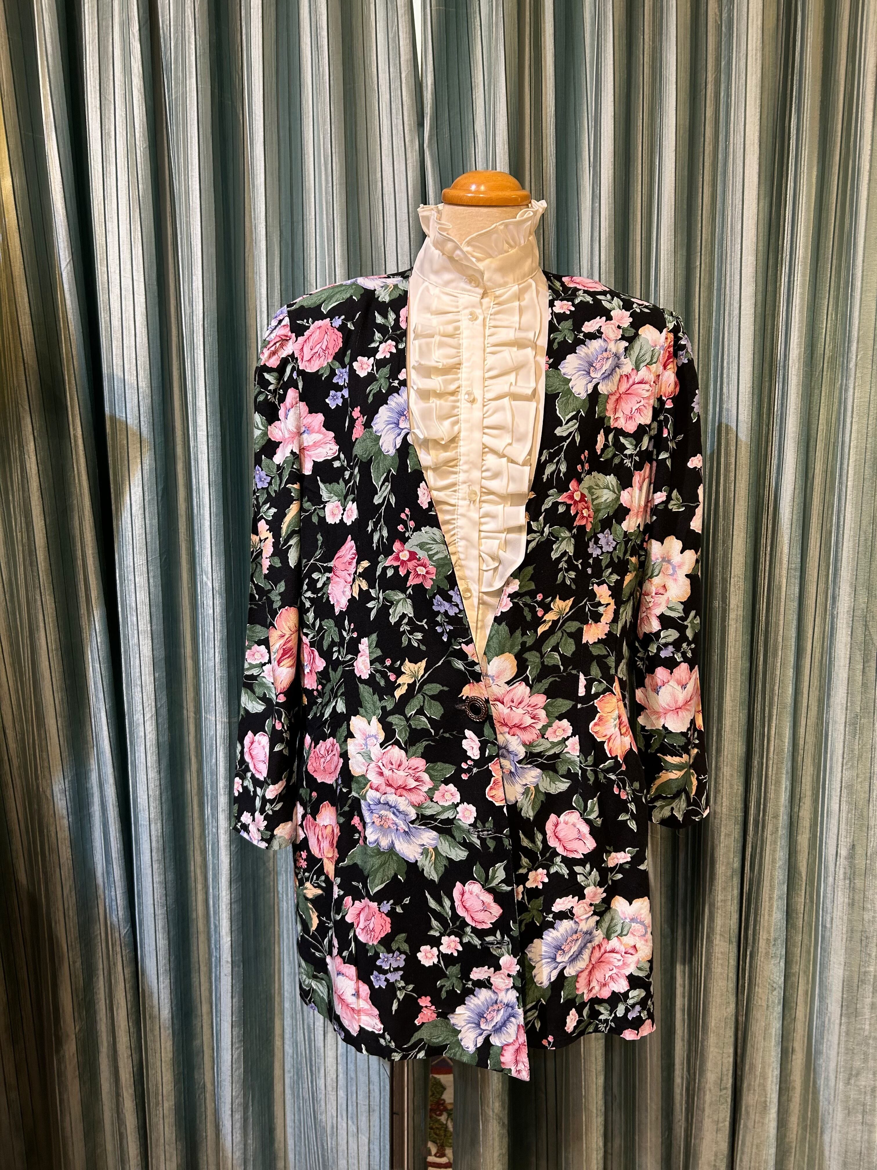 80's made in U.S.A. black flower jacket